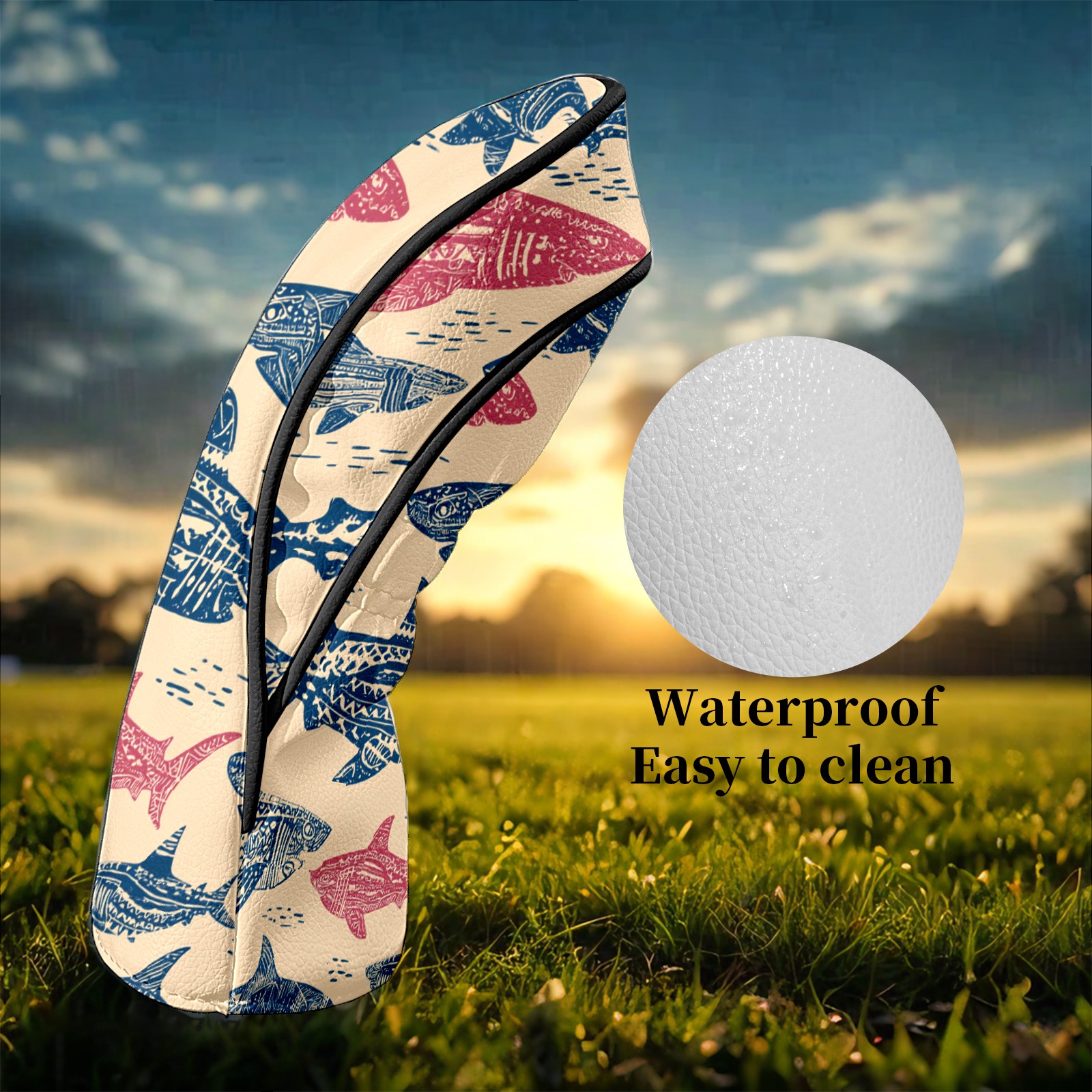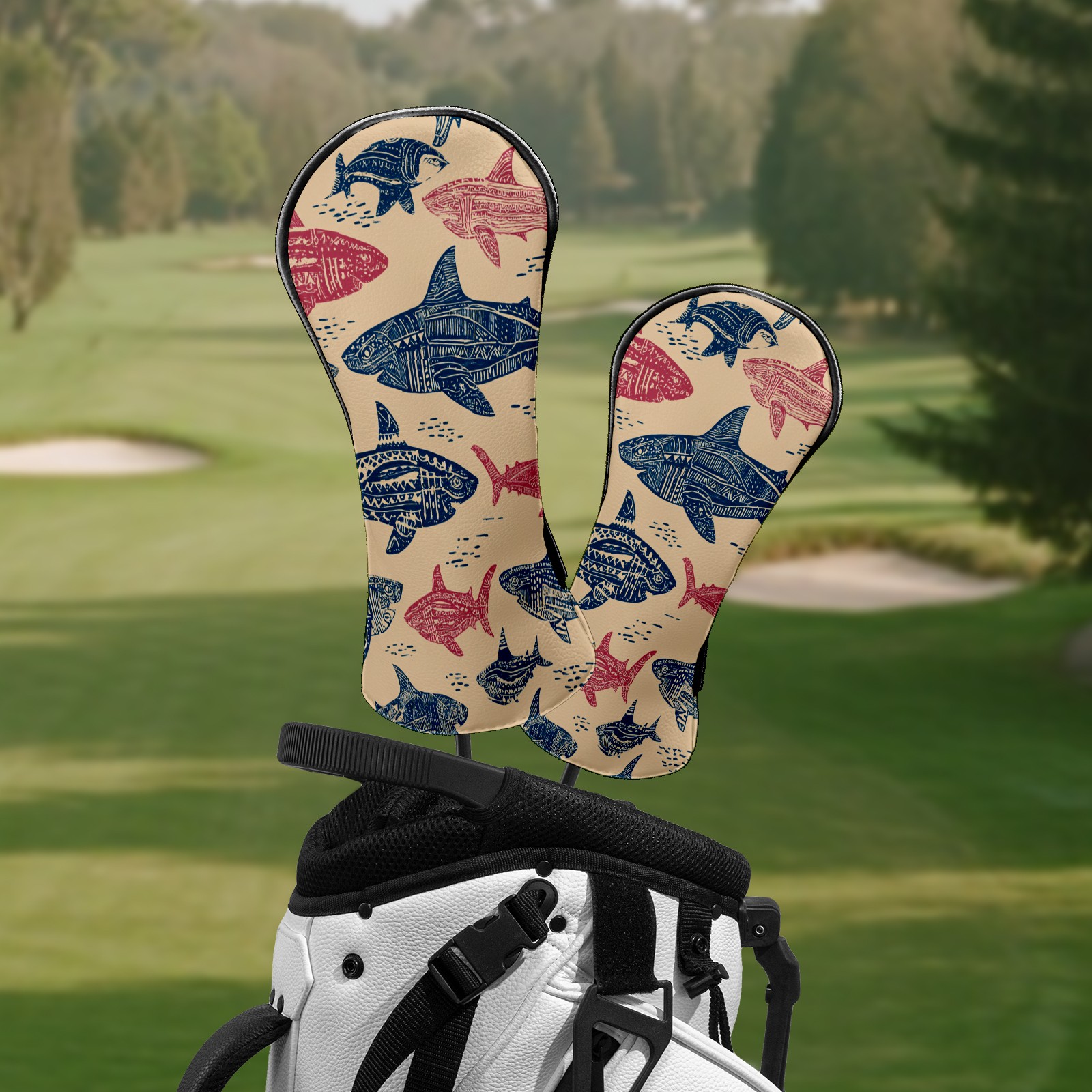Golf Club Head Covers Chilly Shark Pink Premium Plush Velvet Lining, Waterproof Golf Headcovers Driver & Fairway Woods for Scratch Protection Novelty Gift for Men & Women