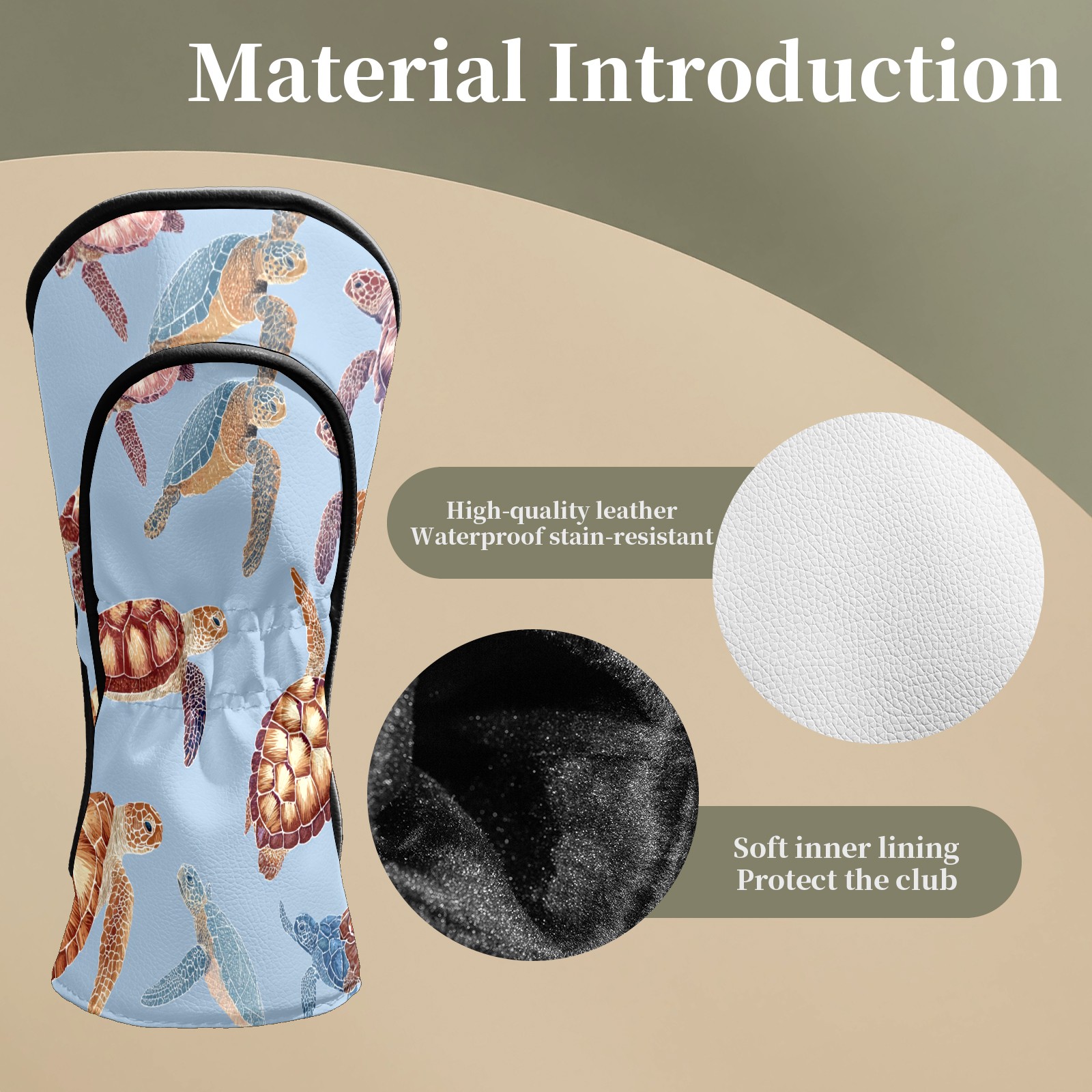 Golf Club Head Covers Elegant Turtle Blue Premium Plush Velvet Lining, Waterproof Golf Headcovers Driver & Fairway Woods for Scratch Protection Novelty Gift for Men & Women
