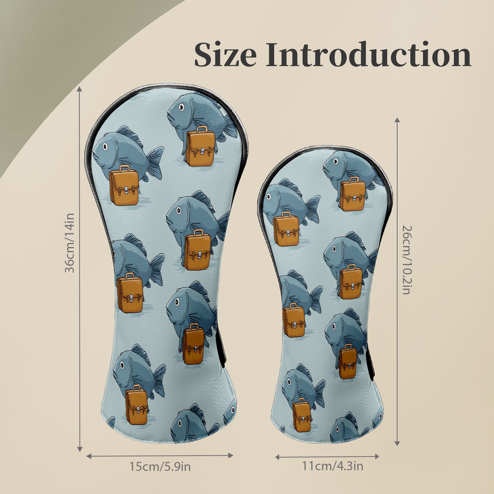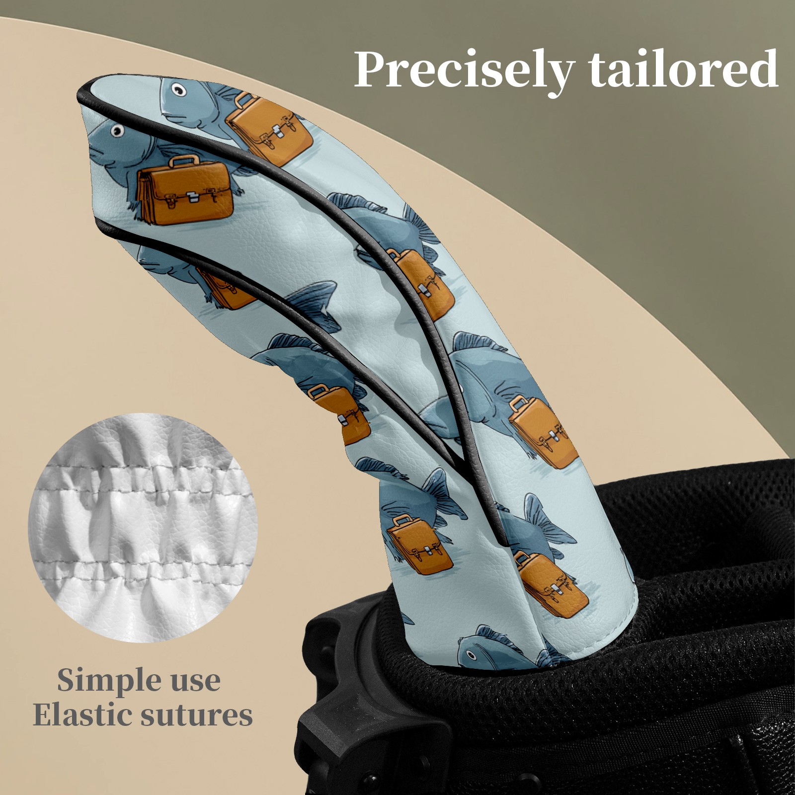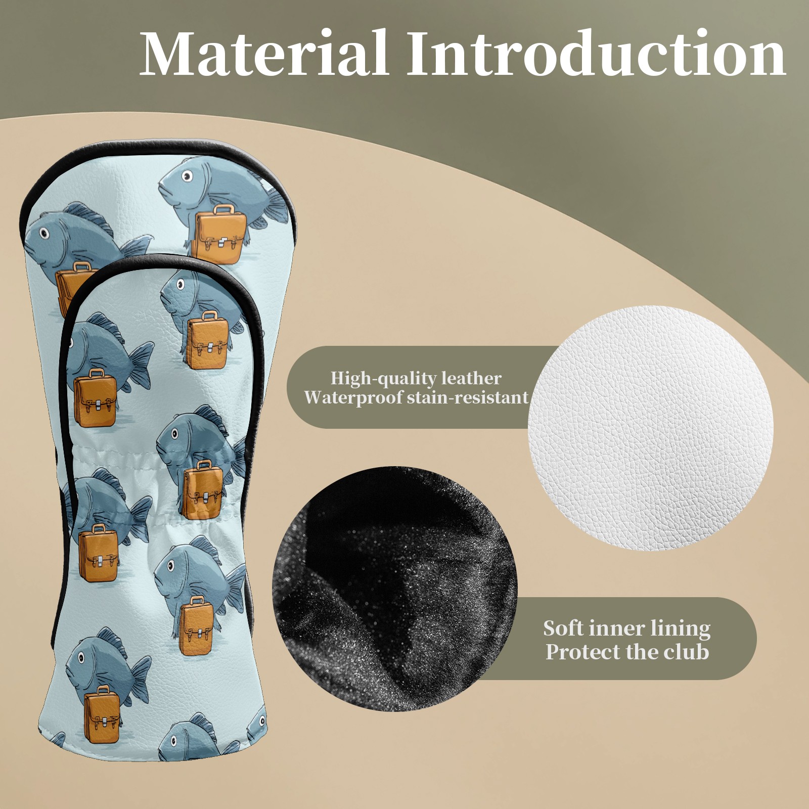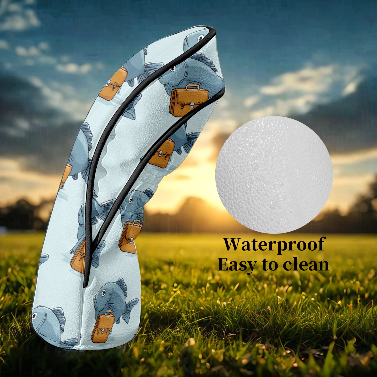 Golf Club Head Covers Warm Fish Gray Premium Plush Velvet Lining, Waterproof Golf Headcovers Driver & Fairway Woods for Scratch Protection Novelty Gift for Men & Women