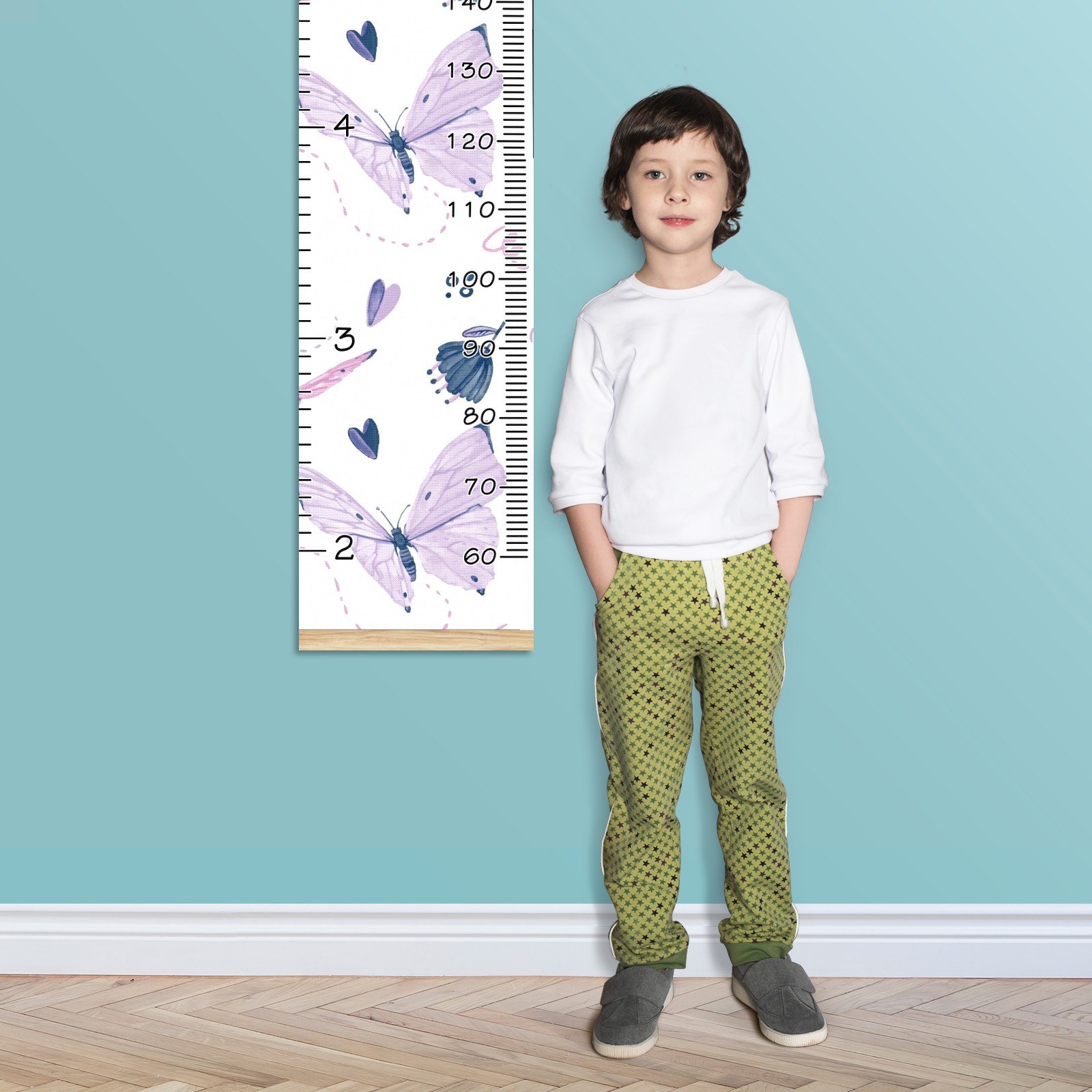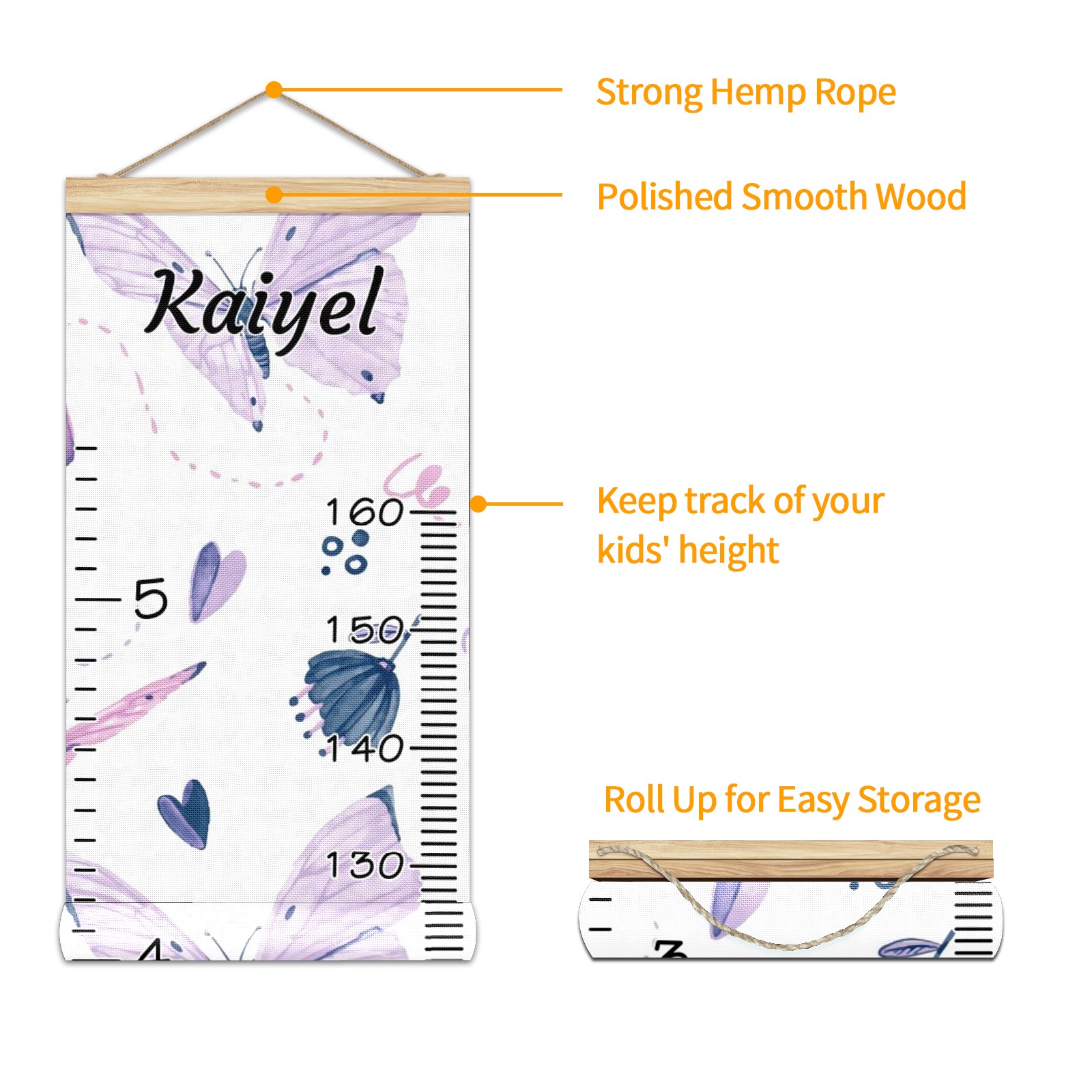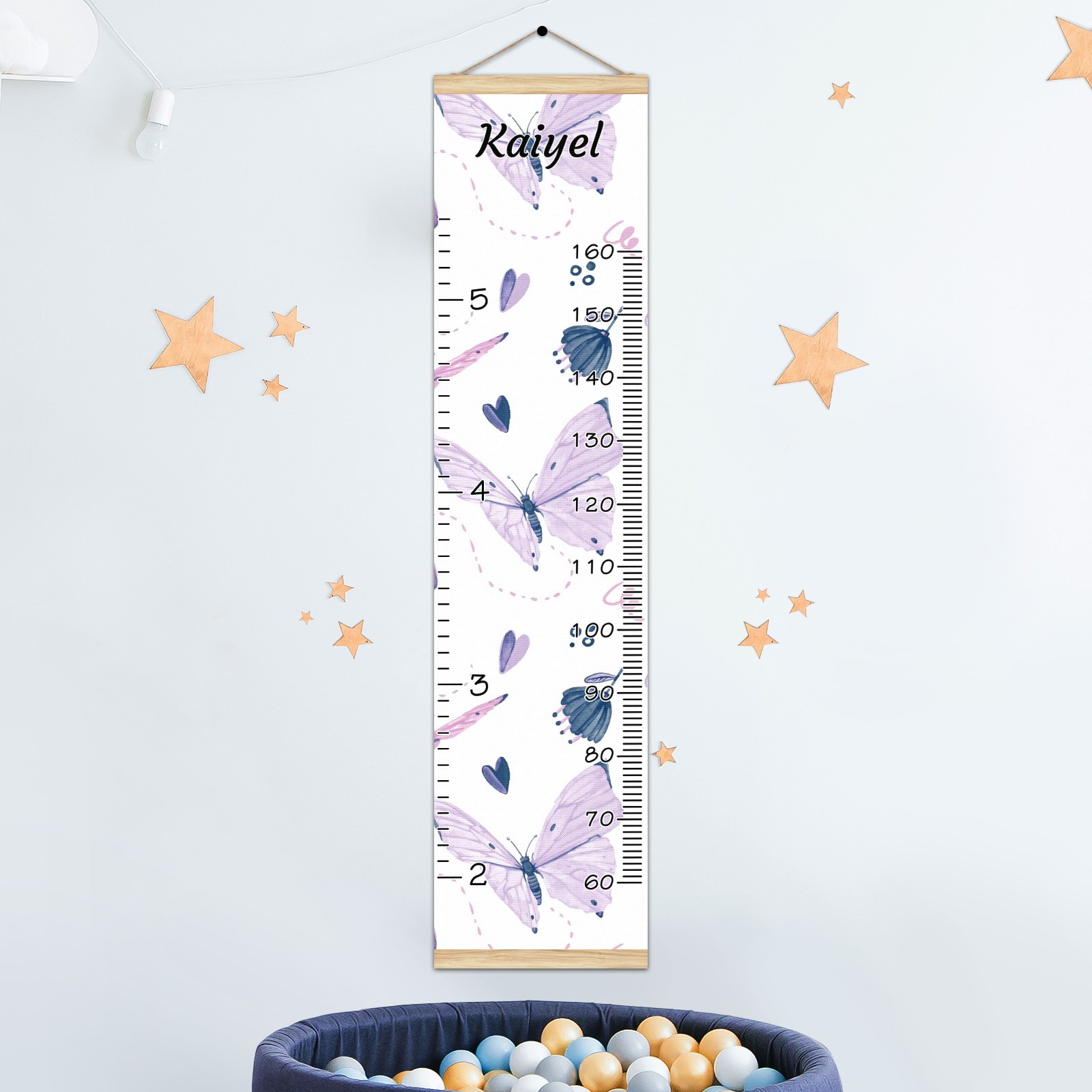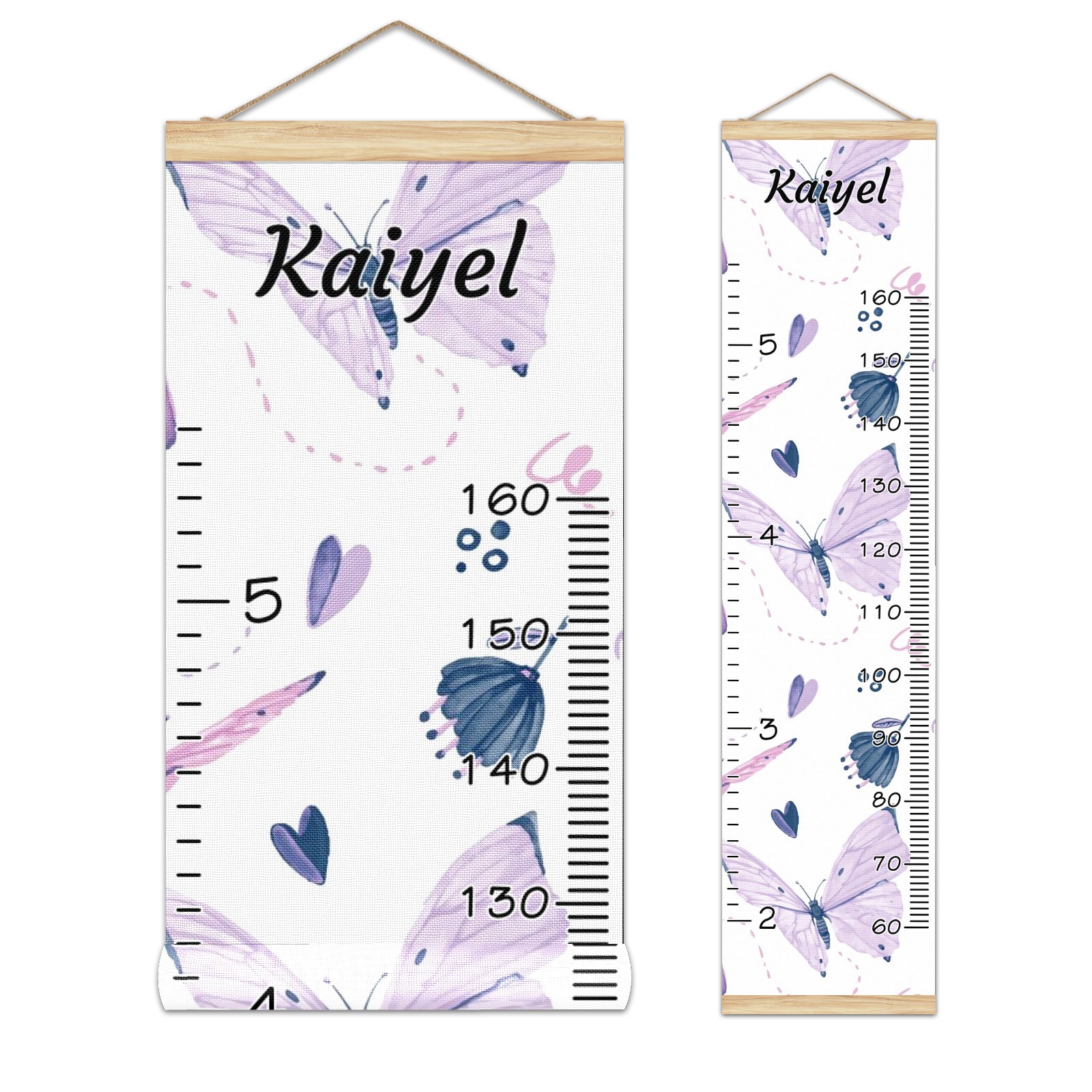 Personalized Kids Name Growth Chart Ruler for Wall Wood Frame Canvas Height Measure Chart 13.4x56 in Hanging Growth Chart Butterflies Purple12.31 Boys Girls Room Decor