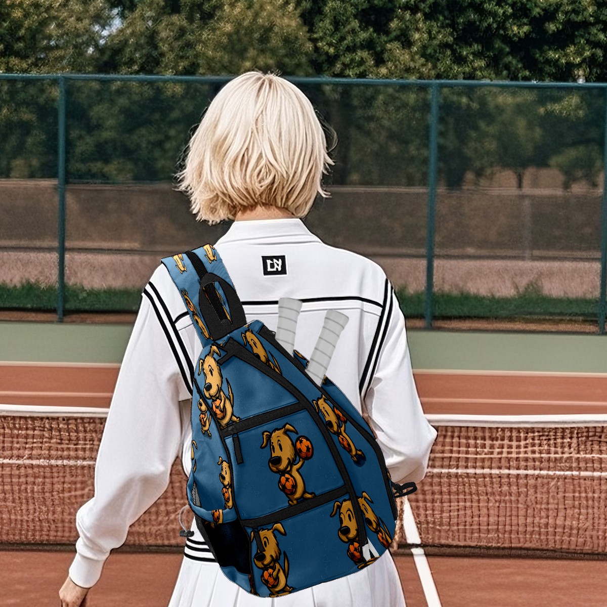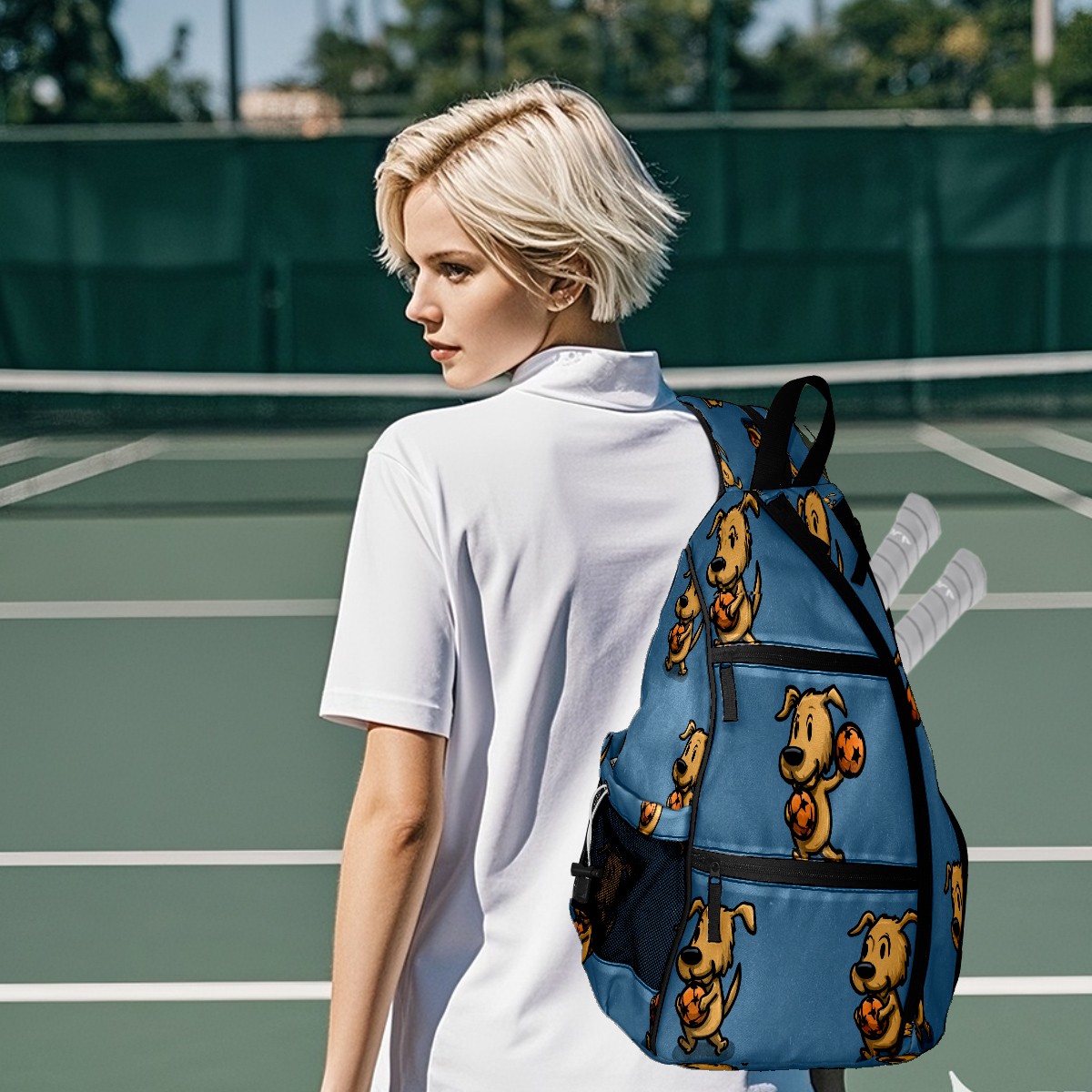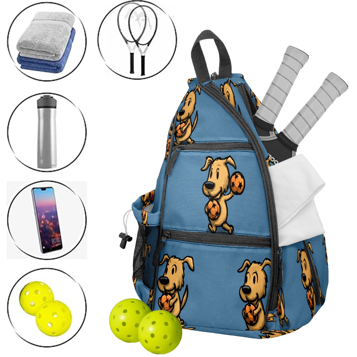 Counullo Pickleball Bag for Women & Men – Lightweight Sports Backpack with Paddle Compartments, Dual Carry Modes, Detachable Zippered Strap, Cute Puppy Blue, Perfect Gift for Players