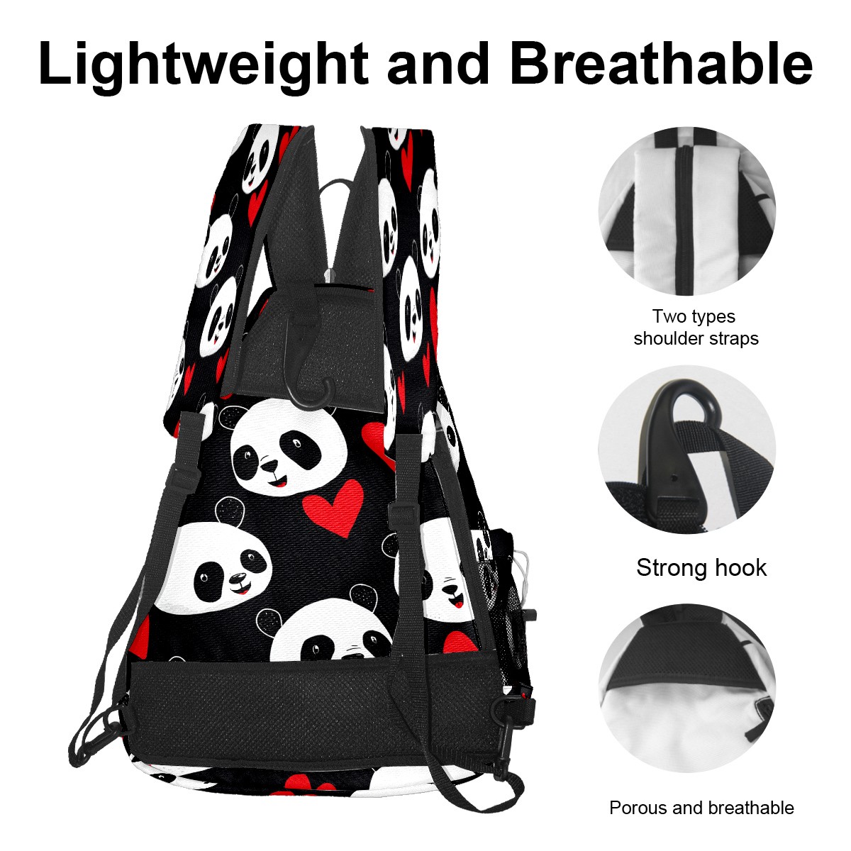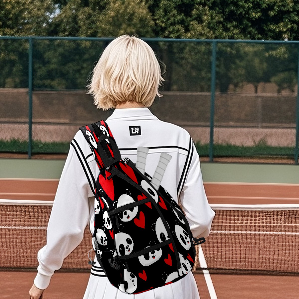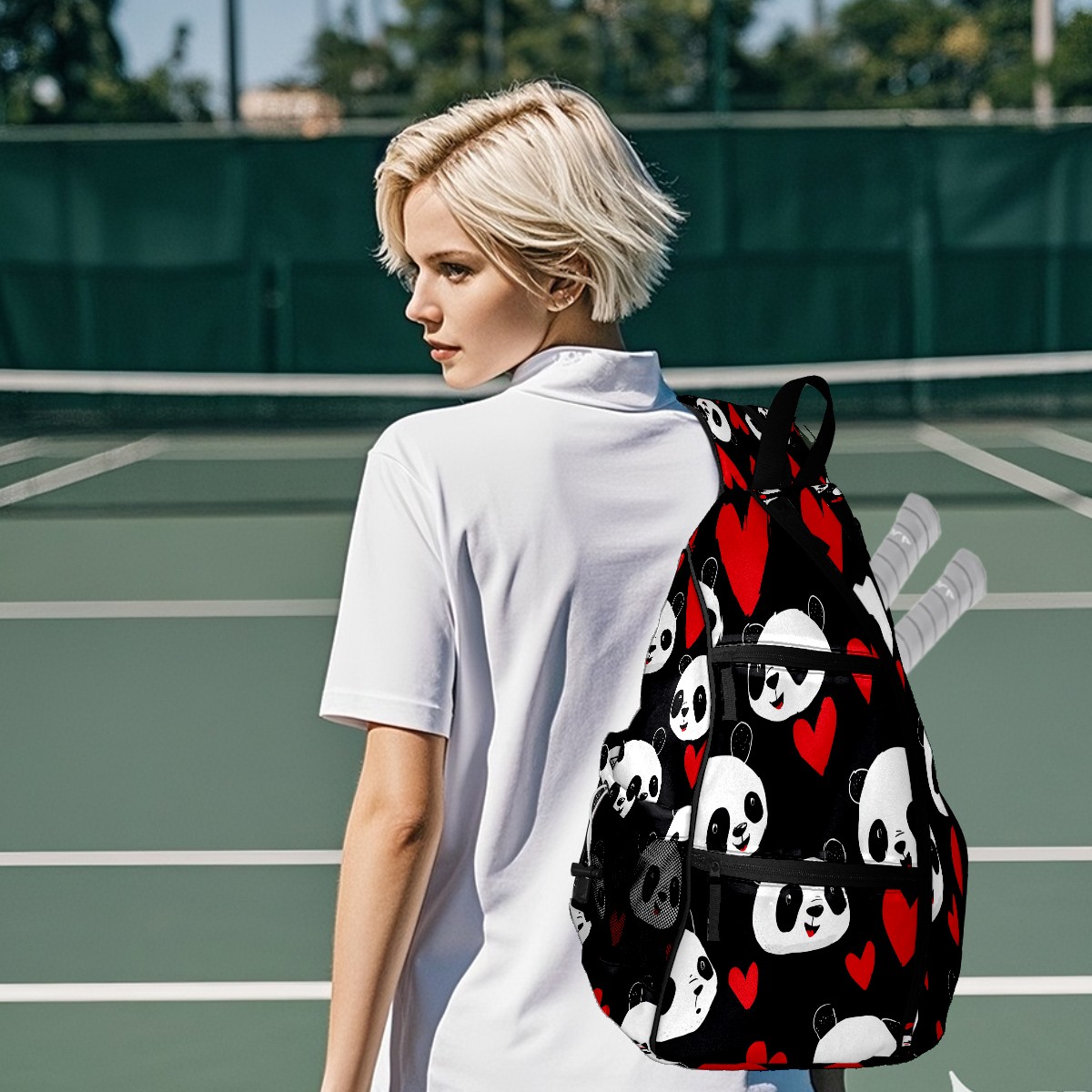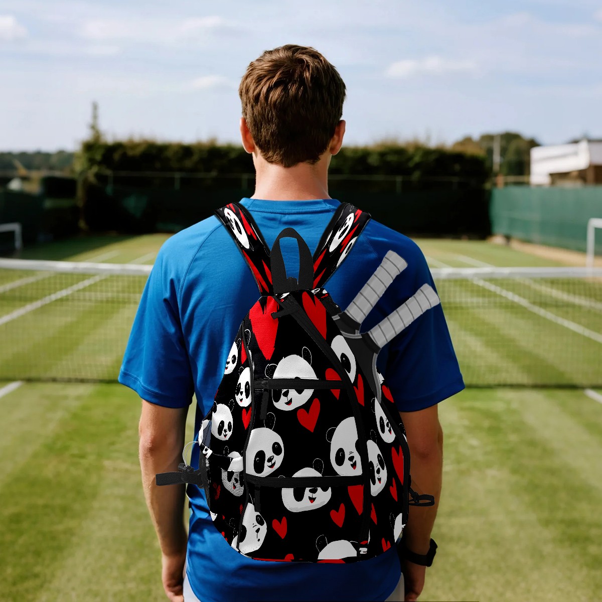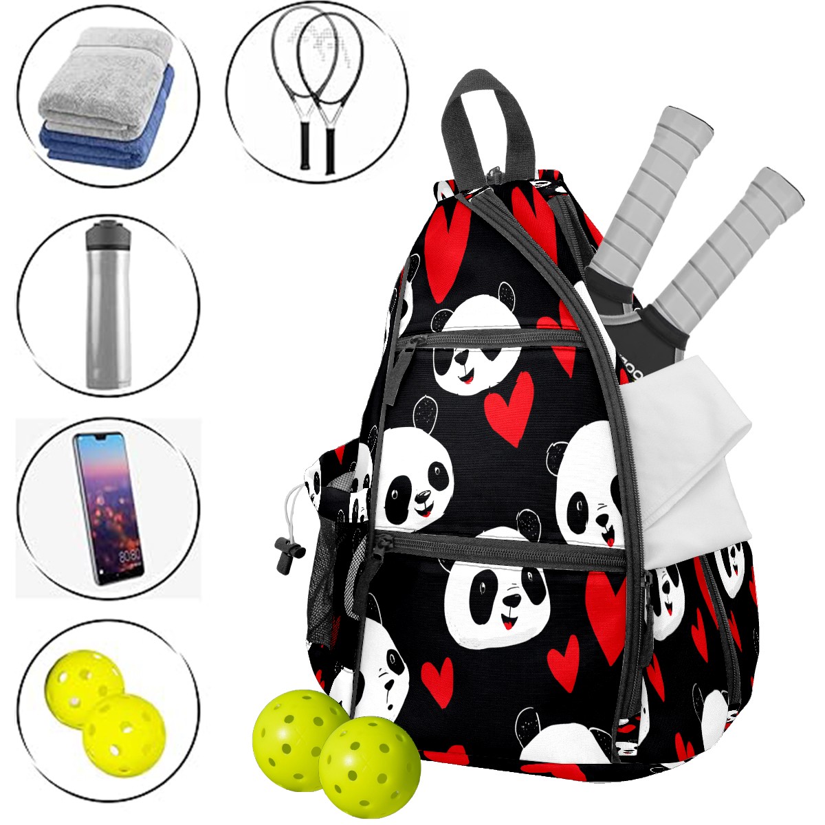 Counullo Pickleball Bag for Women & Men – Lightweight Sports Backpack with Paddle Compartments, Dual Carry Modes, Detachable Zippered Strap, Romantic Panda Black, Perfect Gift for Players