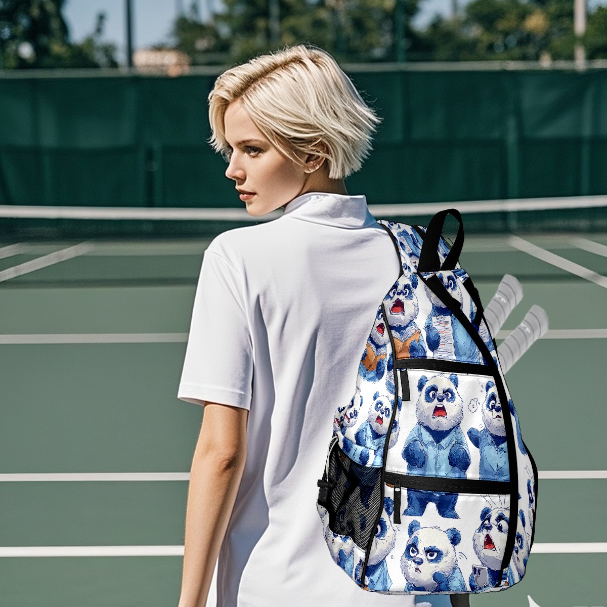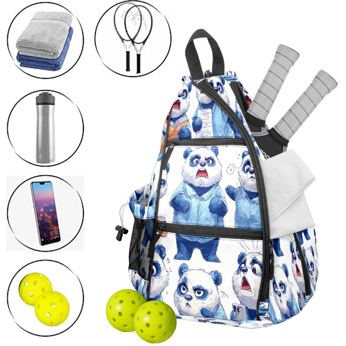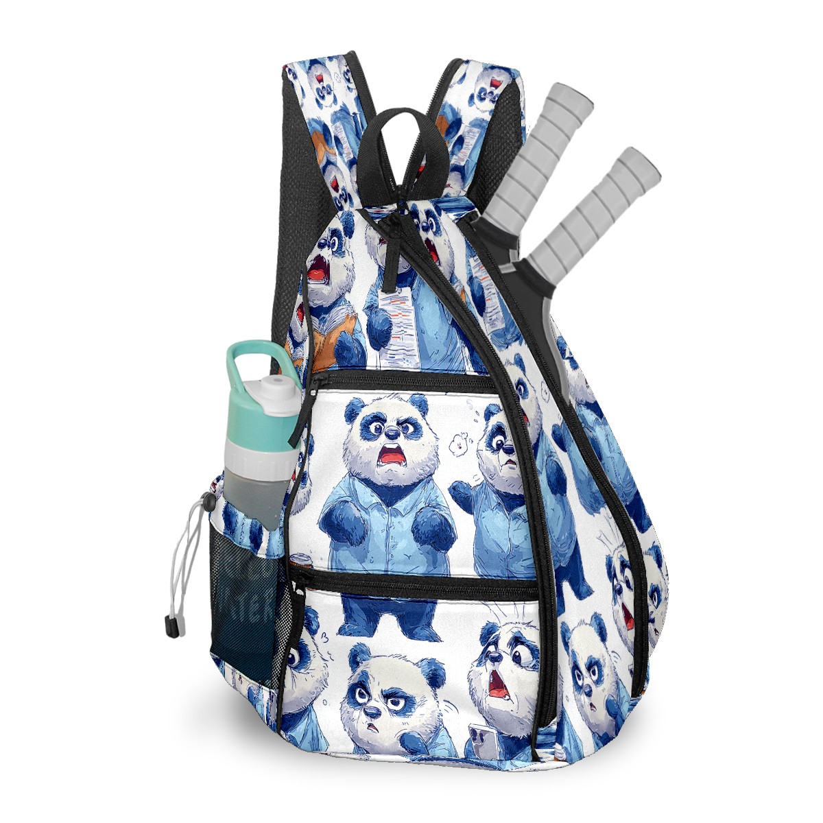 Counullo Pickleball Bag for Women & Men – Lightweight Sports Backpack with Paddle Compartments, Dual Carry Modes, Detachable Zippered Strap, Funny Panda Blue, Perfect Gift for Players