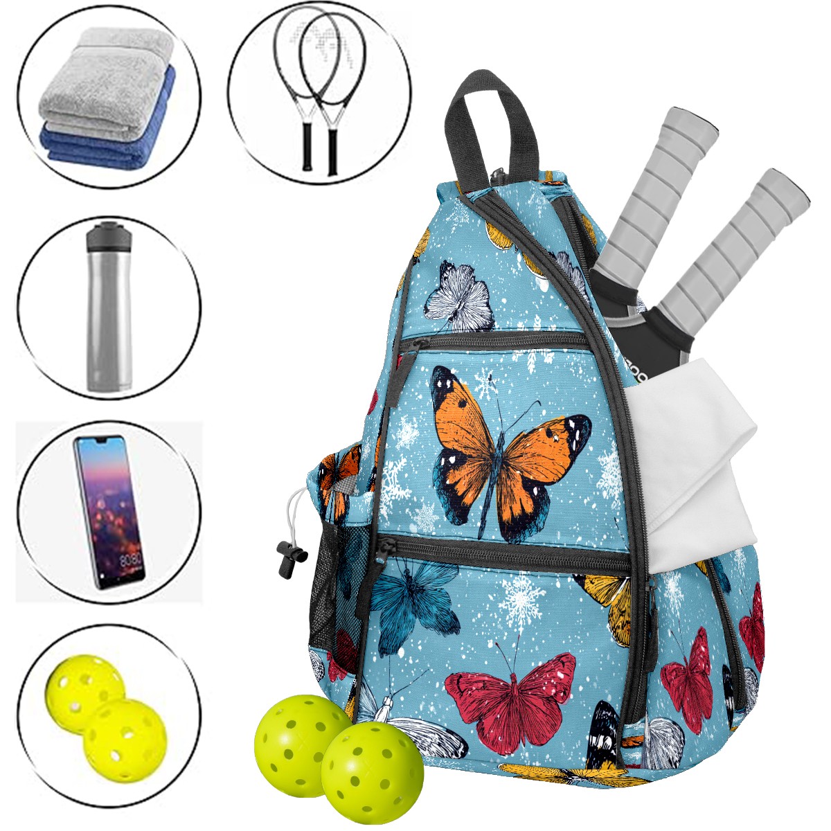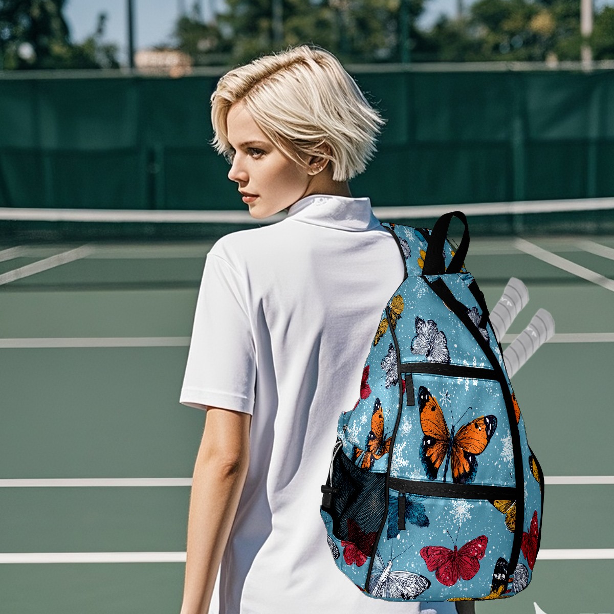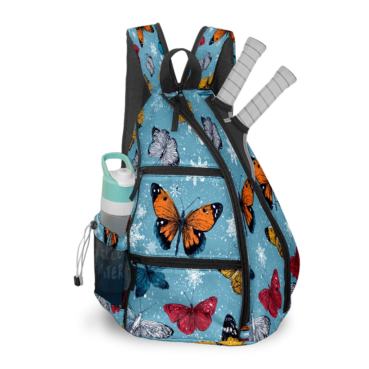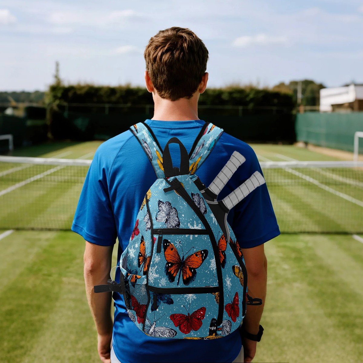 Counullo Pickleball Bag for Women & Men – Lightweight Sports Backpack with Paddle Compartments, Dual Carry Modes, Detachable Zippered Strap, Gentle Butterfly Blue, Perfect Gift for Players