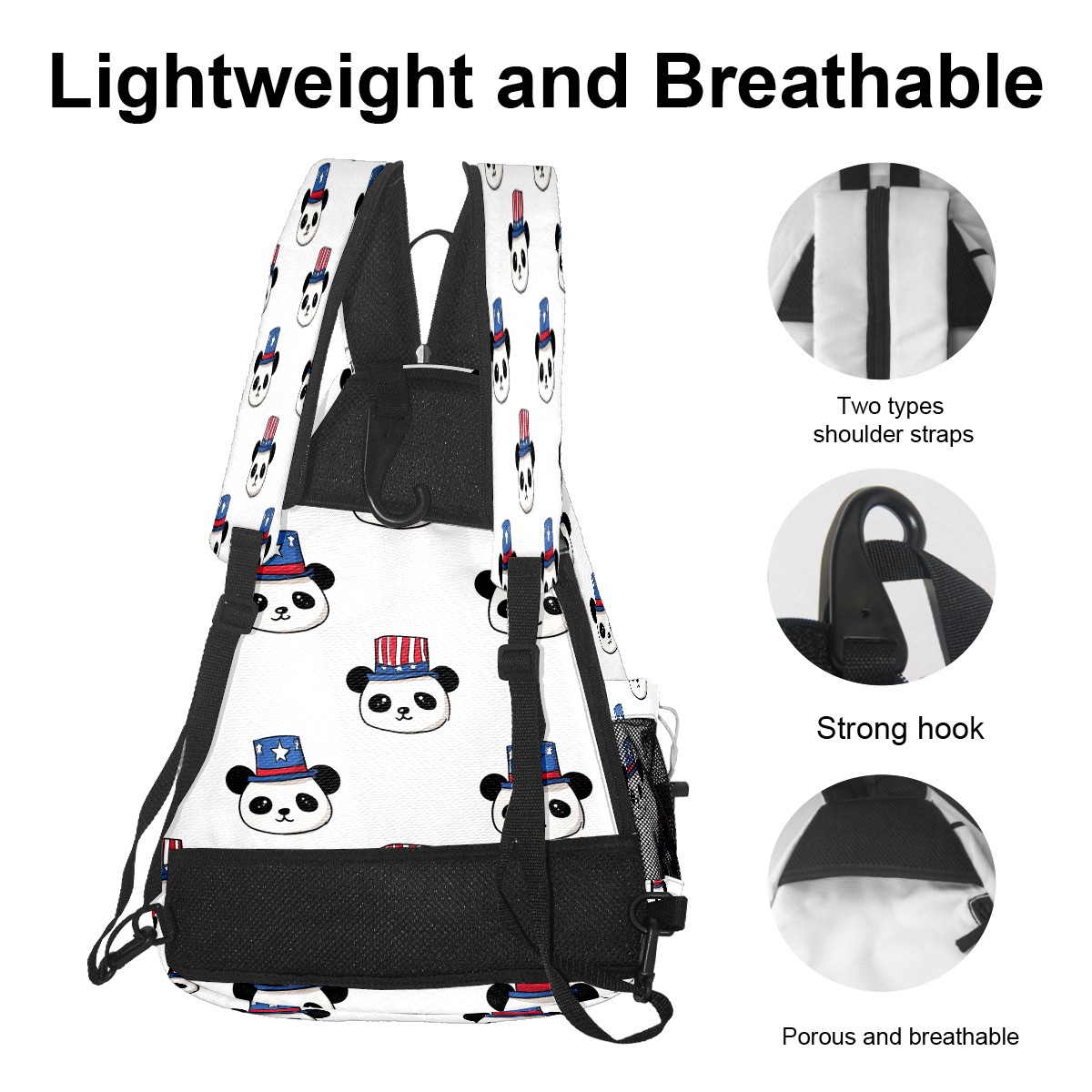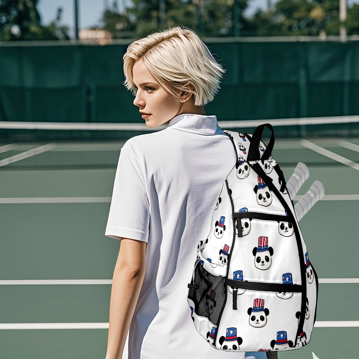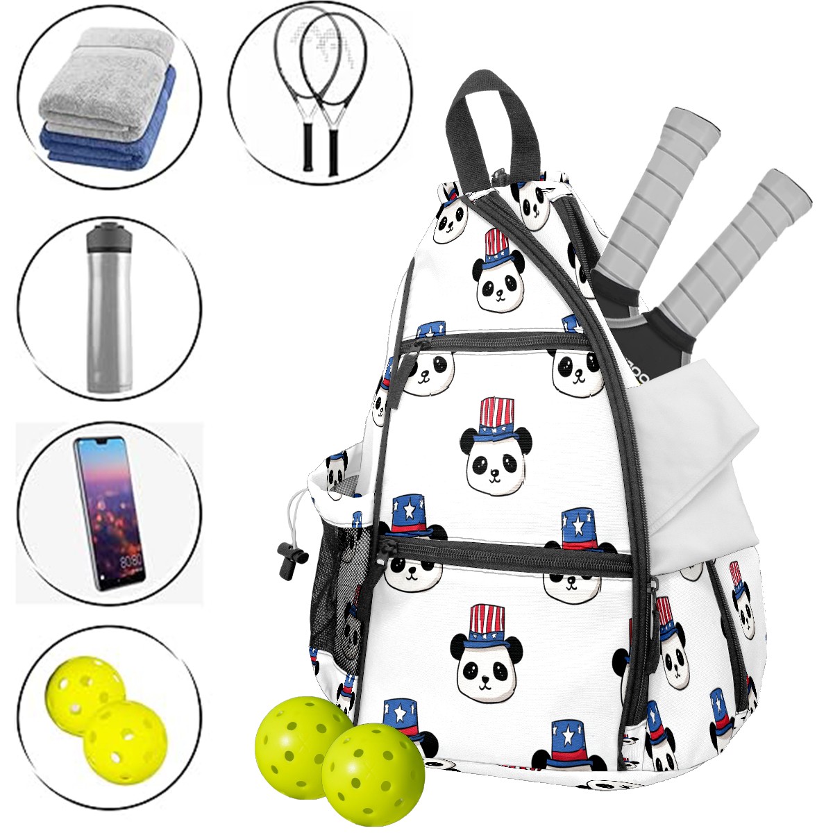 Counullo Pickleball Bag for Women & Men – Lightweight Sports Backpack with Paddle Compartments, Dual Carry Modes, Detachable Zippered Strap, Playful Panda White, Perfect Gift for Players