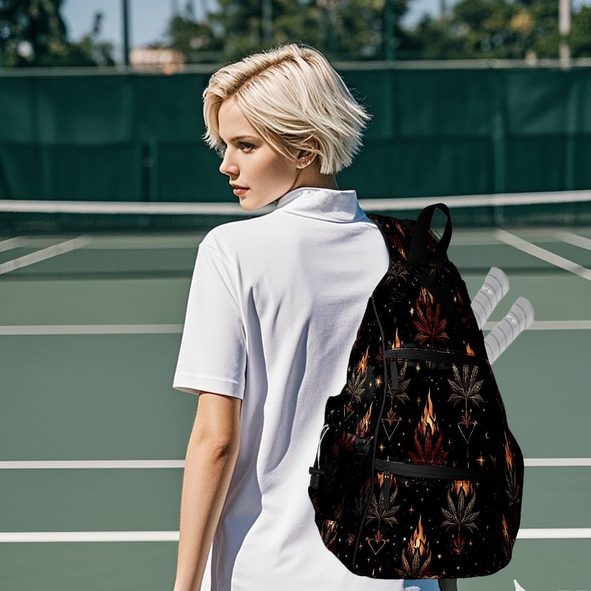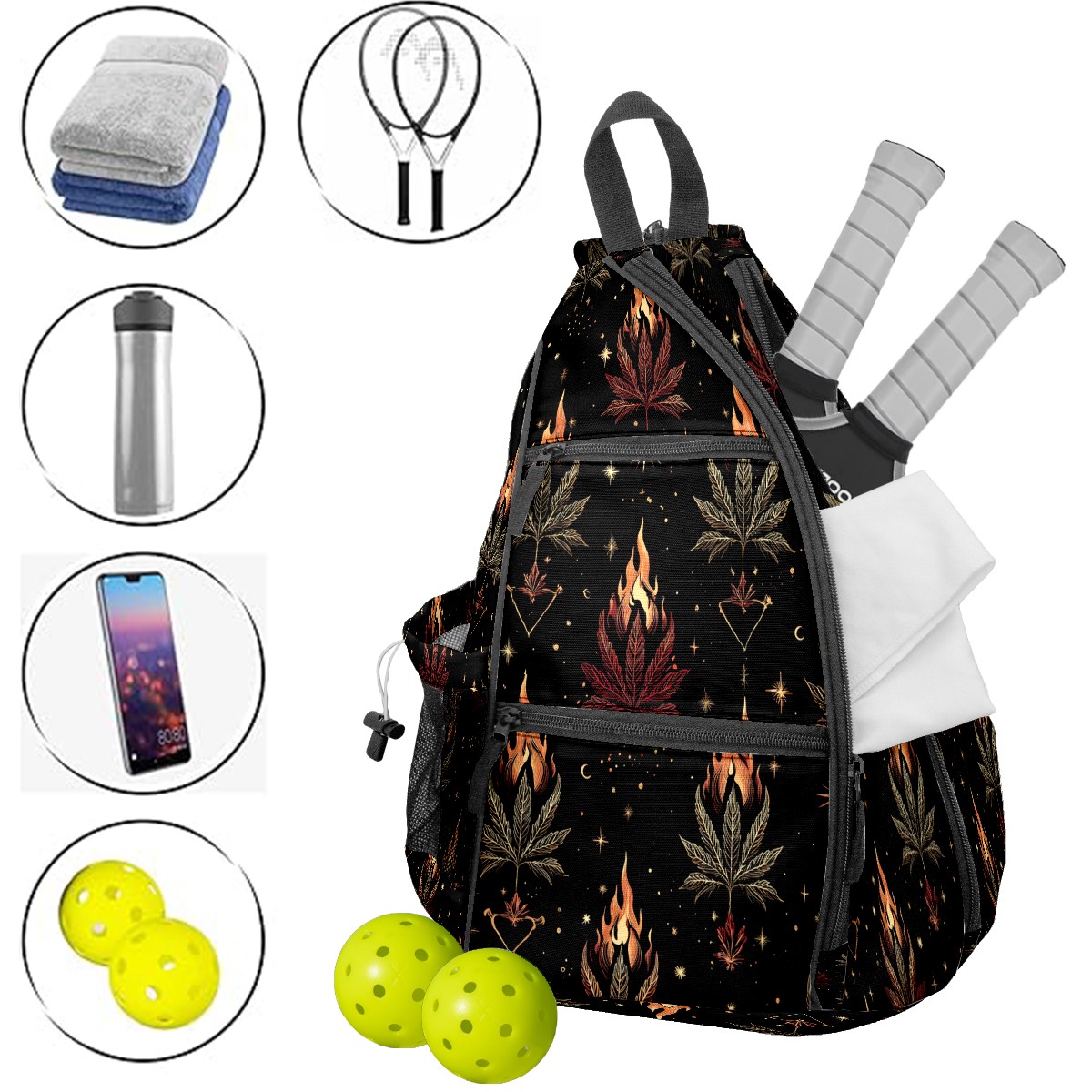 Counullo Pickleball Bag for Women & Men – Lightweight Sports Backpack with Paddle Compartments, Dual Carry Modes, Detachable Zippered Strap, Mysterious Pattern Black, Perfect Gift for Players