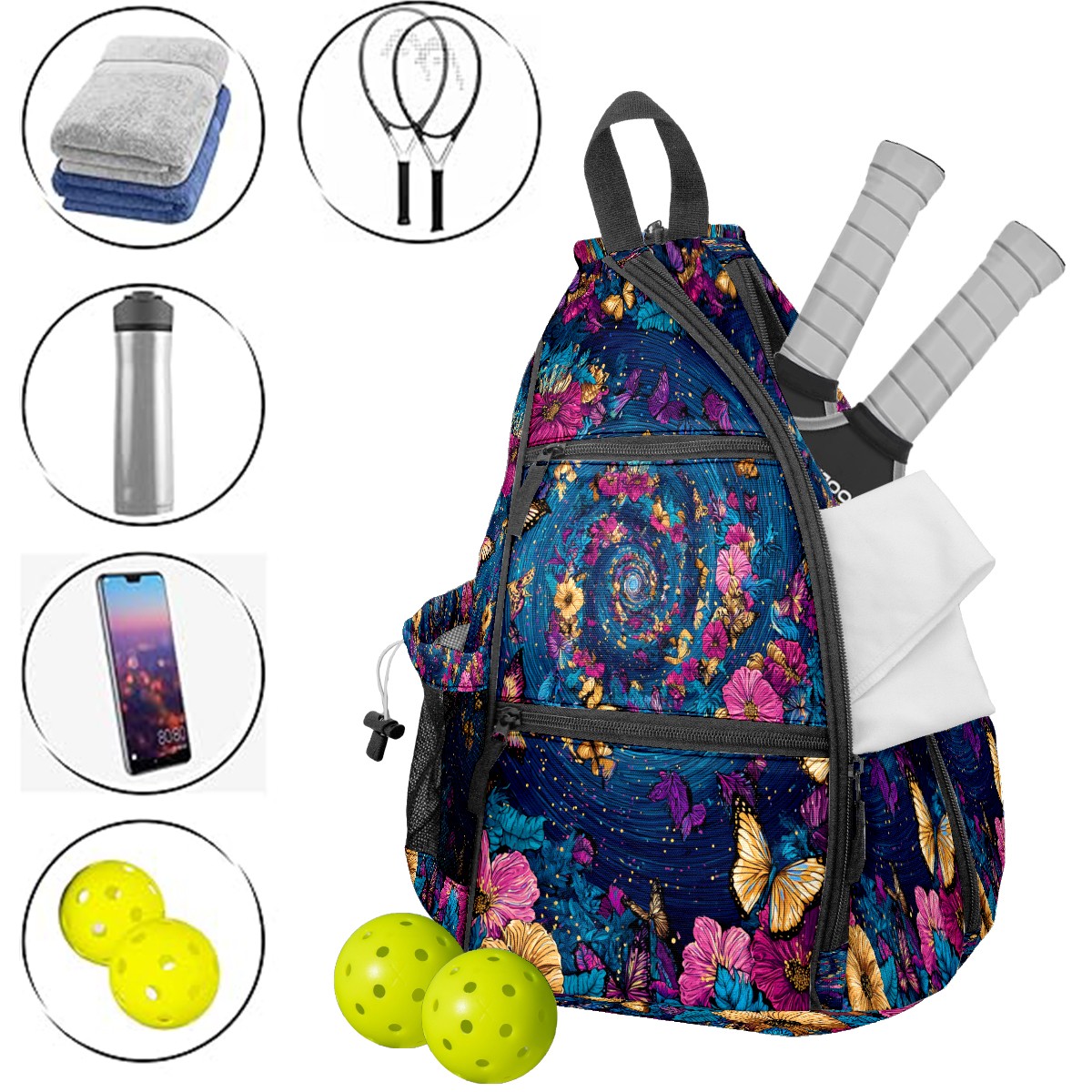 Counullo Pickleball Bag for Women & Men – Lightweight Sports Backpack with Paddle Compartments, Dual Carry Modes, Detachable Zippered Strap, Psychedelic Swirl Multi, Perfect Gift for Players