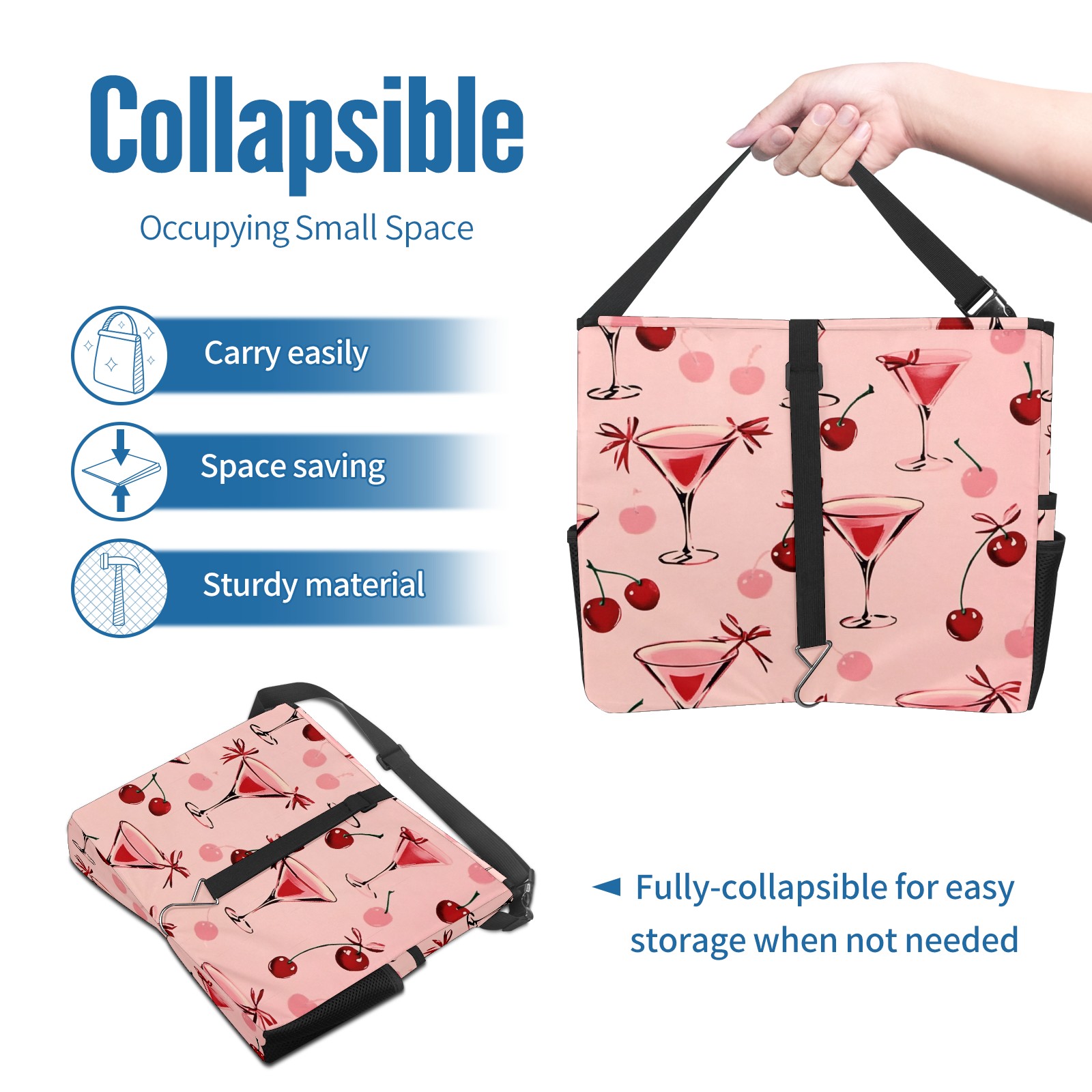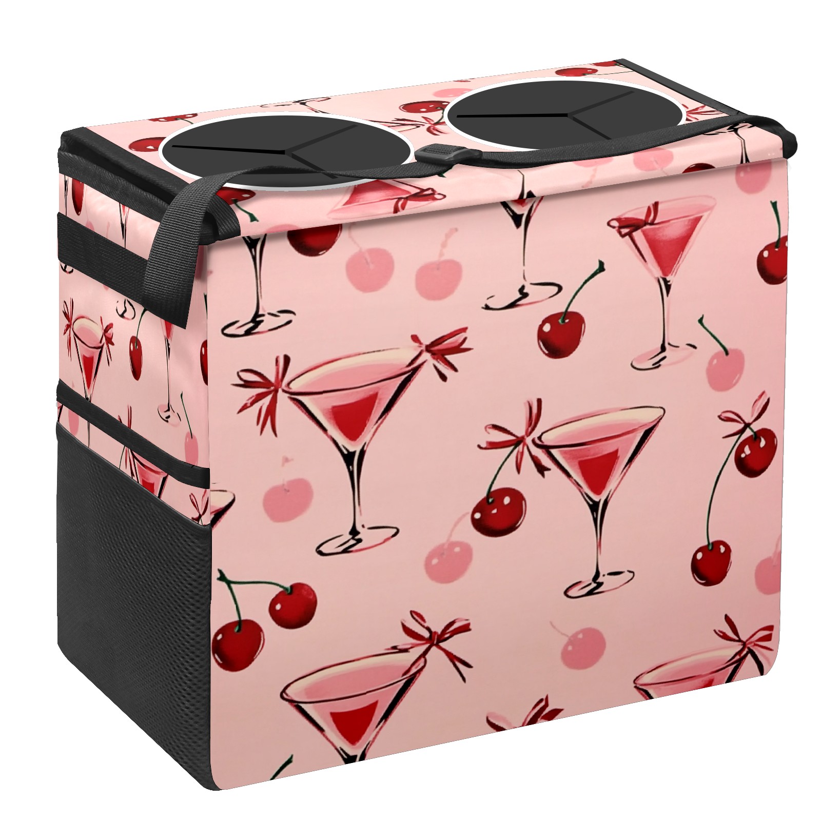 Car Trash Can with Lid, Portable Hanging Automotive Garbage Bin for Vehicles, Leakproof Waste Bag Container for SUV Truck Van Interior Auto Travel Road Trips(Red Cherries And Glasses)