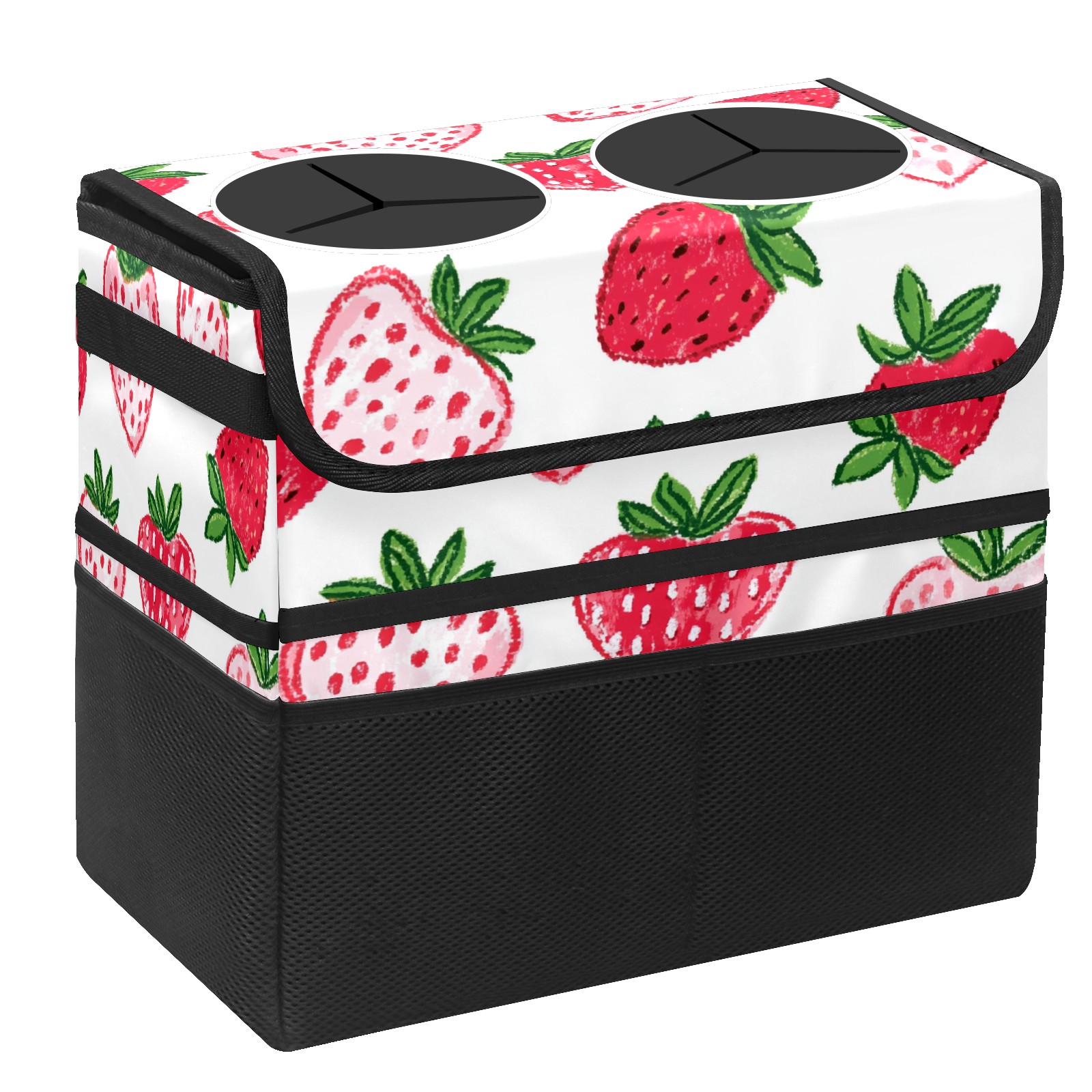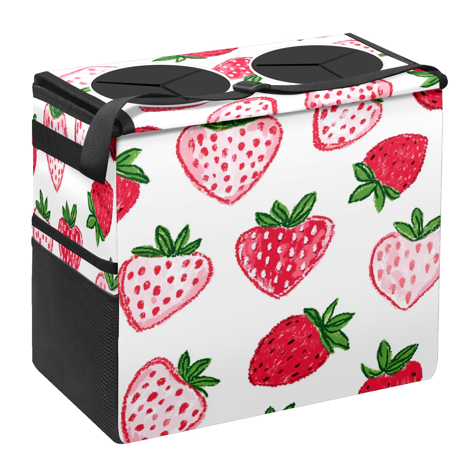Car Trash Can with Lid, Portable Hanging Automotive Garbage Bin for Vehicles, Leakproof Waste Bag Container for SUV Truck Van Interior Auto Travel Road Trips(Strawberry Hearts)