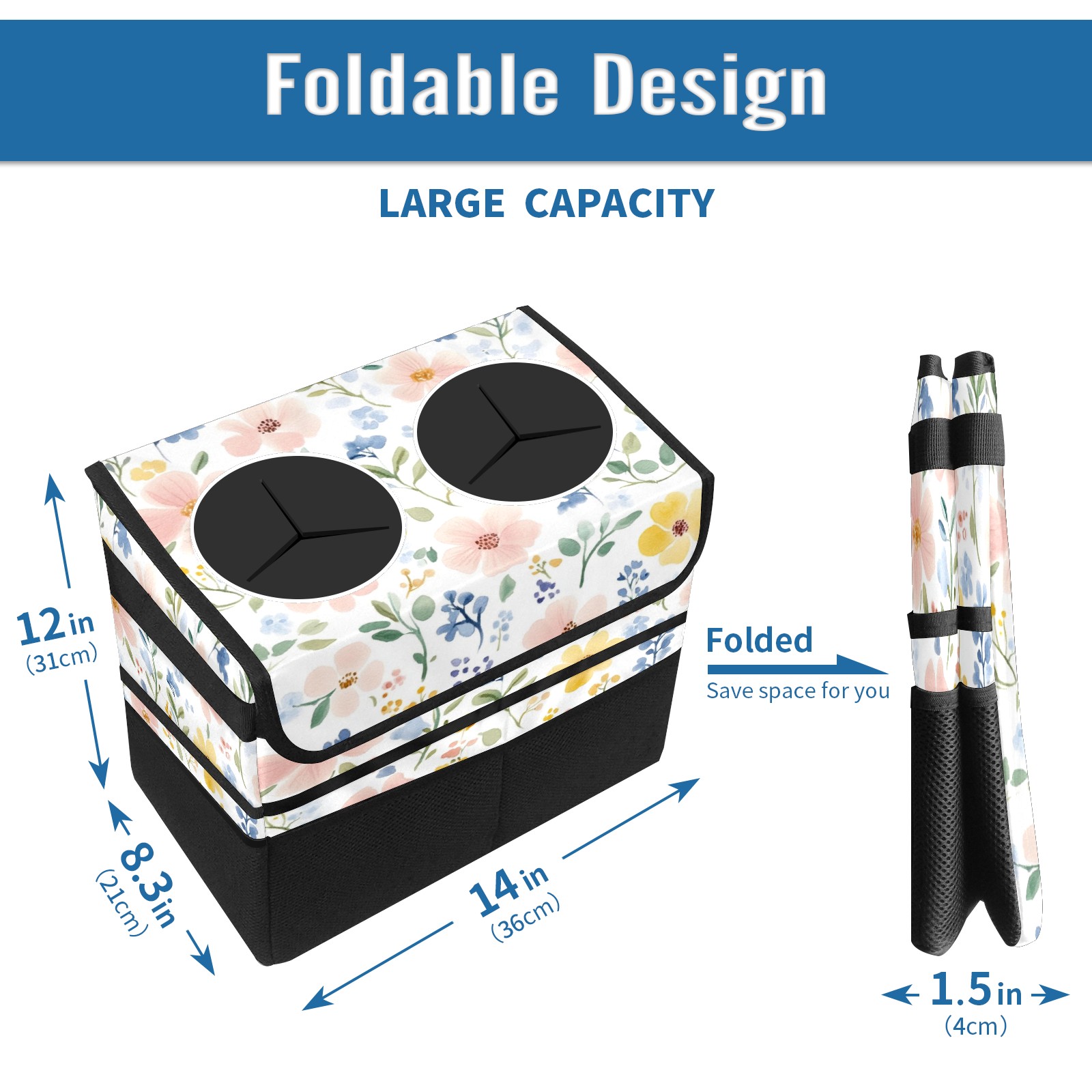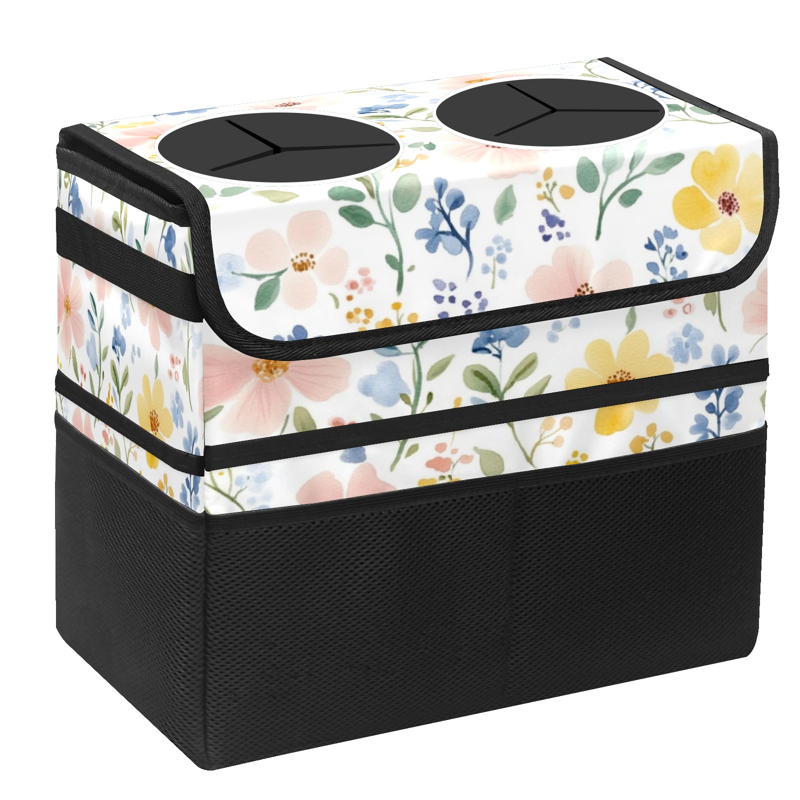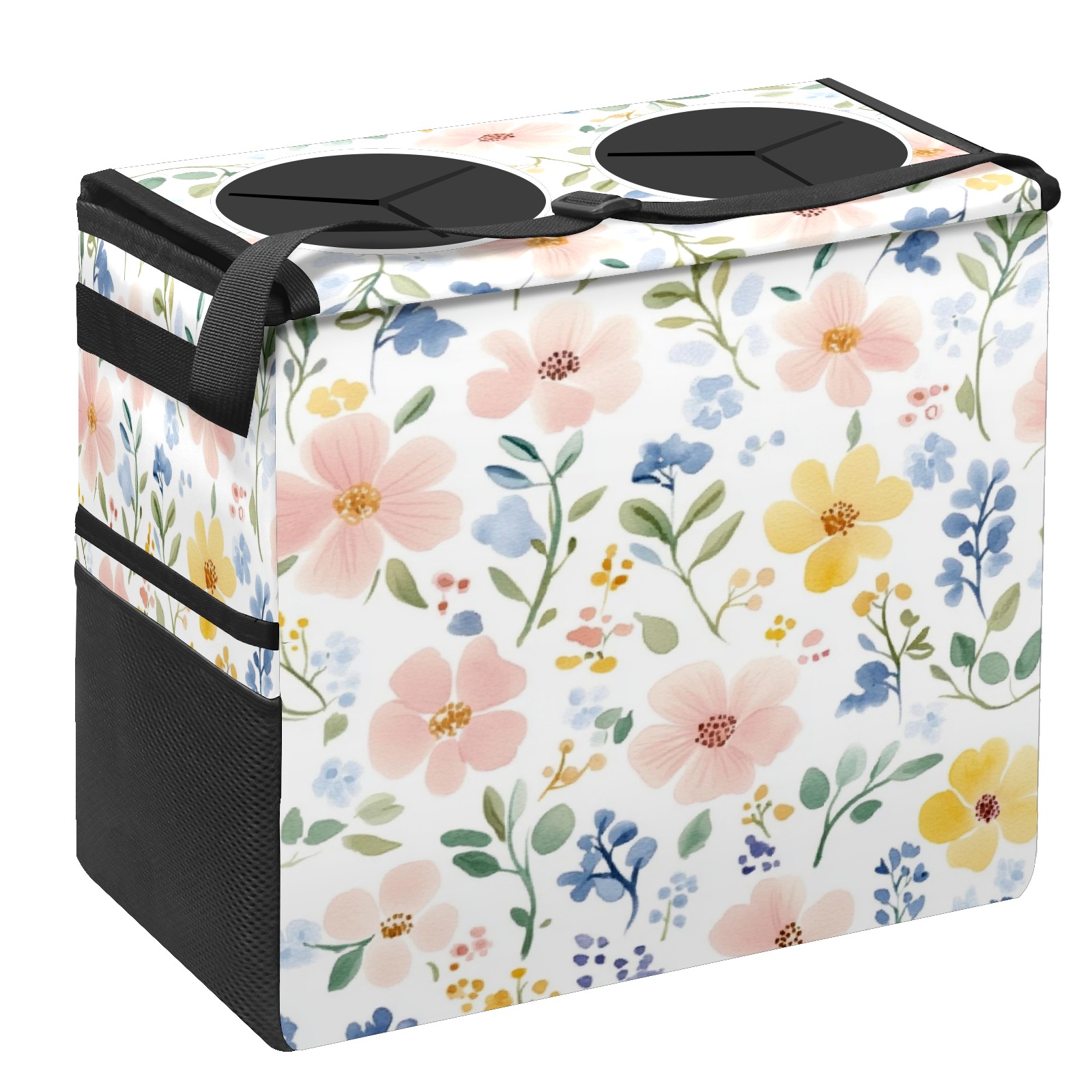 Car Trash Can with Lid, Portable Hanging Automotive Garbage Bin for Vehicles, Leakproof Waste Bag Container for SUV Truck Van Interior Auto Travel Road Trips(Watercolor Floral)