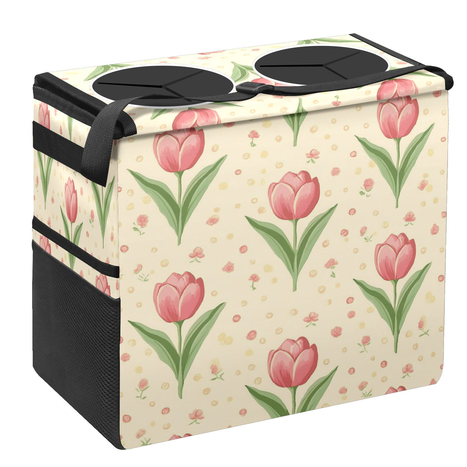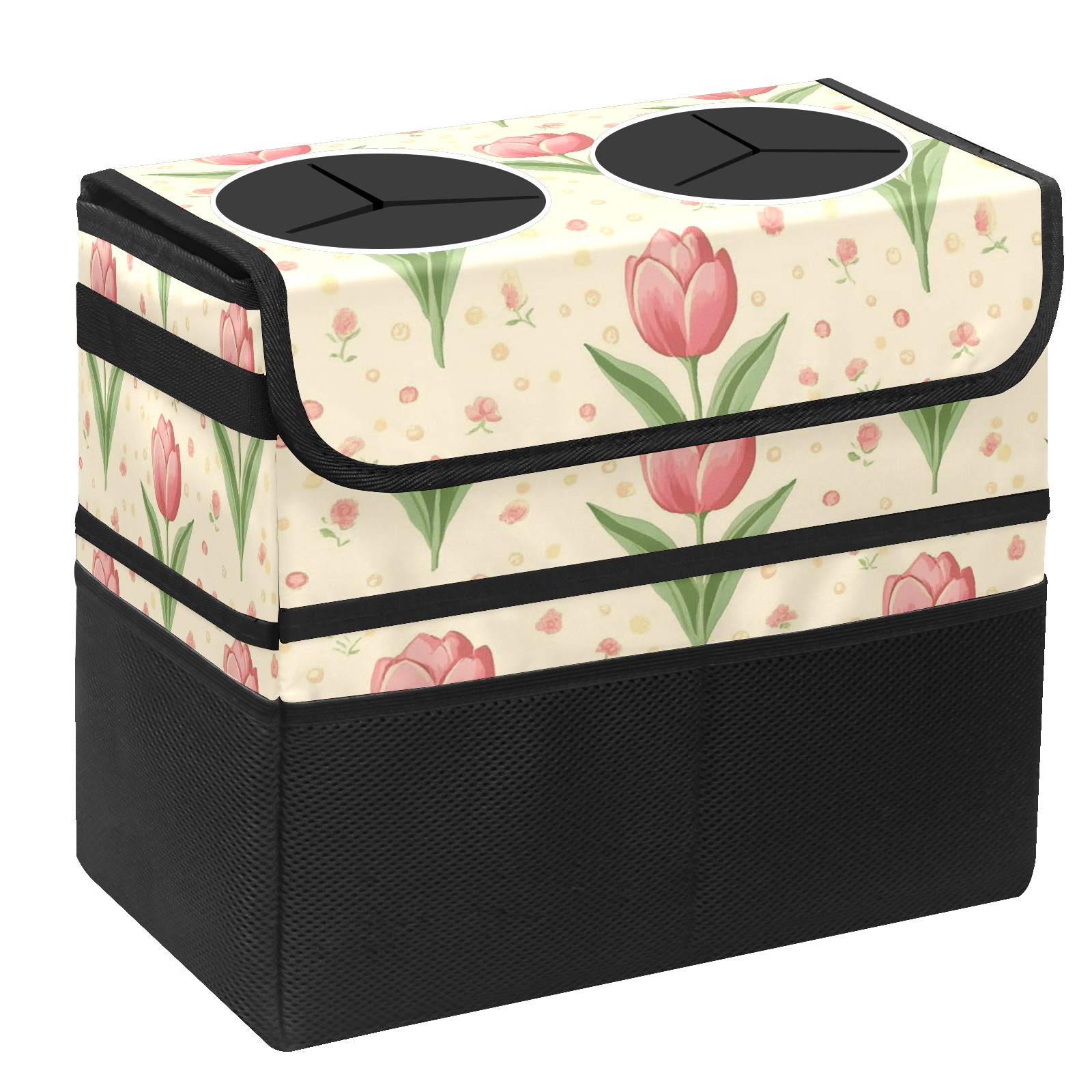 Car Trash Can with Lid, Portable Hanging Automotive Garbage Bin for Vehicles, Leakproof Waste Bag Container for SUV Truck Van Interior Auto Travel Road Trips(Tulip)