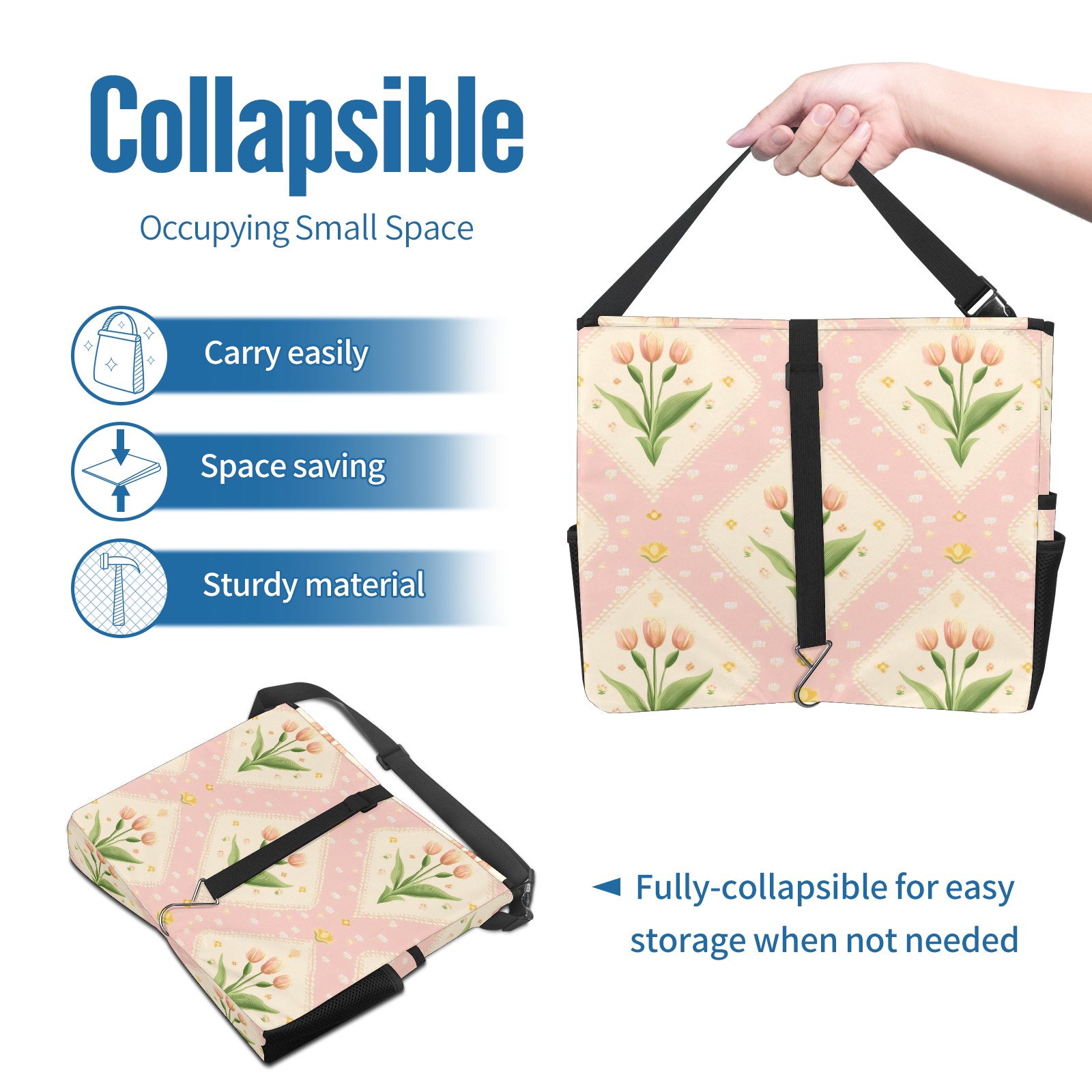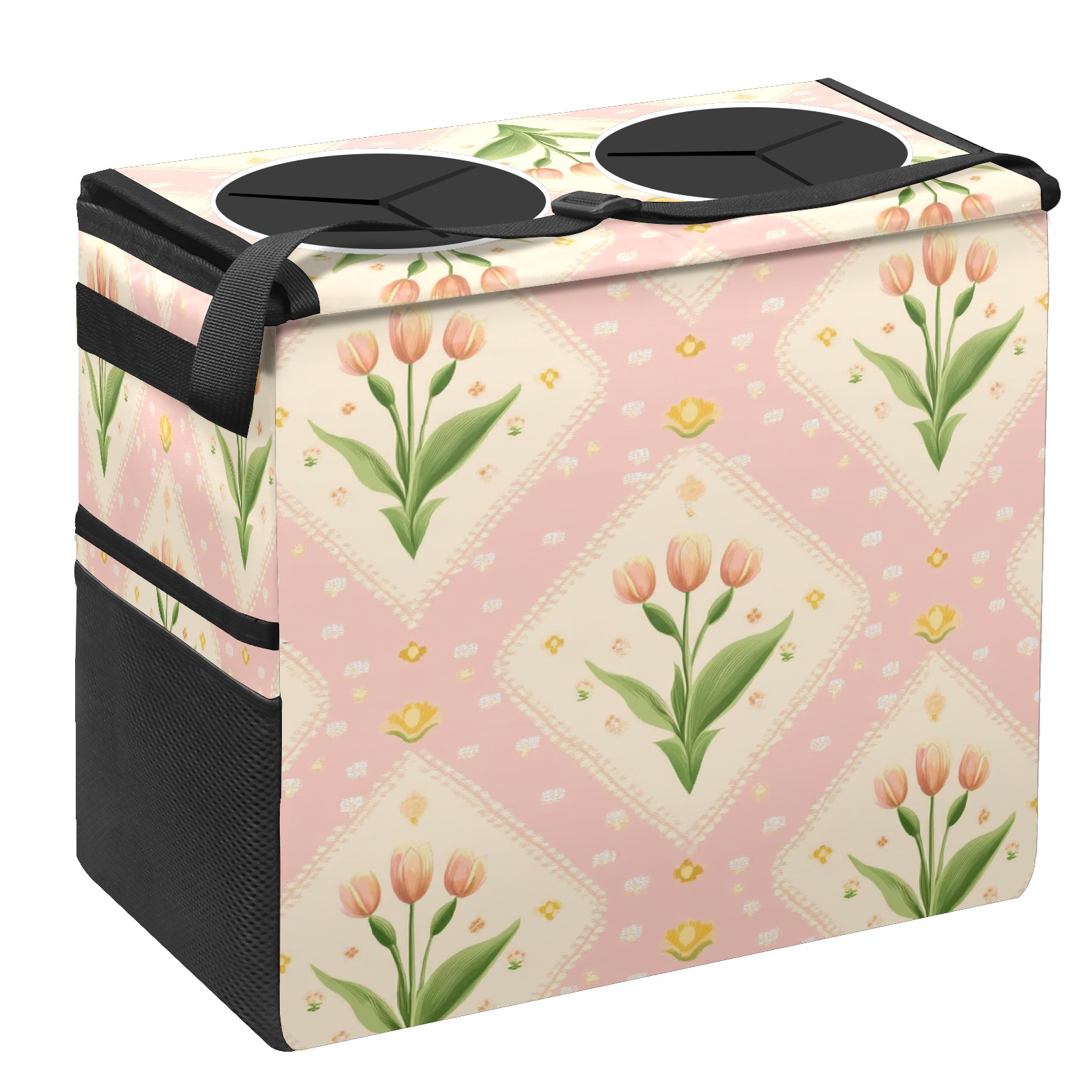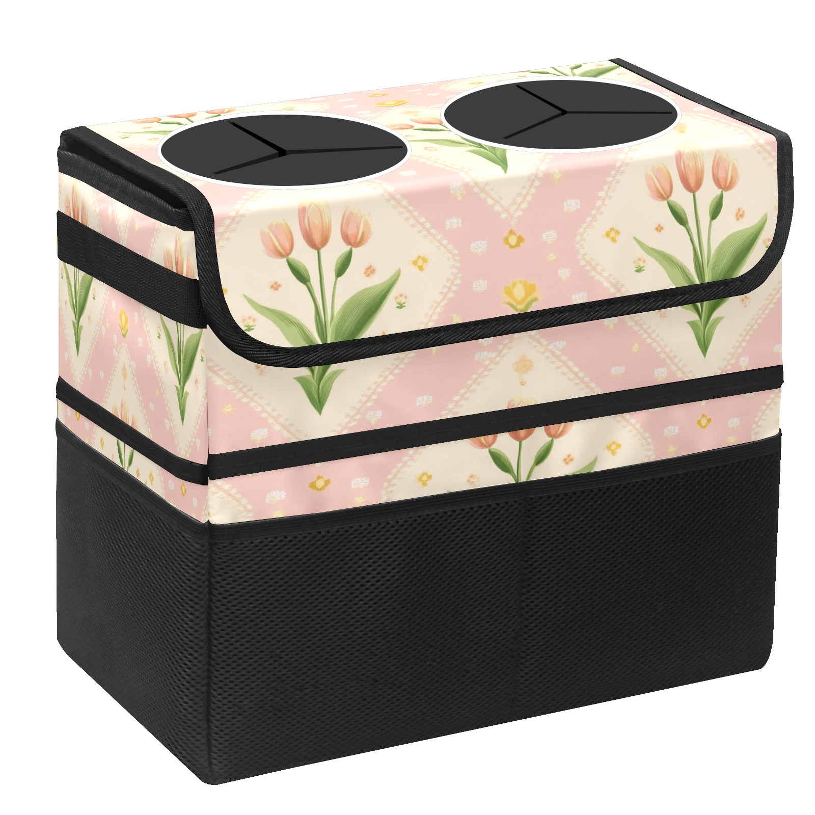 Car Trash Can with Lid, Portable Hanging Automotive Garbage Bin for Vehicles, Leakproof Waste Bag Container for SUV Truck Van Interior Auto Travel Road Trips(Small Tulips)