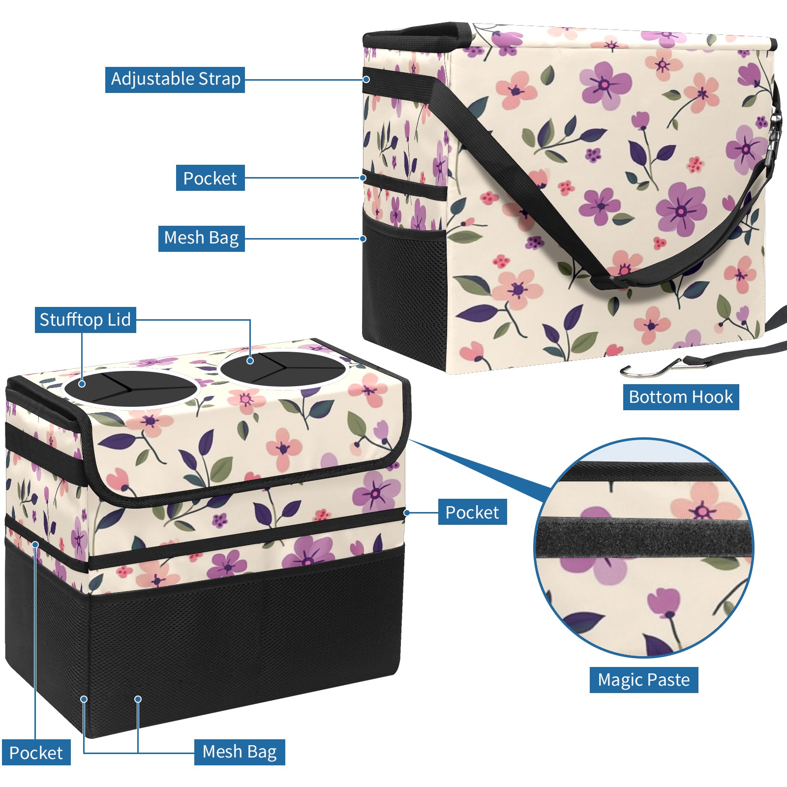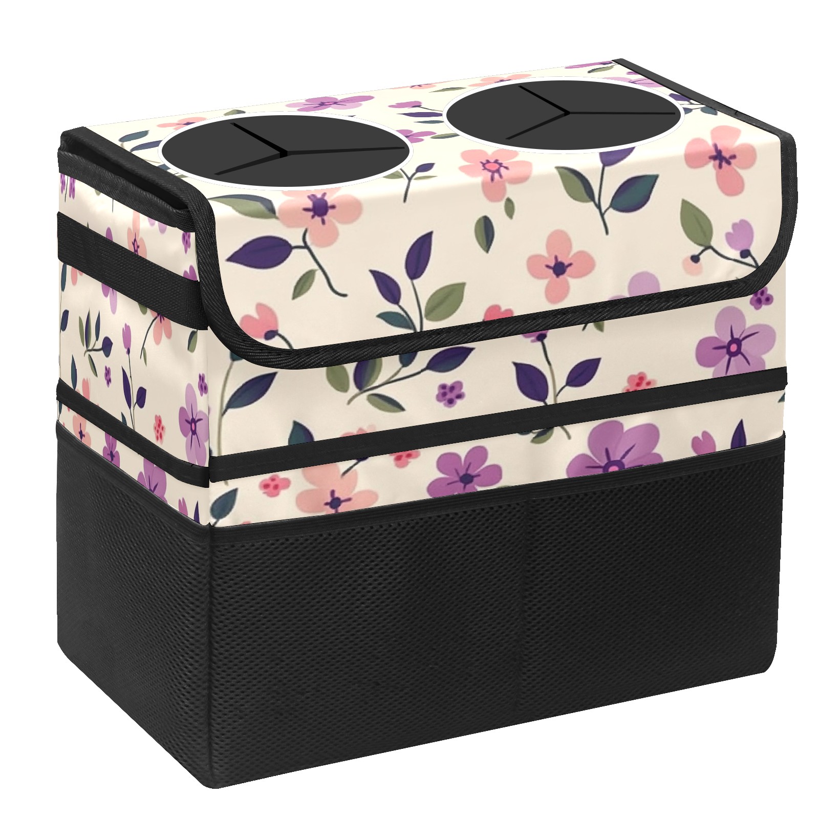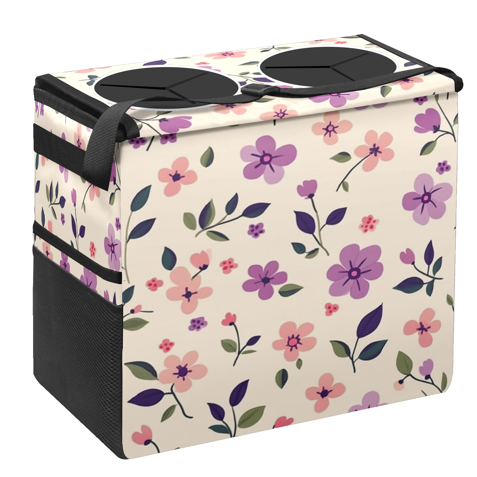 Car Trash Can with Lid, Portable Hanging Automotive Garbage Bin for Vehicles, Leakproof Waste Bag Container for SUV Truck Van Interior Auto Travel Road Trips(Purple And Pink Floral)