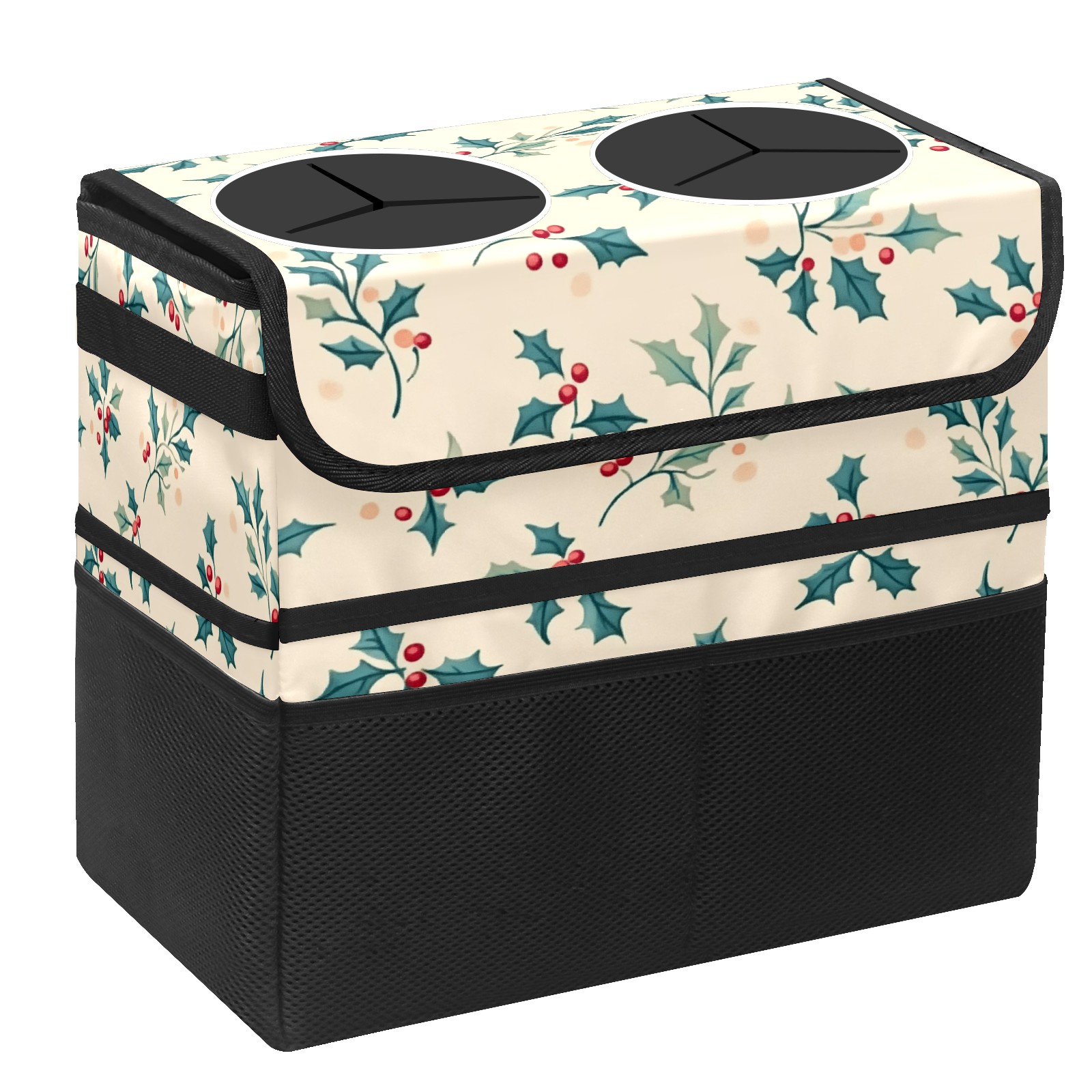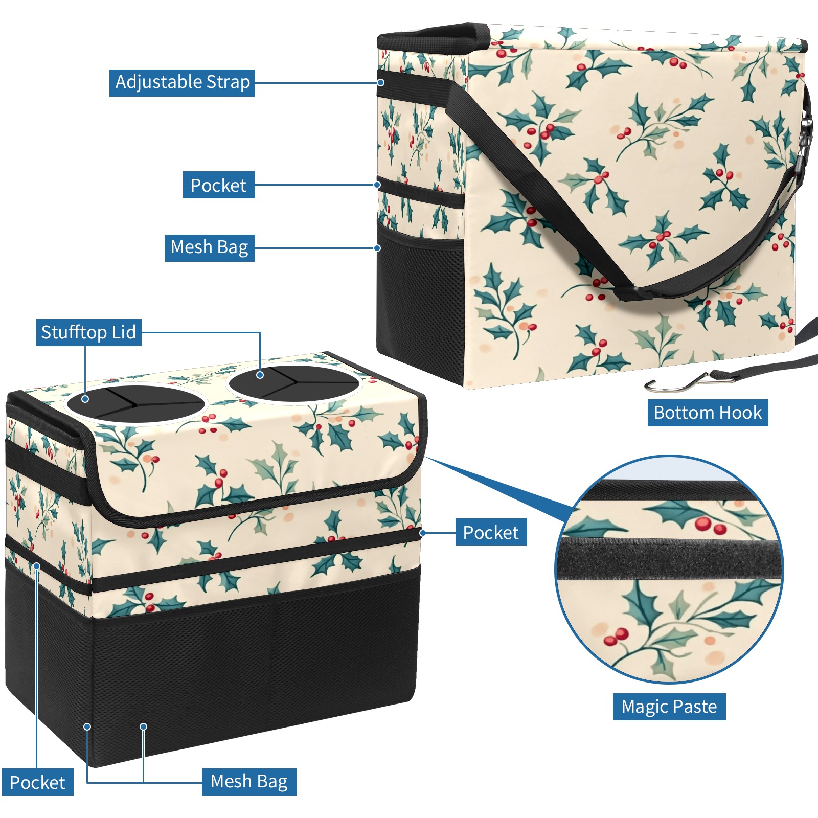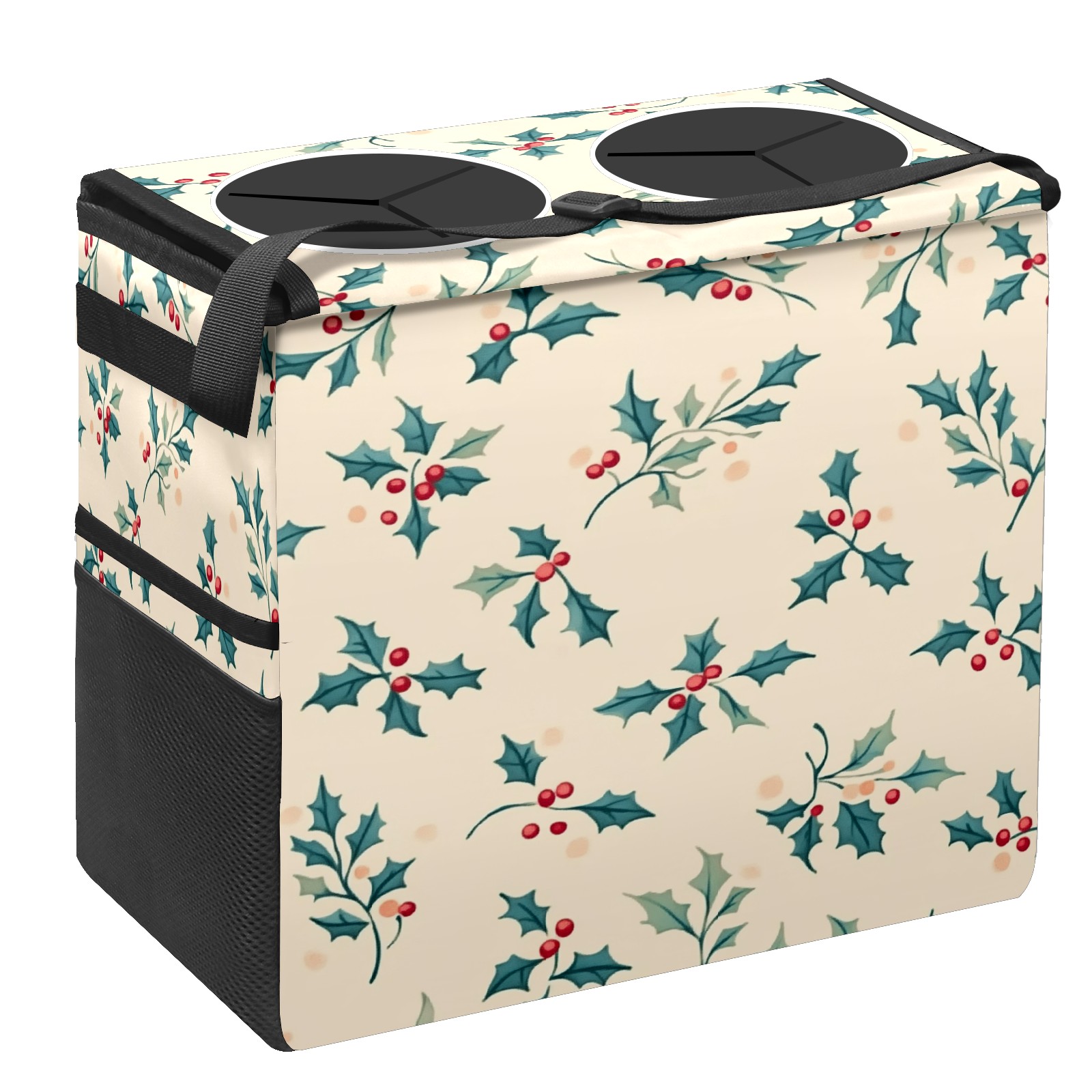 Car Trash Can with Lid, Portable Hanging Automotive Garbage Bin for Vehicles, Leakproof Waste Bag Container for SUV Truck Van Interior Auto Travel Road Trips(Small Holly Leaves)