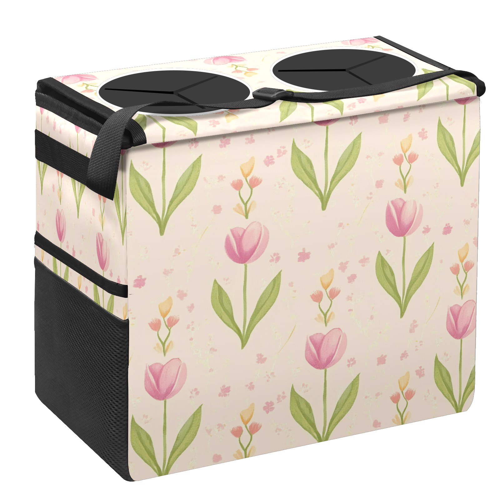 Car Trash Can with Lid, Portable Hanging Automotive Garbage Bin for Vehicles, Leakproof Waste Bag Container for SUV Truck Van Interior Auto Travel Road Trips(Shabby Chic Tulip)