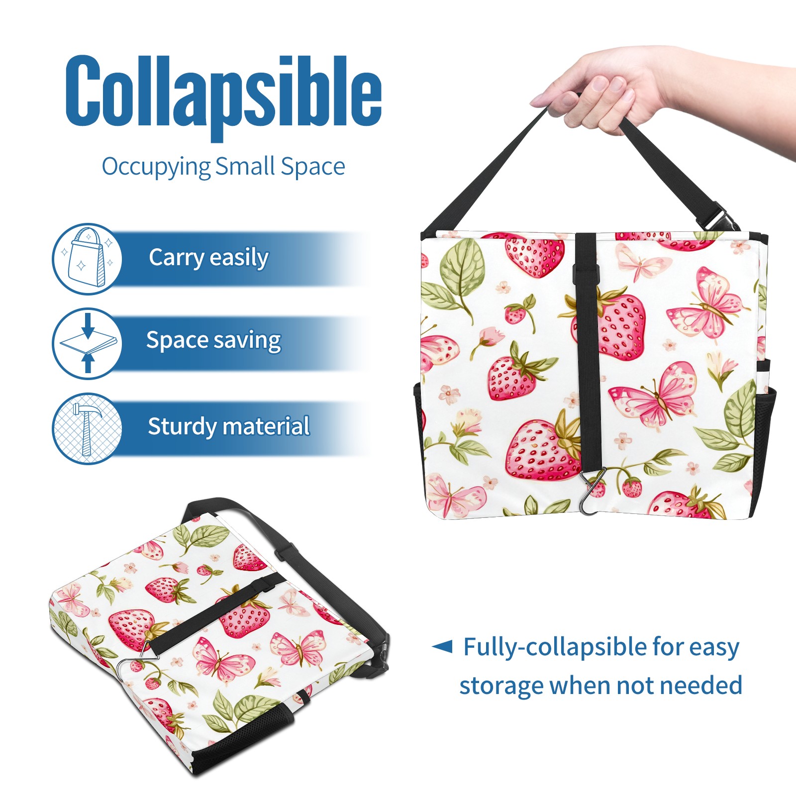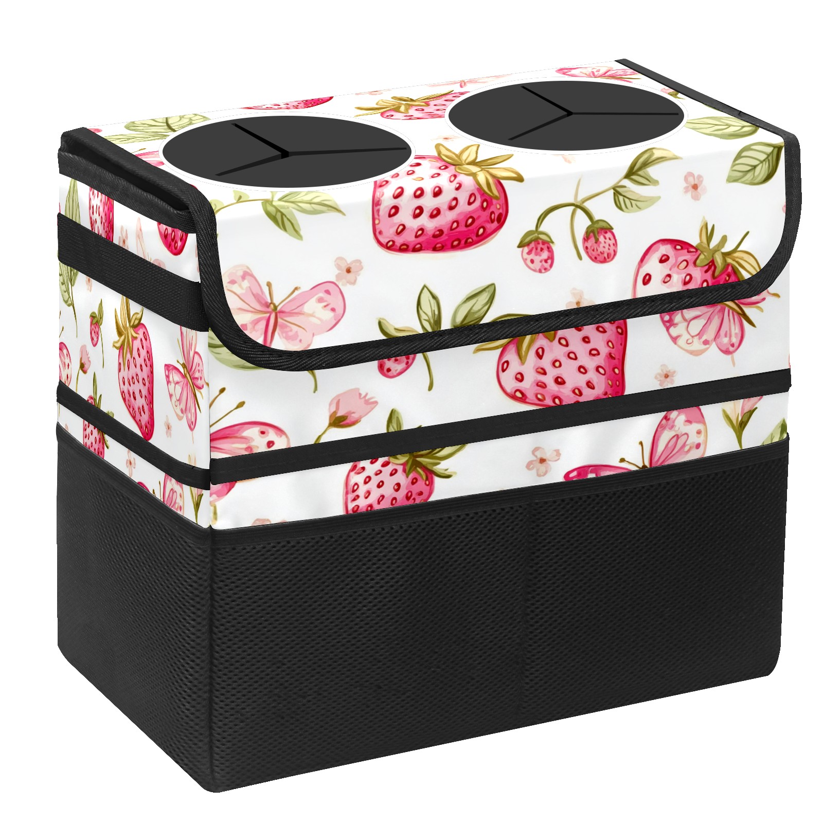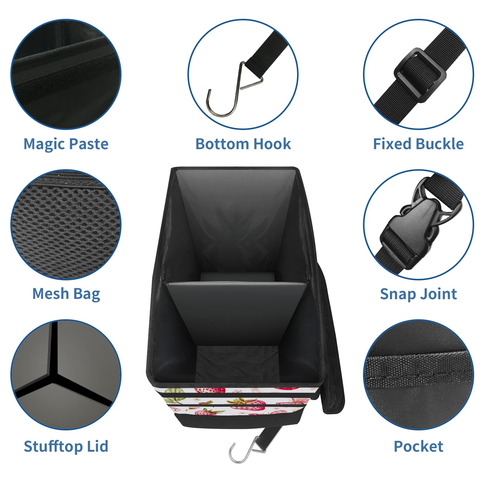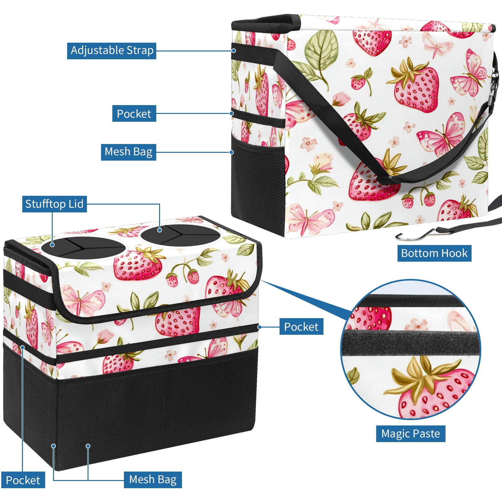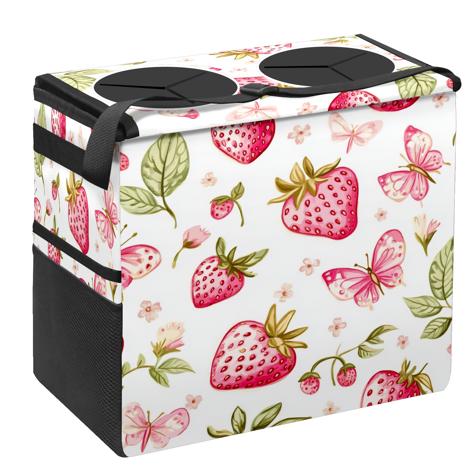 Car Trash Can with Lid, Portable Hanging Automotive Garbage Bin for Vehicles, Leakproof Waste Bag Container for SUV Truck Van Interior Auto Travel Road Trips(Pink Strawberries And Butterflies)
