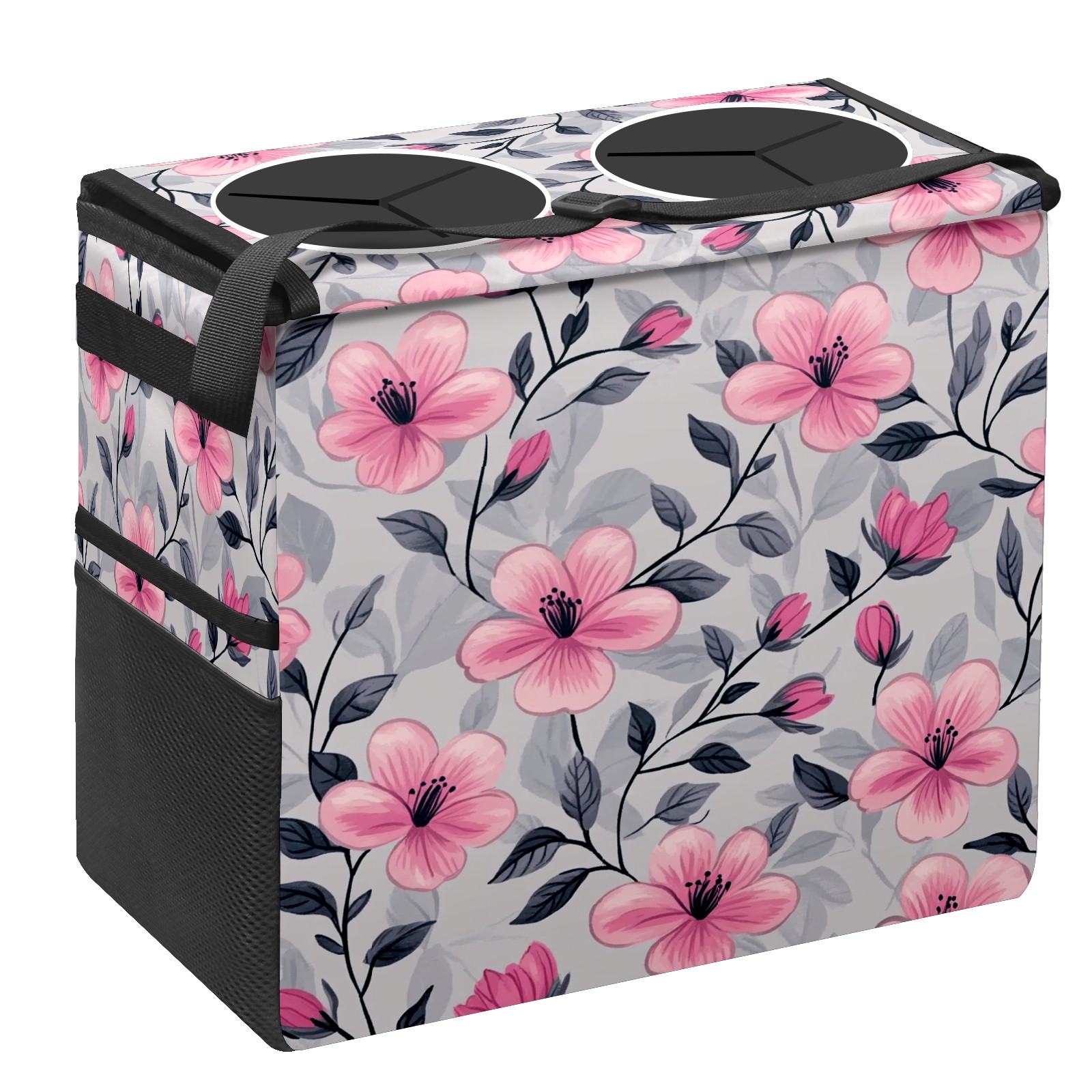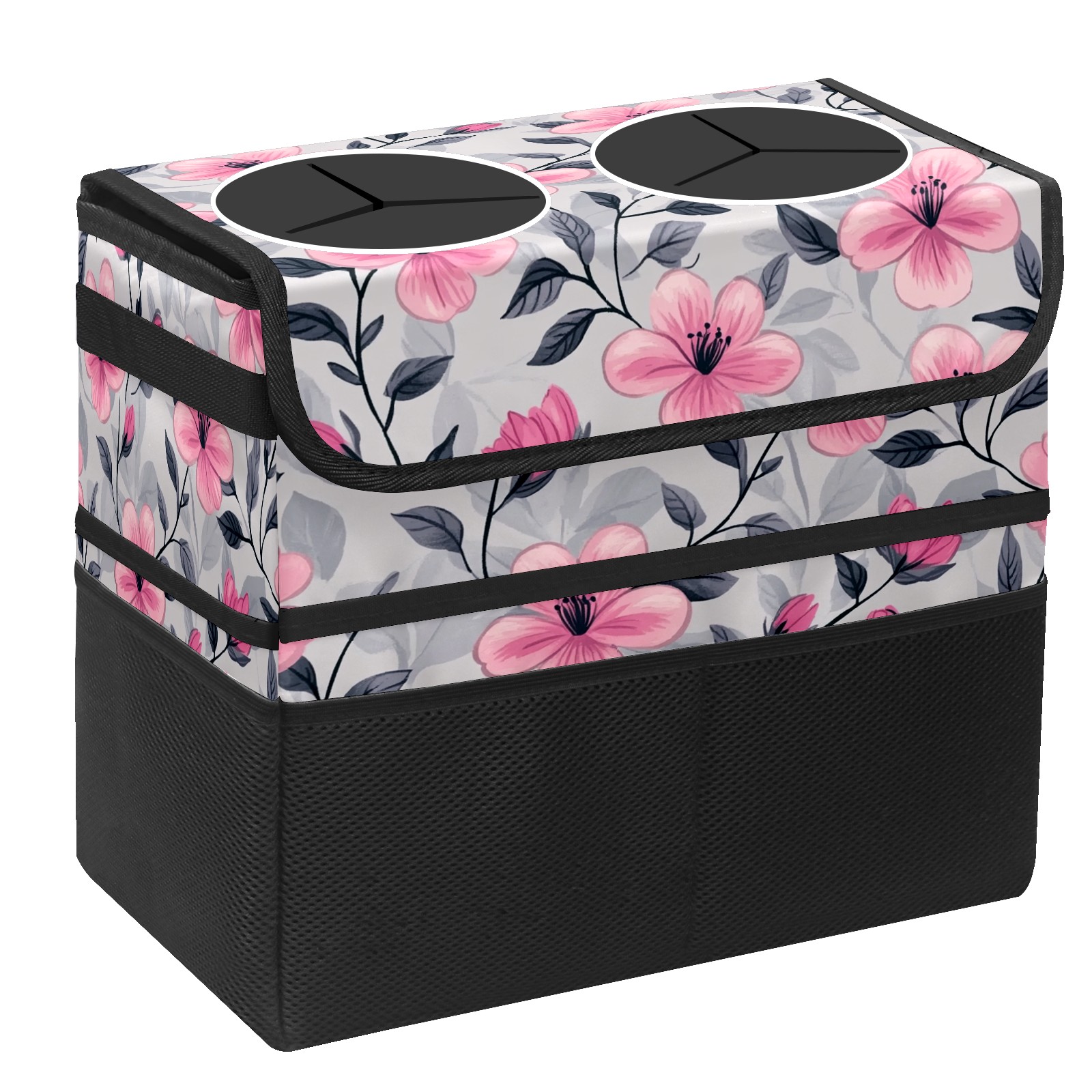 Car Trash Can with Lid, Portable Hanging Automotive Garbage Bin for Vehicles, Leakproof Waste Bag Container for SUV Truck Van Interior Auto Travel Road Trips(Pink Flowers And Leaves)