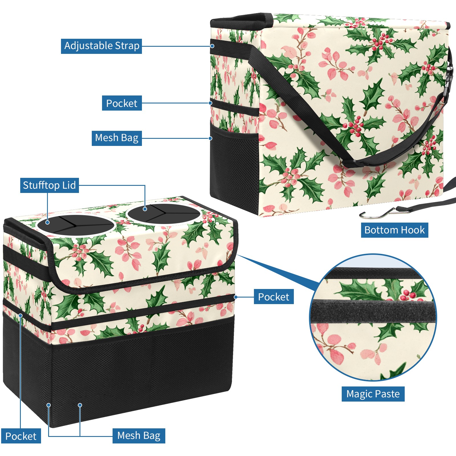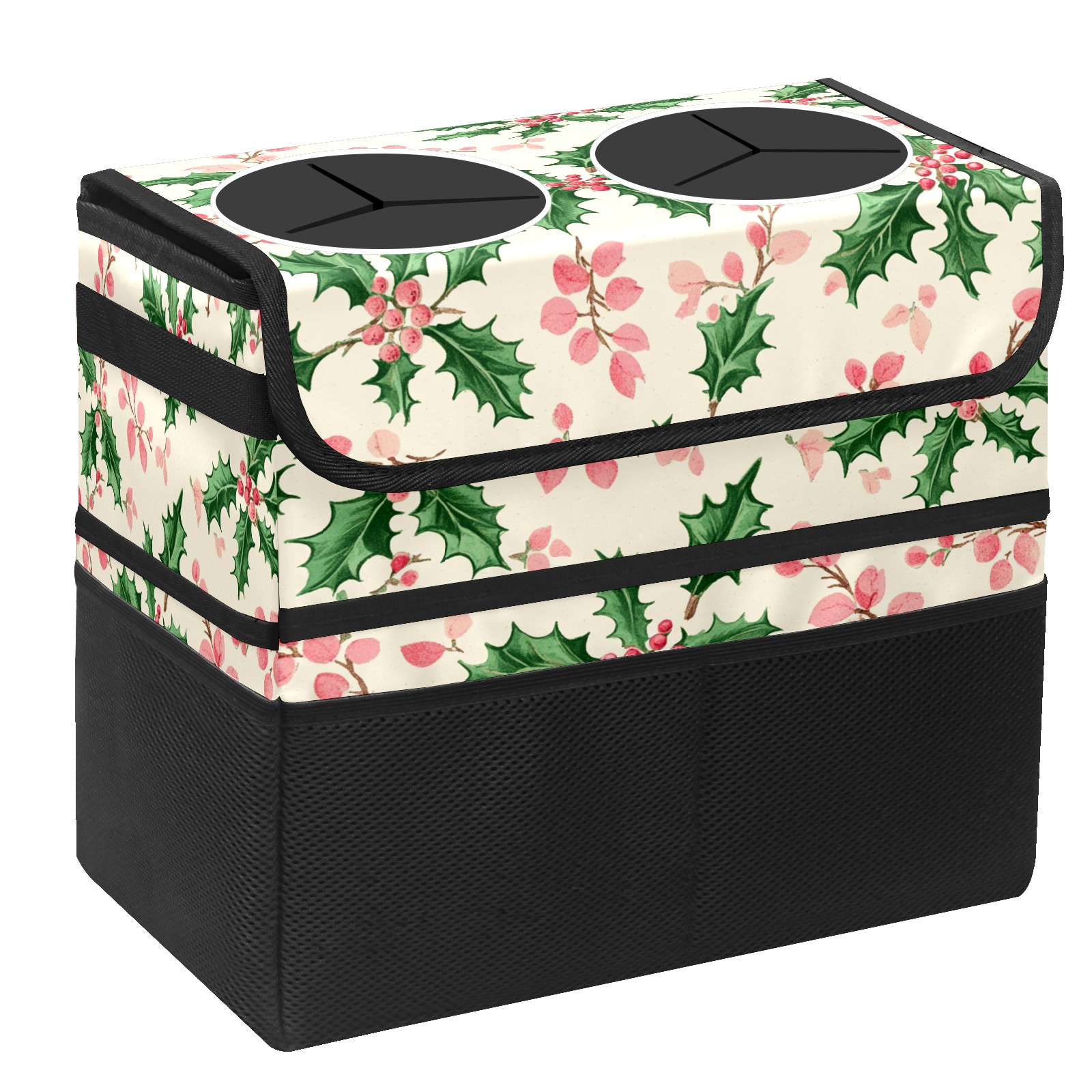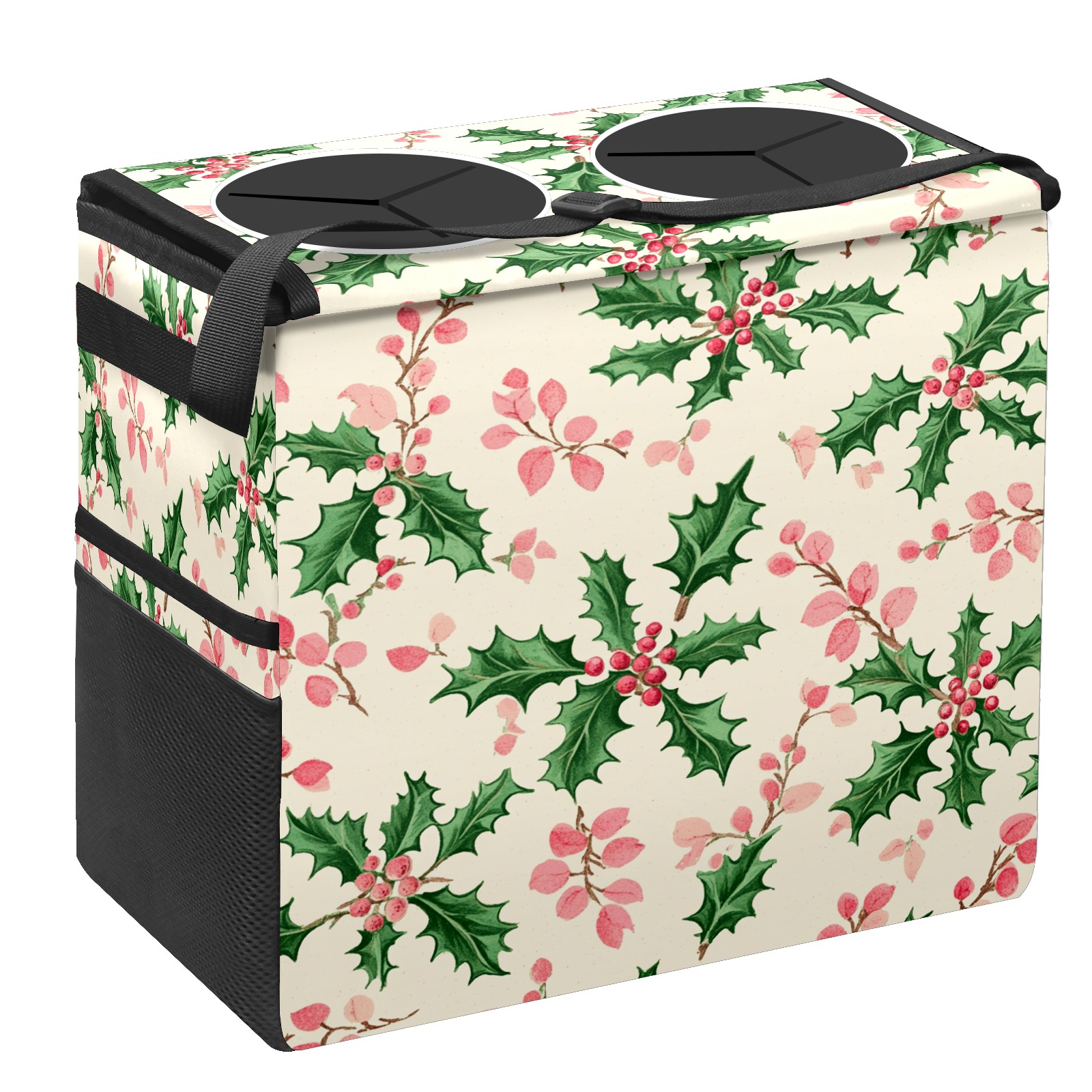 Car Trash Can with Lid, Portable Hanging Automotive Garbage Bin for Vehicles, Leakproof Waste Bag Container for SUV Truck Van Interior Auto Travel Road Trips(Holly Leaves)