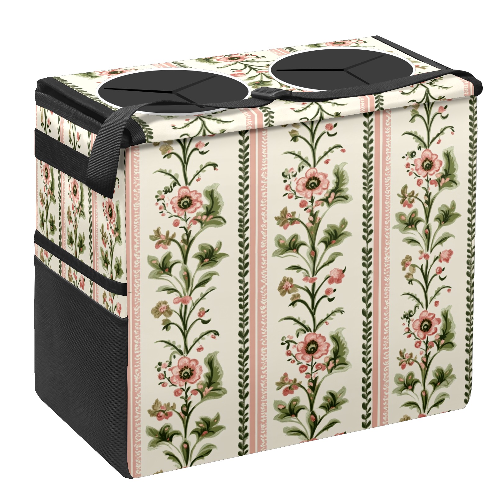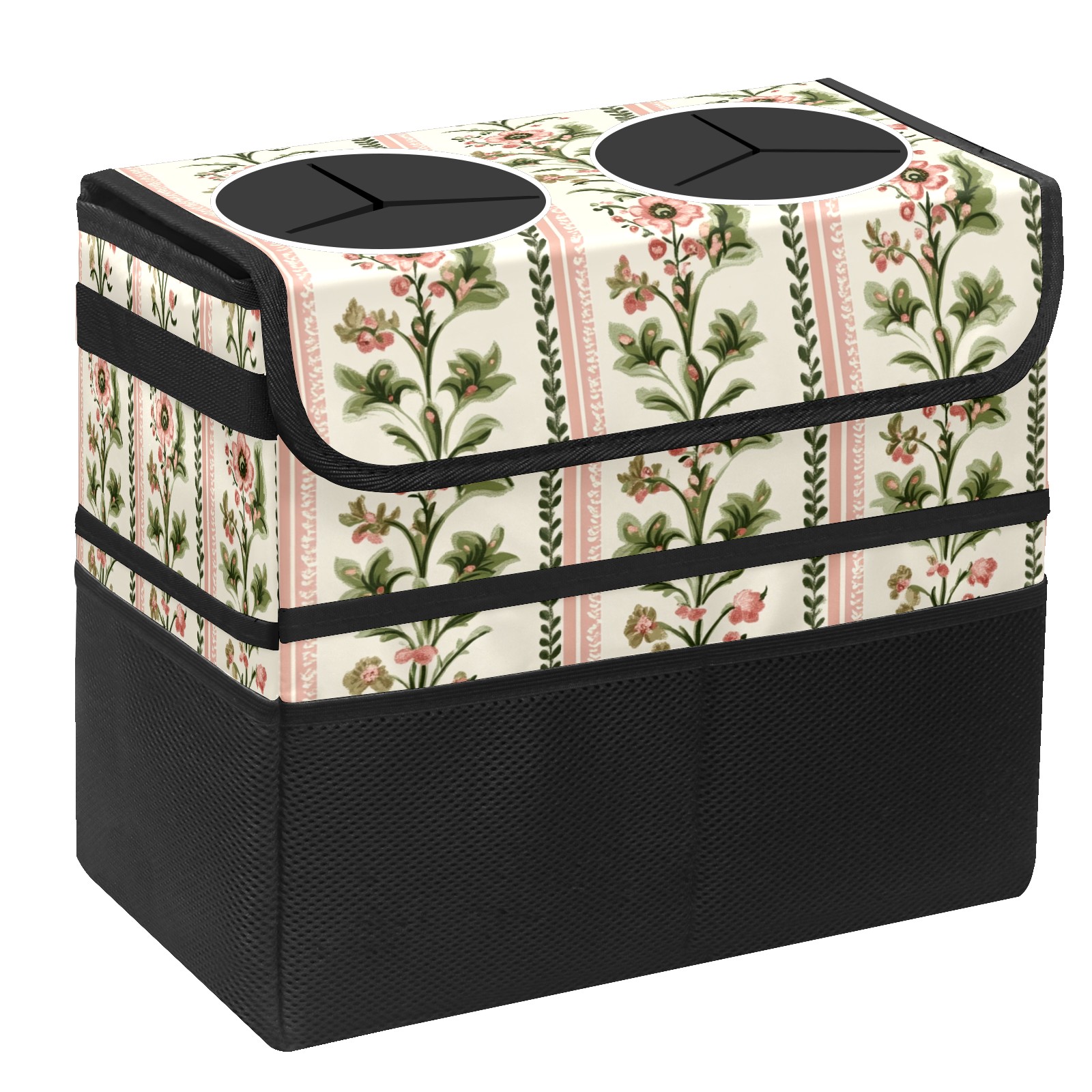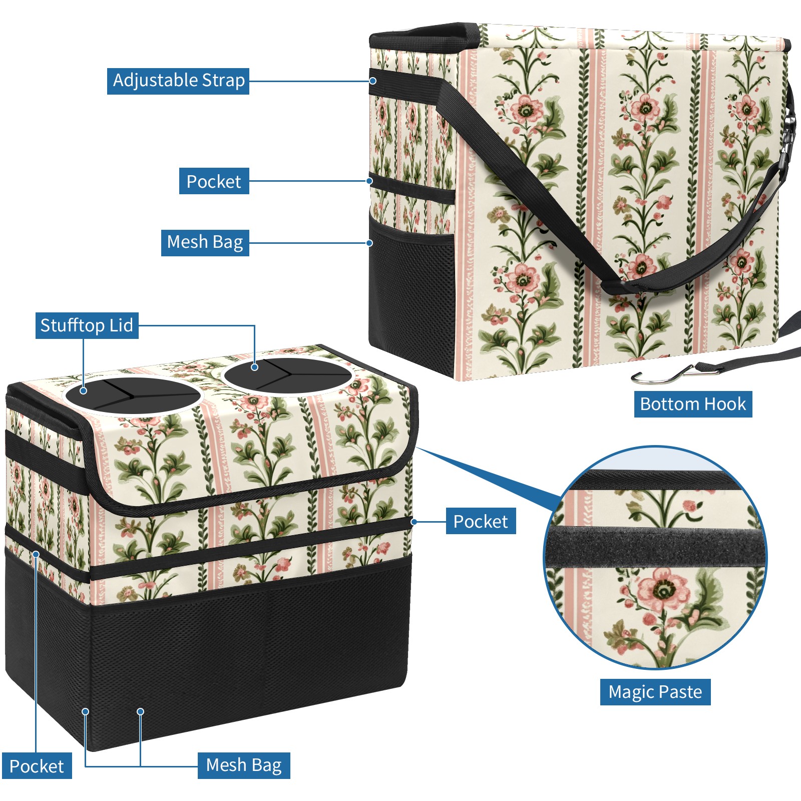 Car Trash Can with Lid, Portable Hanging Automotive Garbage Bin for Vehicles, Leakproof Waste Bag Container for SUV Truck Van Interior Auto Travel Road Trips(Pink And Green Flowers)