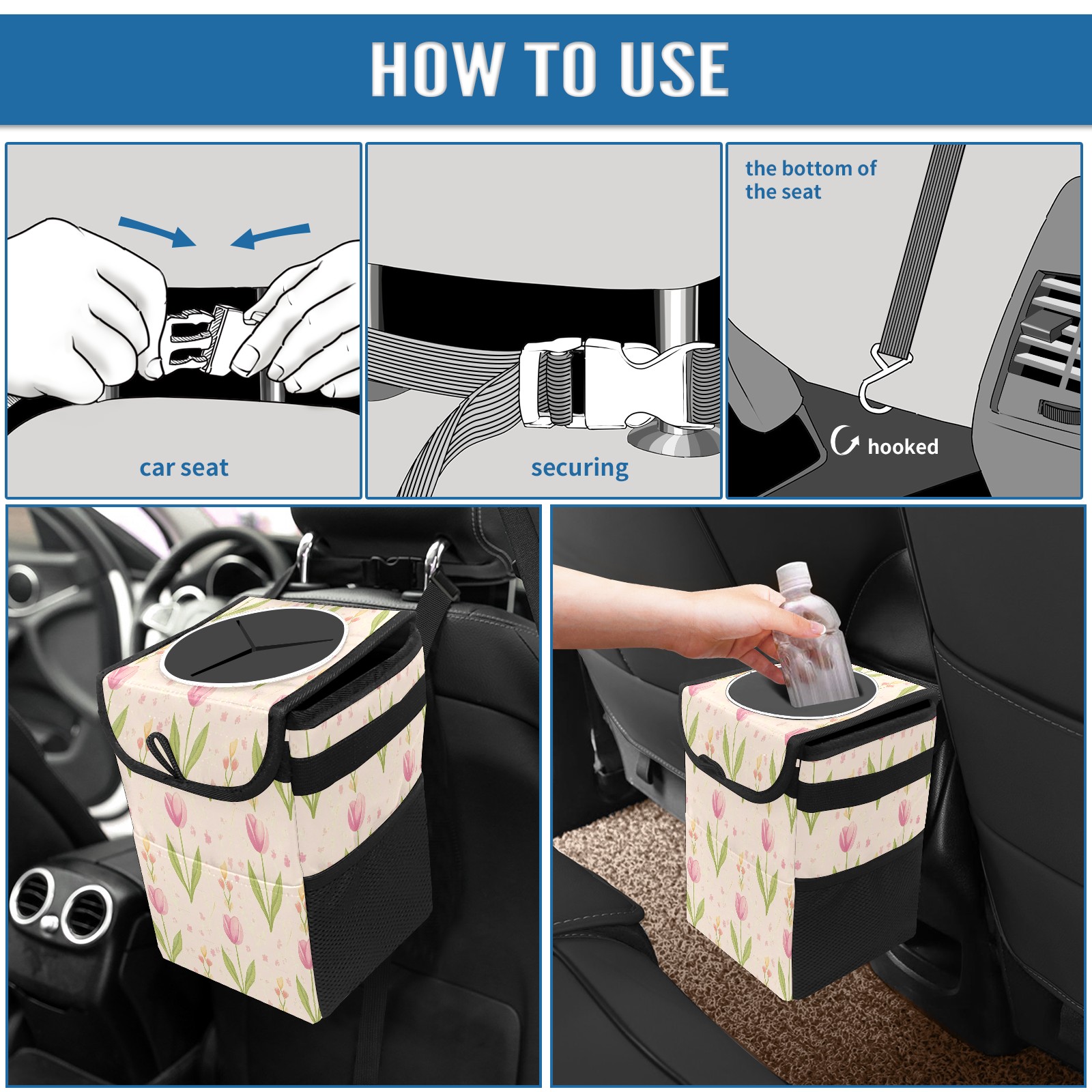 <p><b>Keep Your Car Clean &amp; Organized</b></p> <p>Tired of car clutter? Our durable car trash can is the perfect solution. This compact, leak-proof bin fits perfectly in cup holders, door pockets, or between seats.</p> <p>Ideal for commutes, road trips, and school runs, it’s a must-have car accessory. Use it as a hanging trash bag or a sturdy garbage bin for your SUV, truck, or back seat.</p> <p>Made from tough, easy-clean material, this portable trash container keeps your vehicle spotless. Get your essential car organizer today and enjoy a cleaner ride!</p>