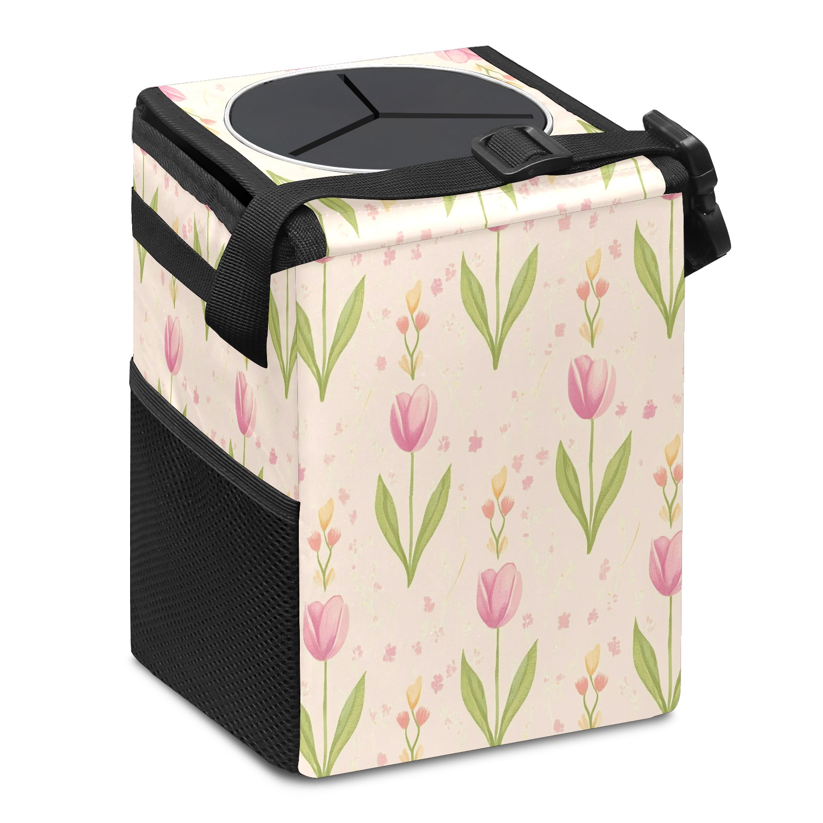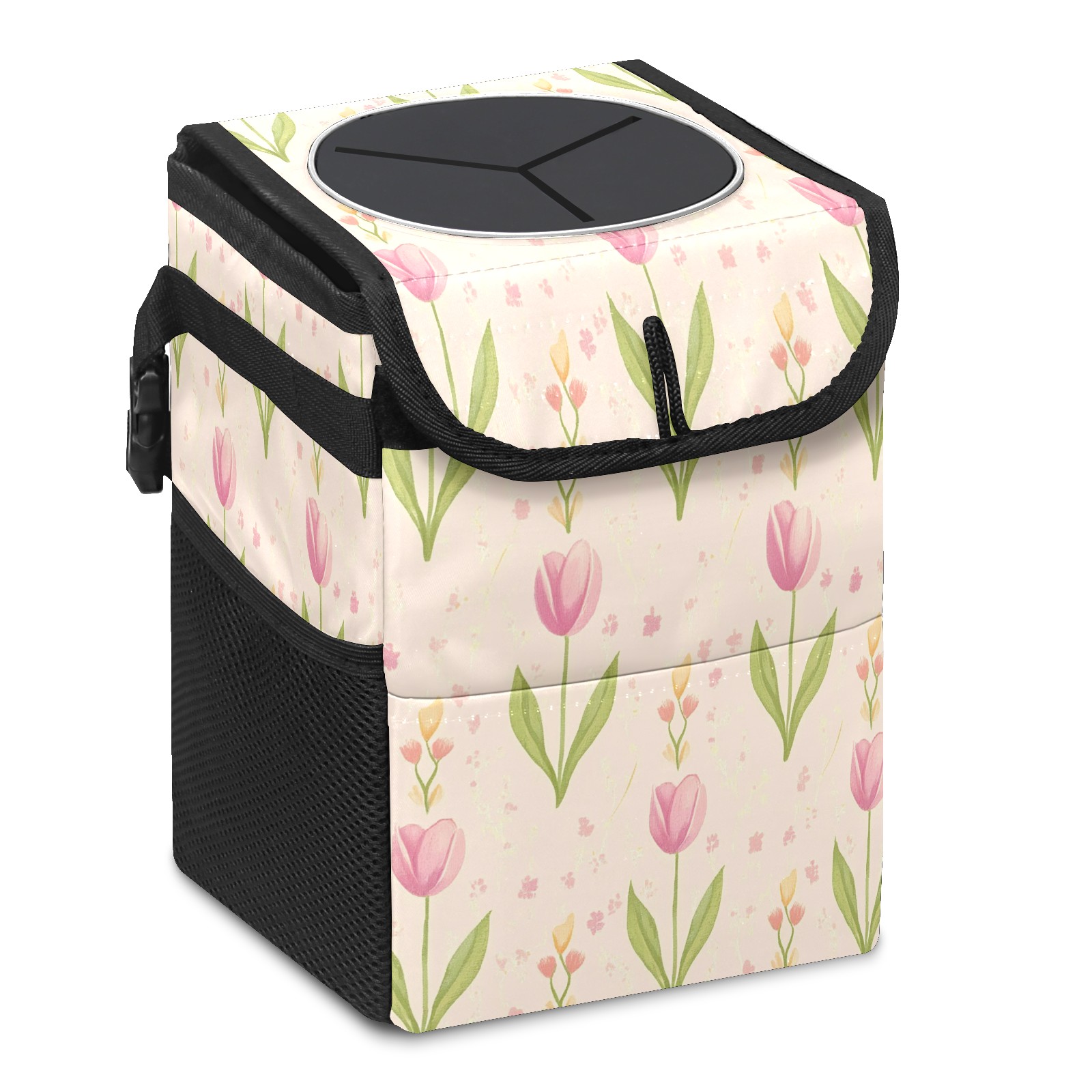 Car Trash Can with Lid, Small Portable Hanging Automotive Garbage Bin for Vehicles, Leakproof Waste Bag Container for SUV Truck Van Interior Auto Travel Road Trips(Shabby Chic Tulip)