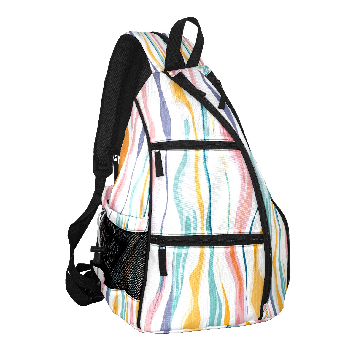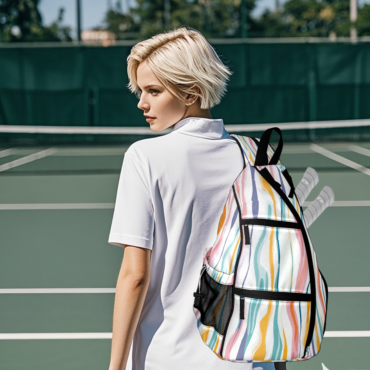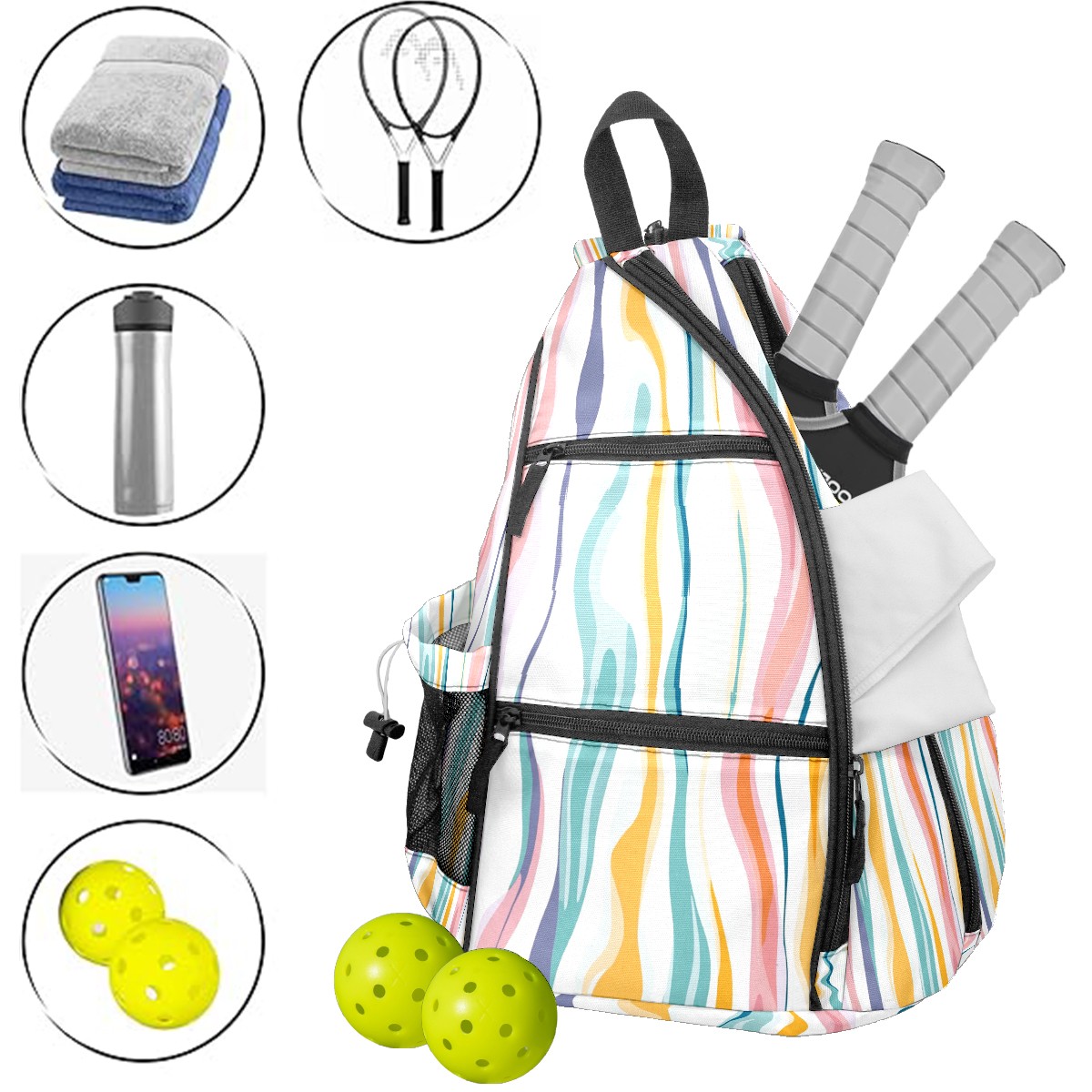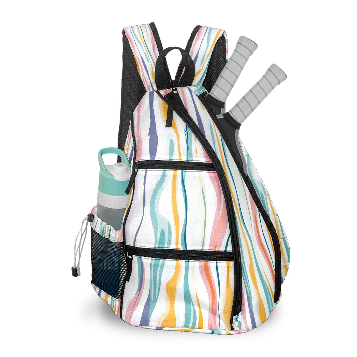 Multifunctional Pickleball Bag,Large Capacity Sports Pickleball Racket Bag, Water Bottle Holder and Fence Hook,Suitable for Both Men Women Colorful Waves 1