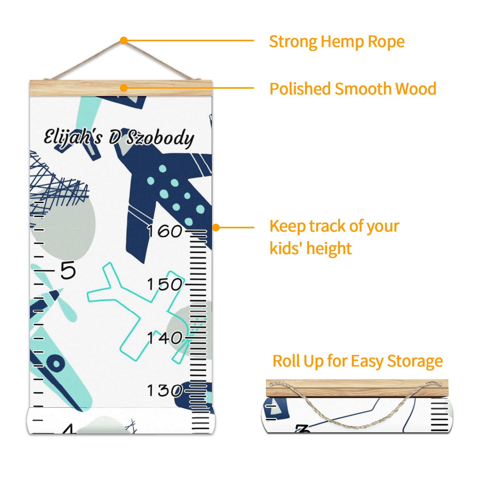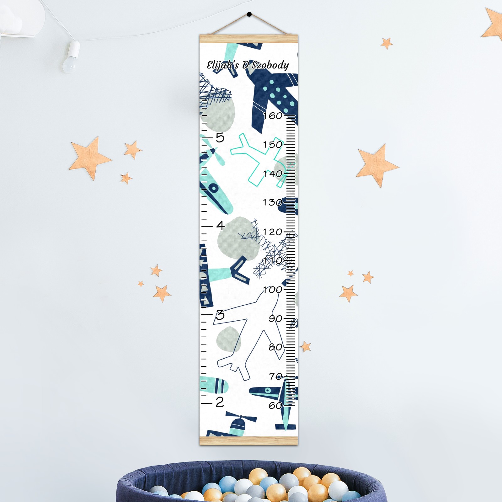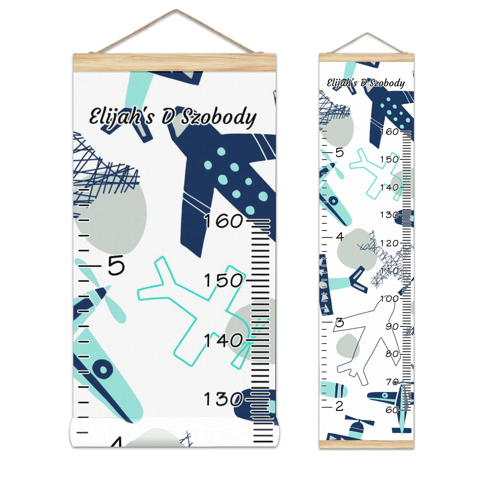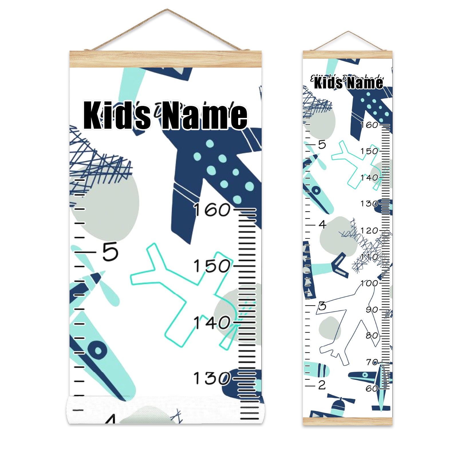 Personalized Kids Name Growth Chart Ruler for Wall Wood Frame Canvas Height Measure Chart 13.4x56 in Hanging Growth Chart Airplane Collection1.4 Boys Girls Room Decor