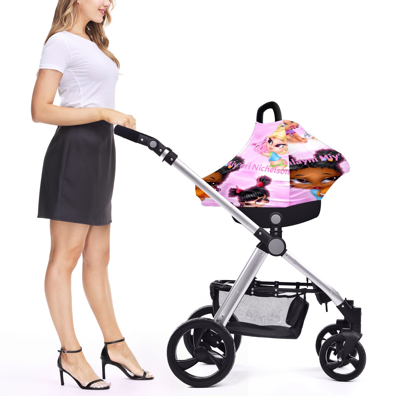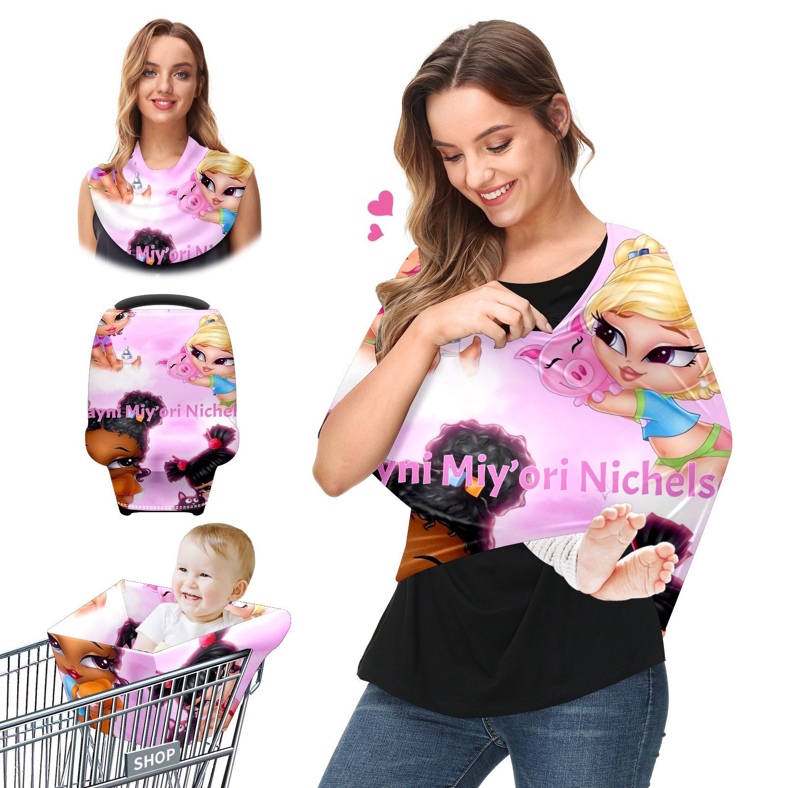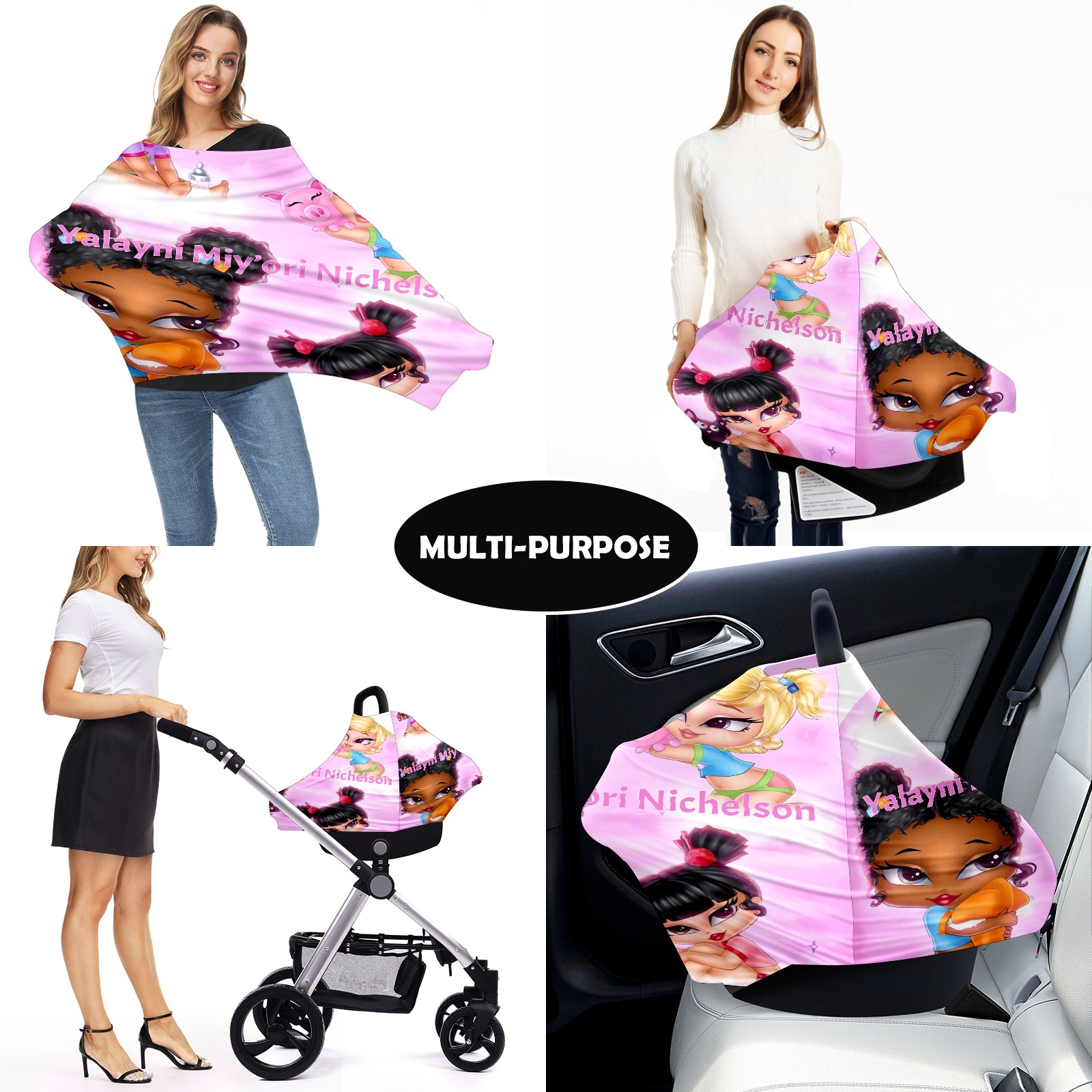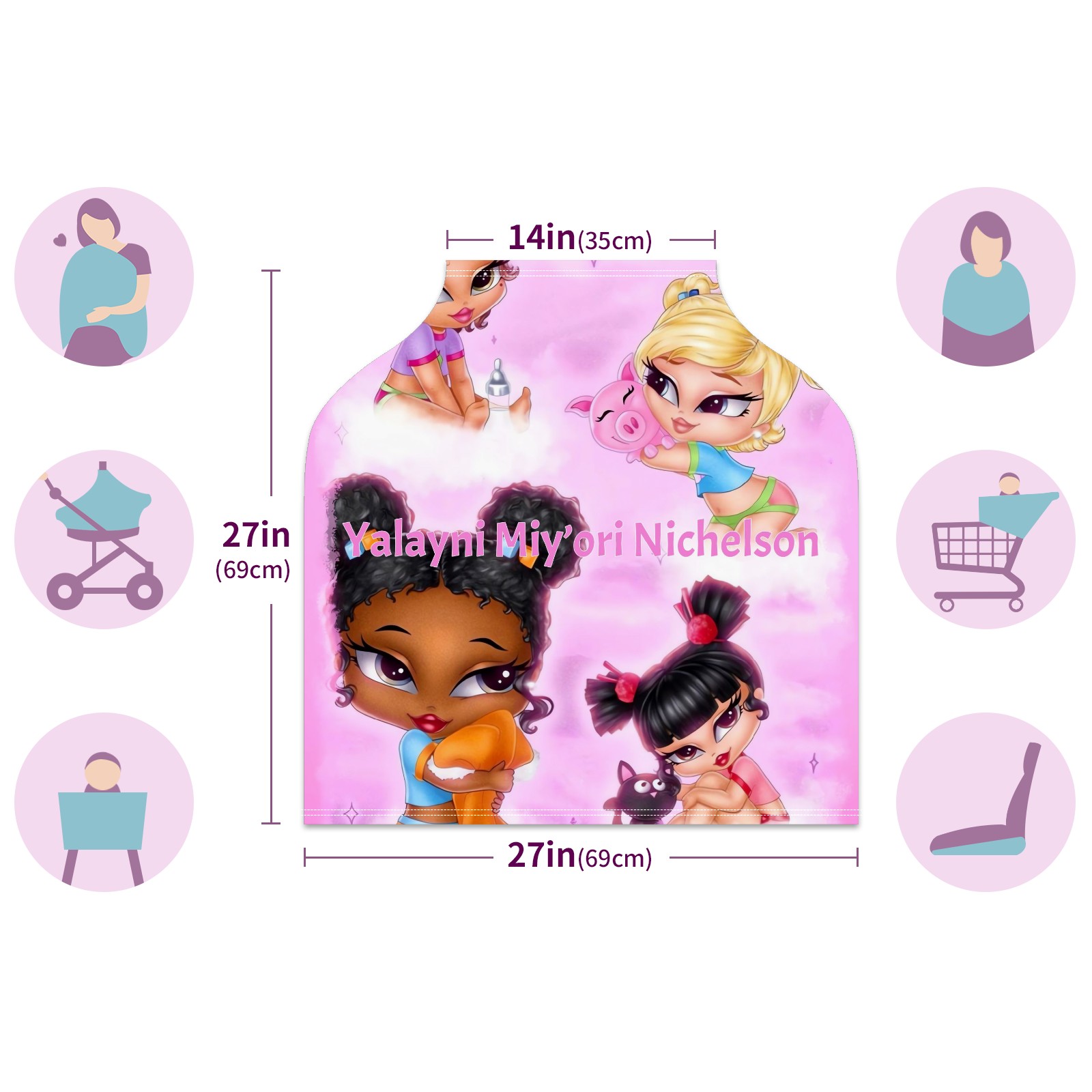 Baby Car Seat Stroller Covers Custom Name 花体字标图案结合39-11 Nursing Cover Breastfeeding Scarf Soft Breathable Stretchy Coverage Carseat Canopy Cover for Boys and Girls Multi Use