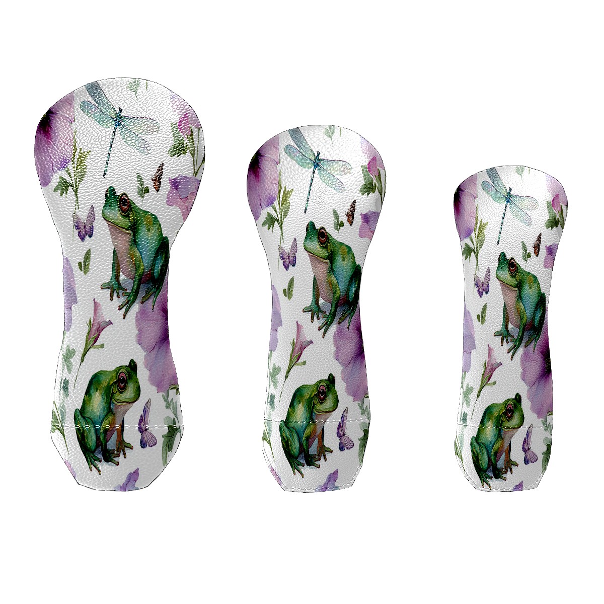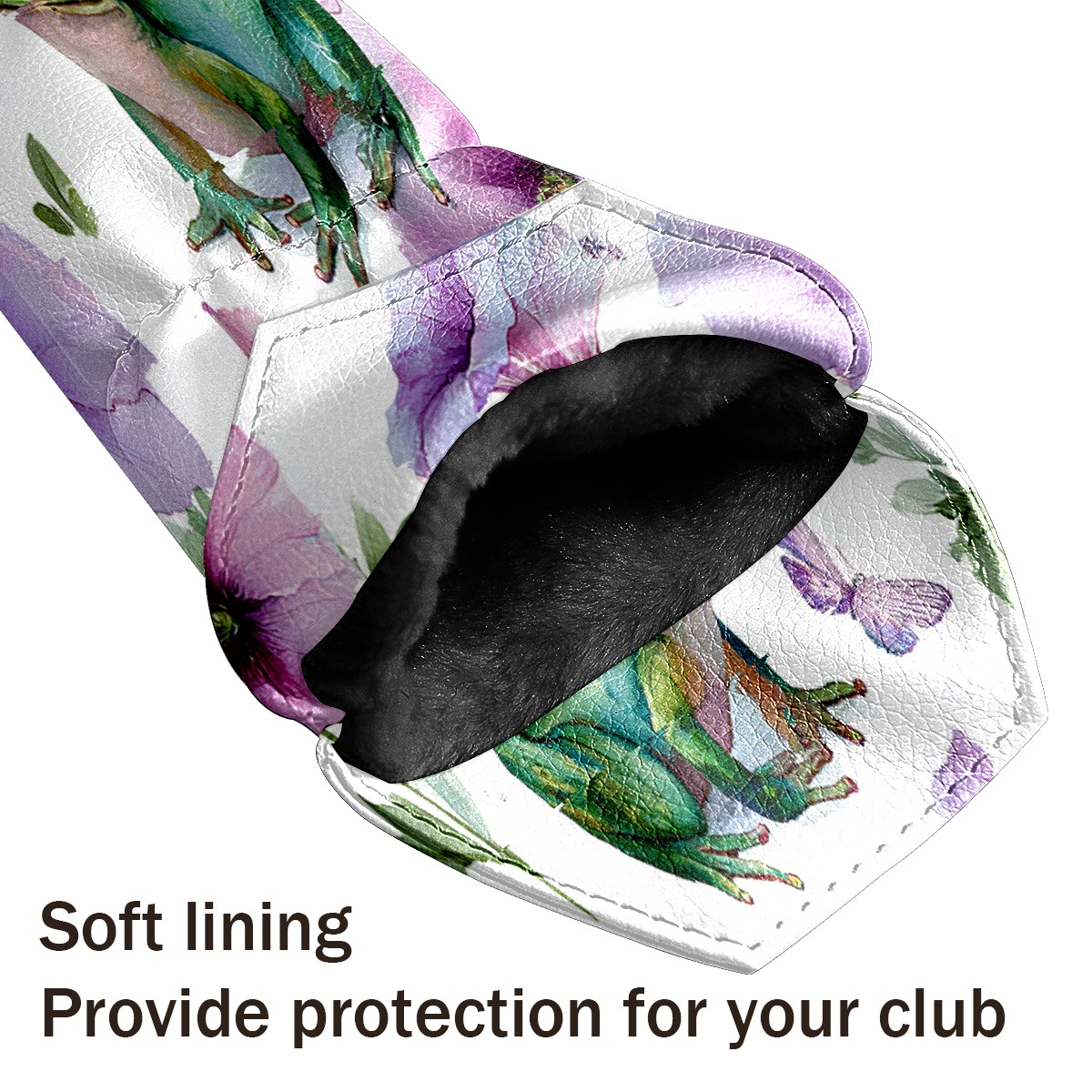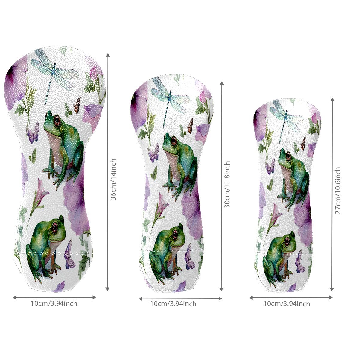Golf Club Head Cover Waterproof Leather for Driver & Fairway Wood, Driver Headcovers, Golf Accessories for Men Women, Anti-Scratch, Golf Gift for Golfers, 1/3/5 Wood Cover Gentle Frog Purple