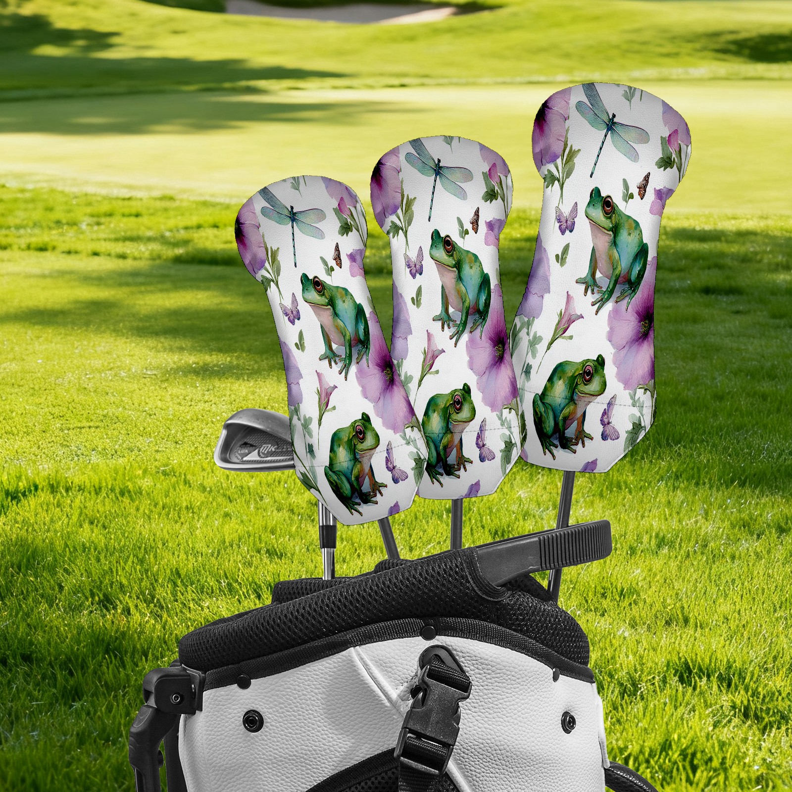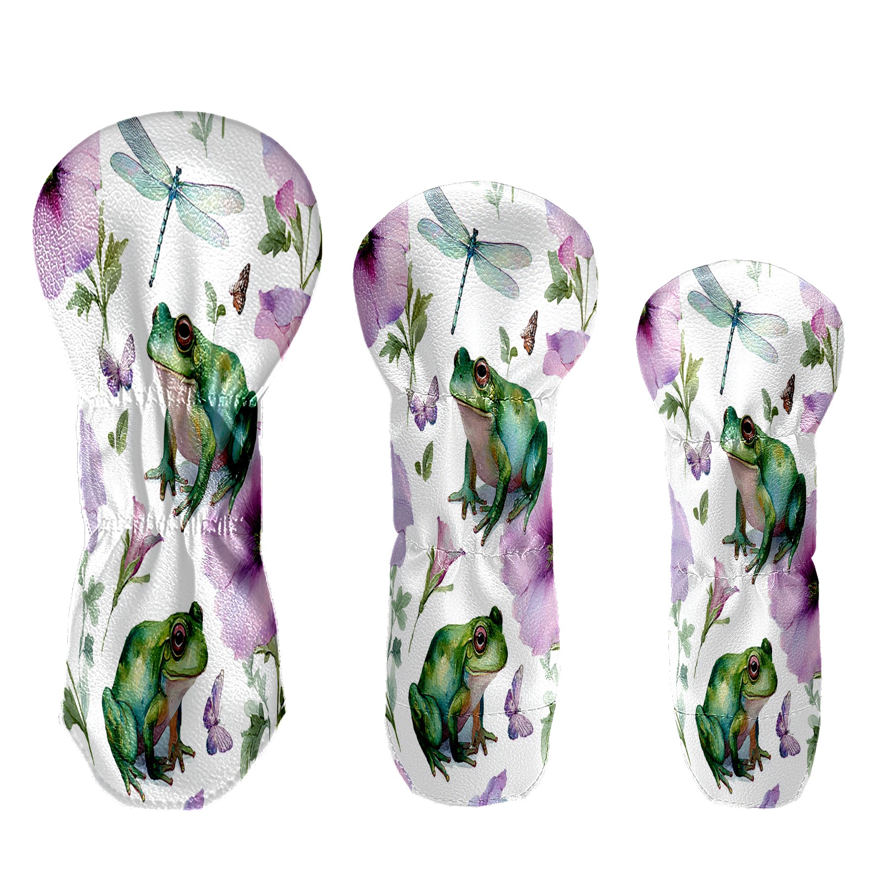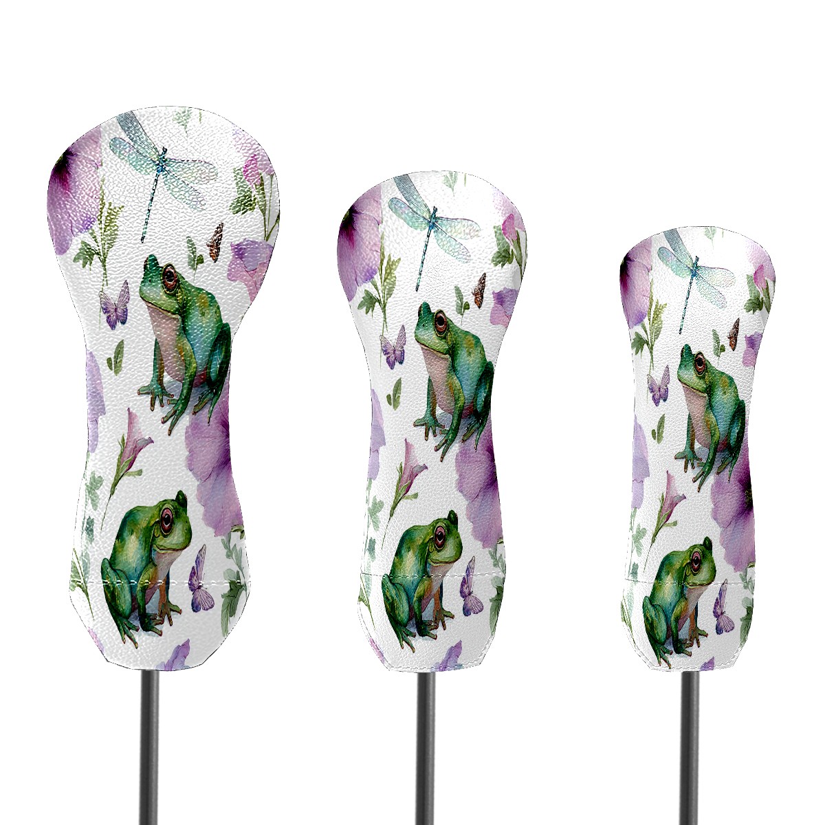 Golf Club Head Cover Waterproof Leather for Driver & Fairway Wood, Driver Headcovers, Golf Accessories for Men Women, Anti-Scratch, Golf Gift for Golfers, 1/3/5 Wood Cover Gentle Frog Purple