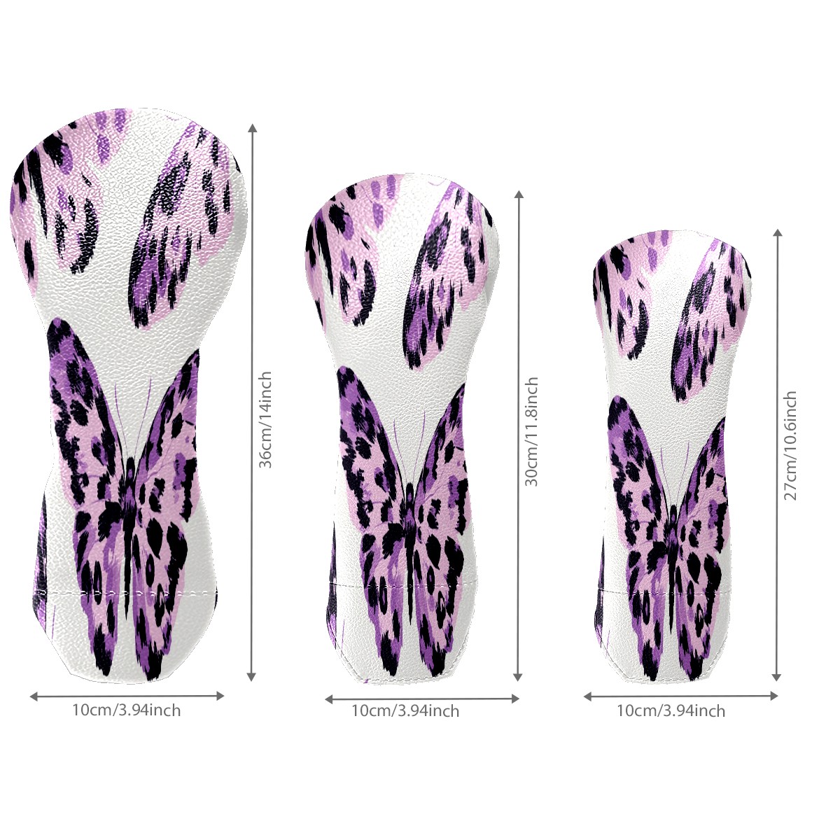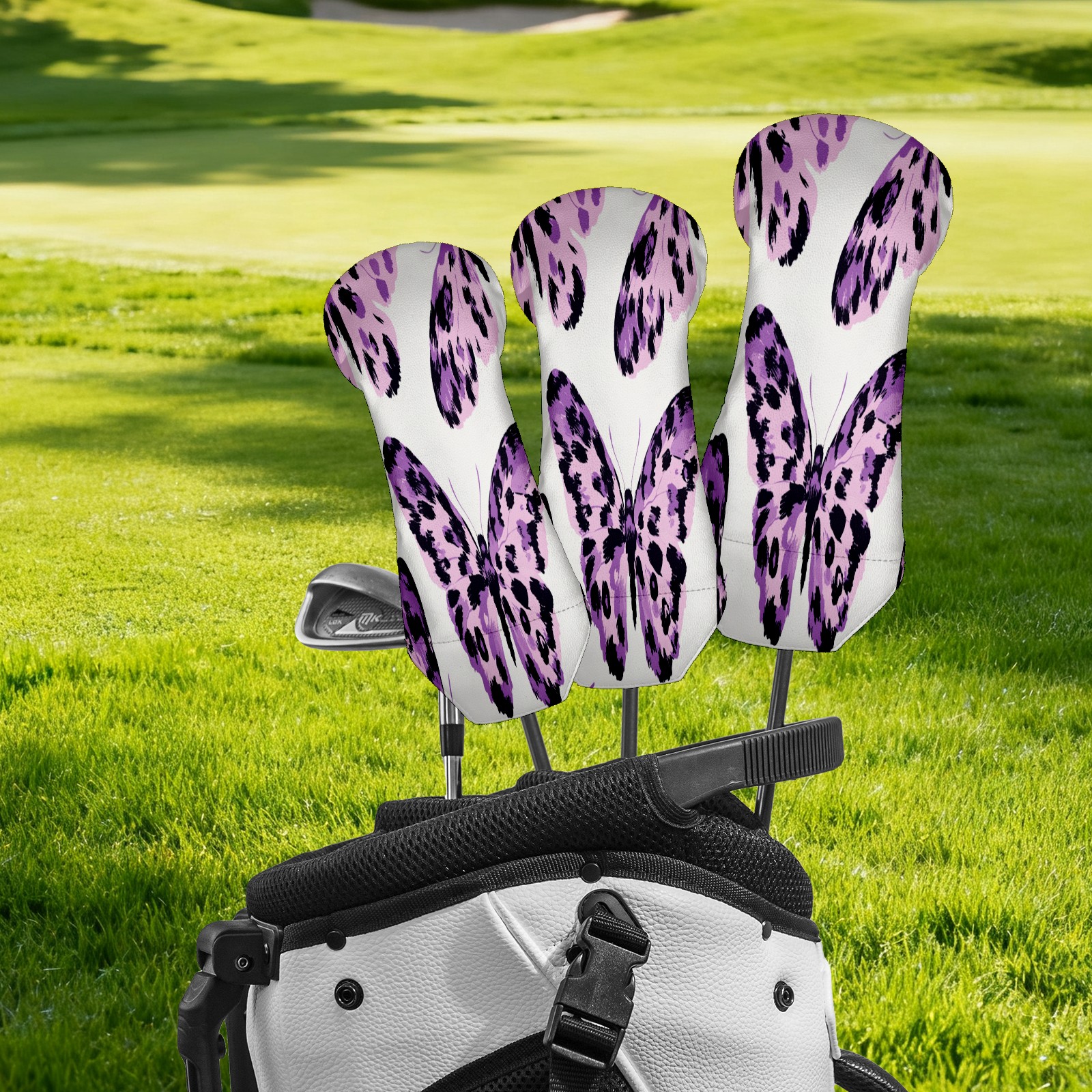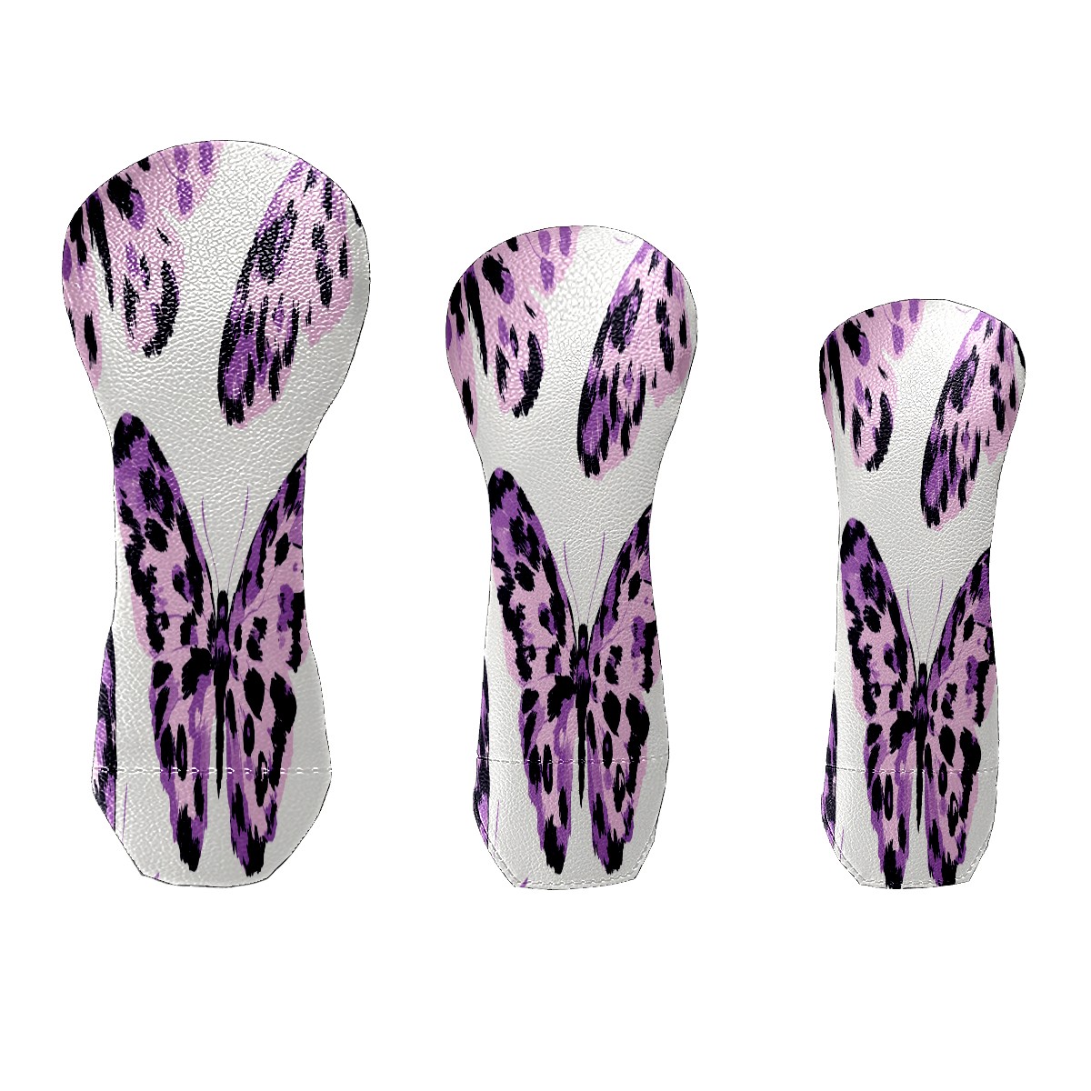 Golf Club Head Cover Waterproof Leather for Driver & Fairway Wood, Driver Headcovers, Golf Accessories for Men Women, Anti-Scratch, Golf Gift for Golfers, 1/3/5 Wood Cover Purple Butterfly Pattern