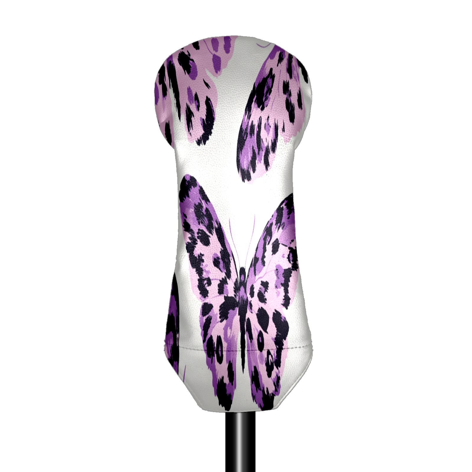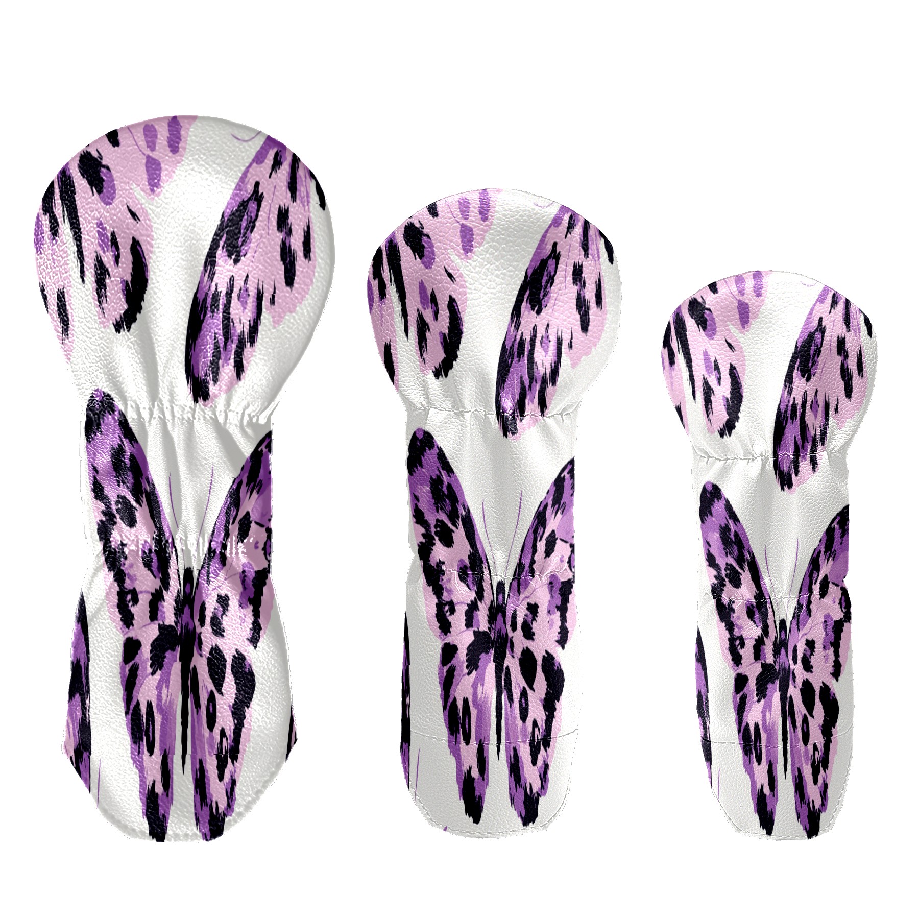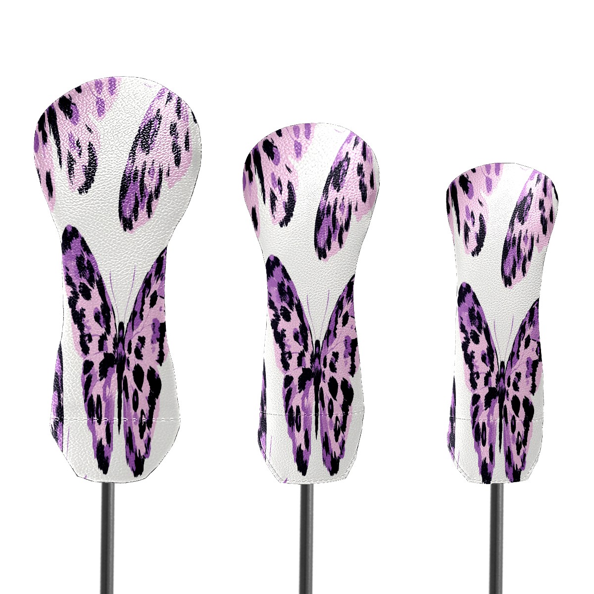 Golf Club Head Cover Waterproof Leather for Driver & Fairway Wood, Driver Headcovers, Golf Accessories for Men Women, Anti-Scratch, Golf Gift for Golfers, 1/3/5 Wood Cover Purple Butterfly Pattern