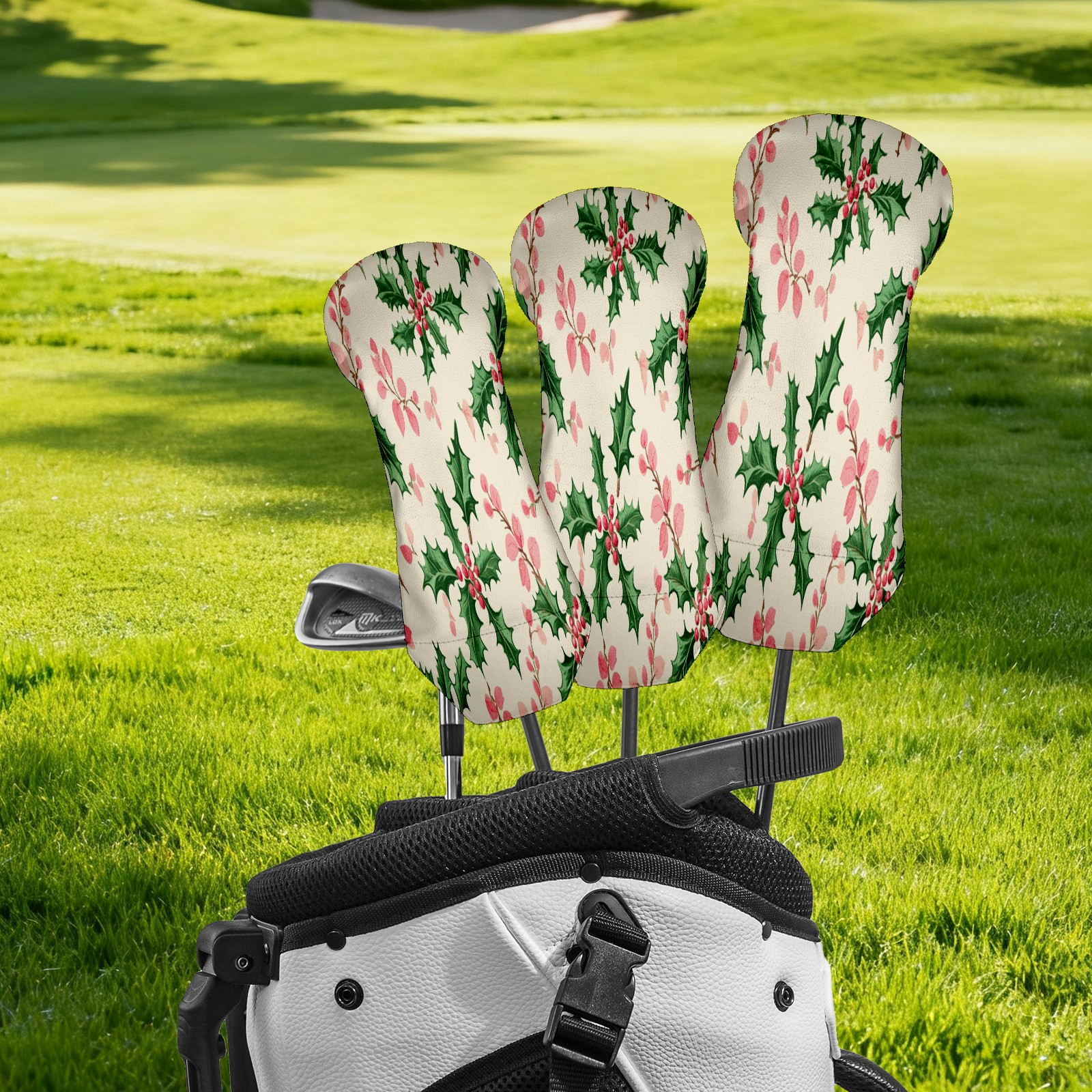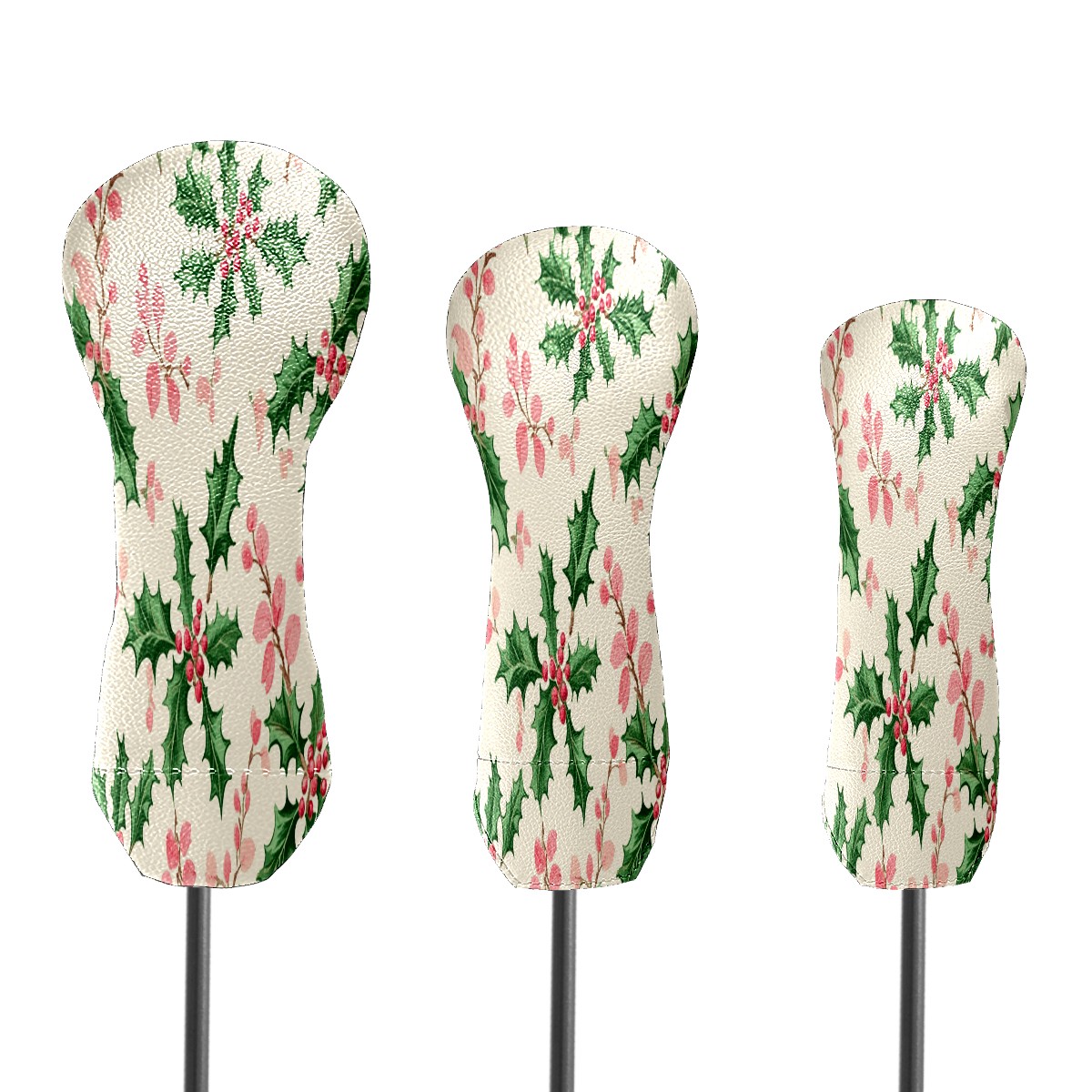 Golf Club Head Cover Waterproof Leather for Driver & Fairway Wood, Driver Headcovers, Golf Accessories for Men Women, Anti-Scratch, Golf Gift for Golfers, 1/3/5 Wood Cover Holly Leaves