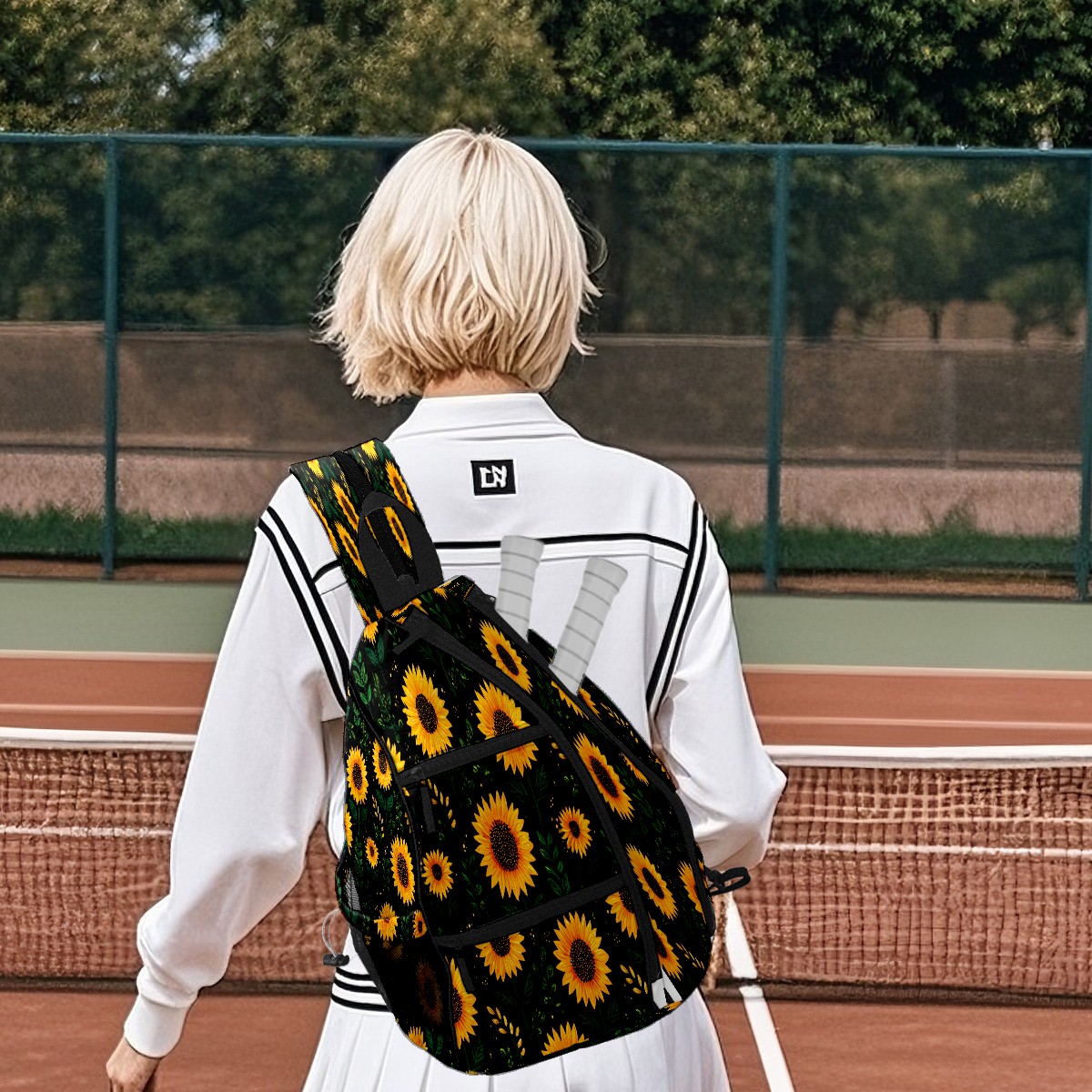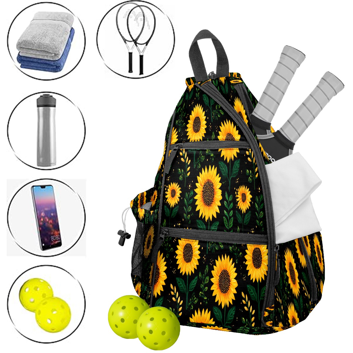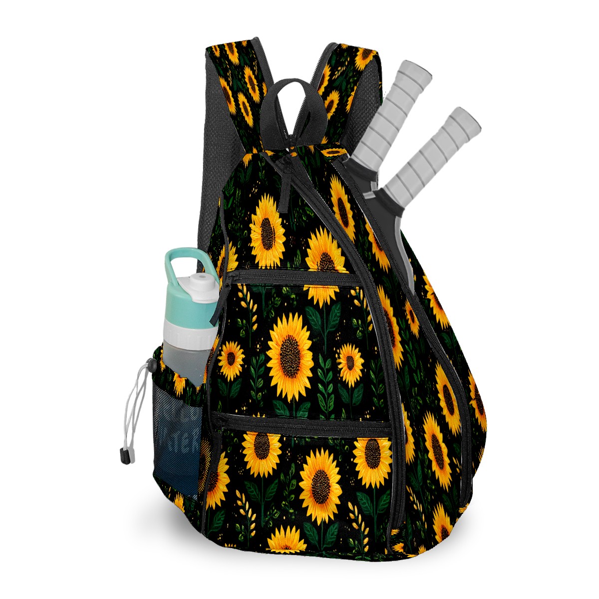 Counullo Pickleball Bag for Women & Men – Lightweight Sports Backpack with Paddle Compartments, Dual Carry Modes, Detachable Zippered Strap, Yellow Sunflowers, Perfect Gift for Players
