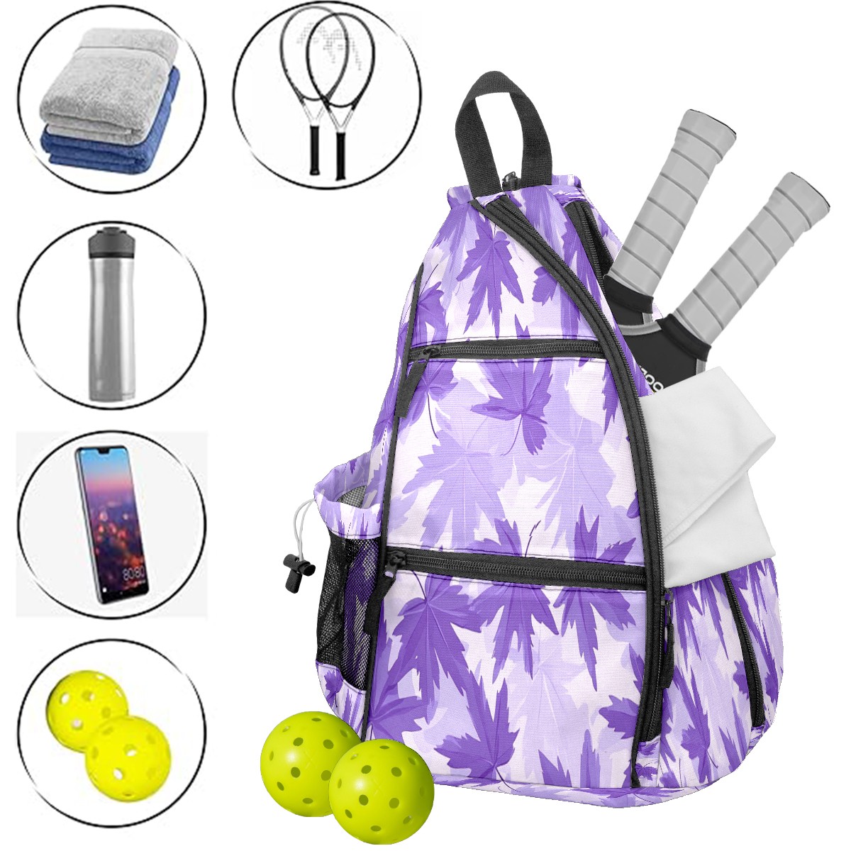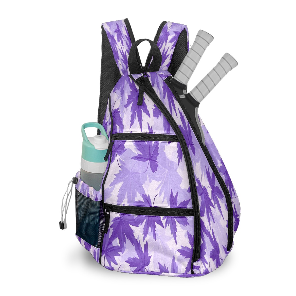 Counullo Pickleball Bag for Women & Men – Lightweight Sports Backpack with Paddle Compartments, Dual Carry Modes, Detachable Zippered Strap, Maple Leaf Purple, Perfect Gift for Players