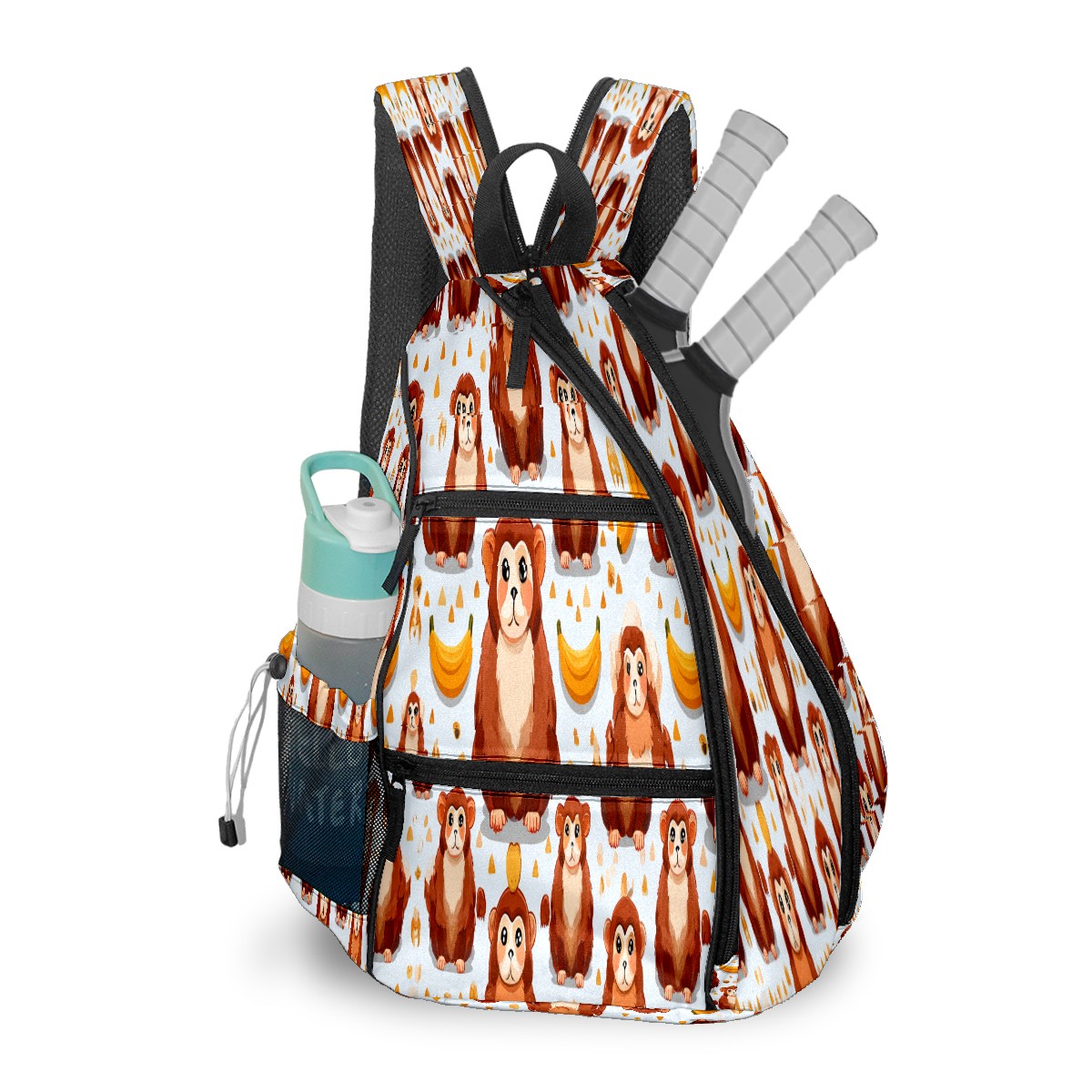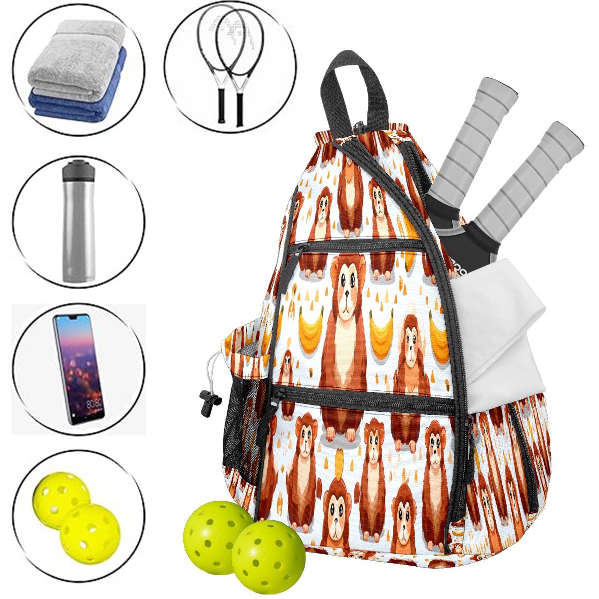Counullo Pickleball Bag for Women & Men – Lightweight Sports Backpack with Paddle Compartments, Dual Carry Modes, Detachable Zippered Strap, Brown Monkeys Pattern, Perfect Gift for Players