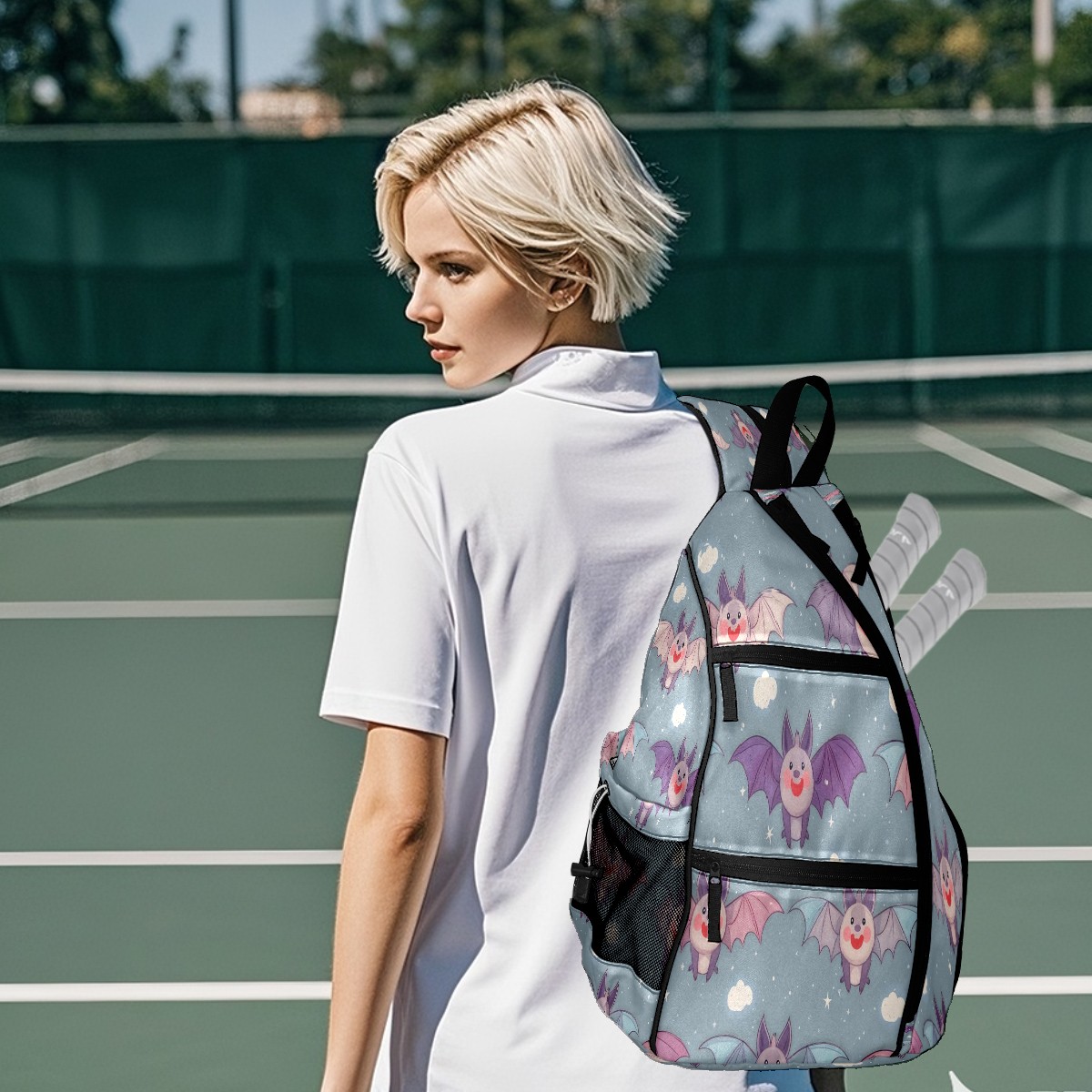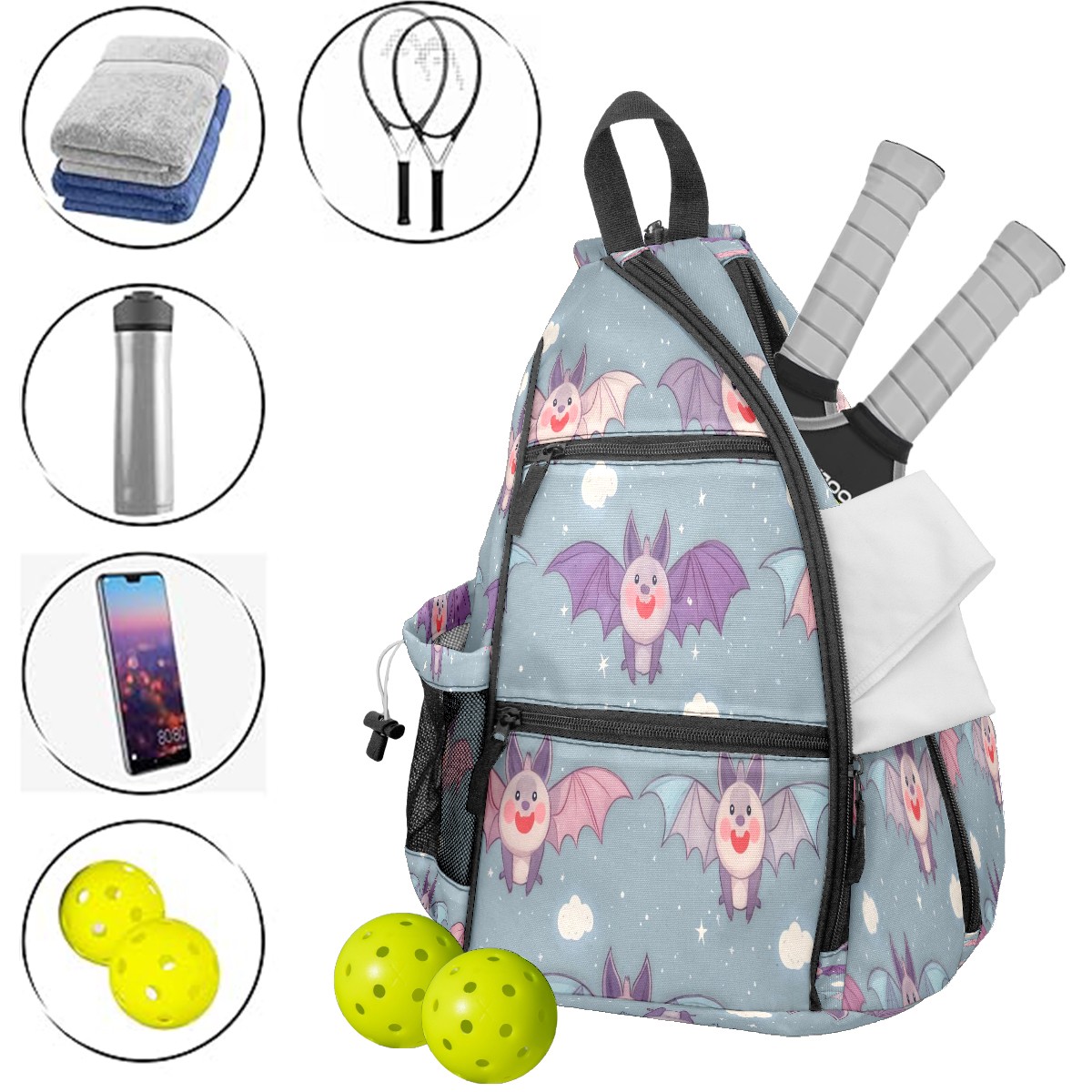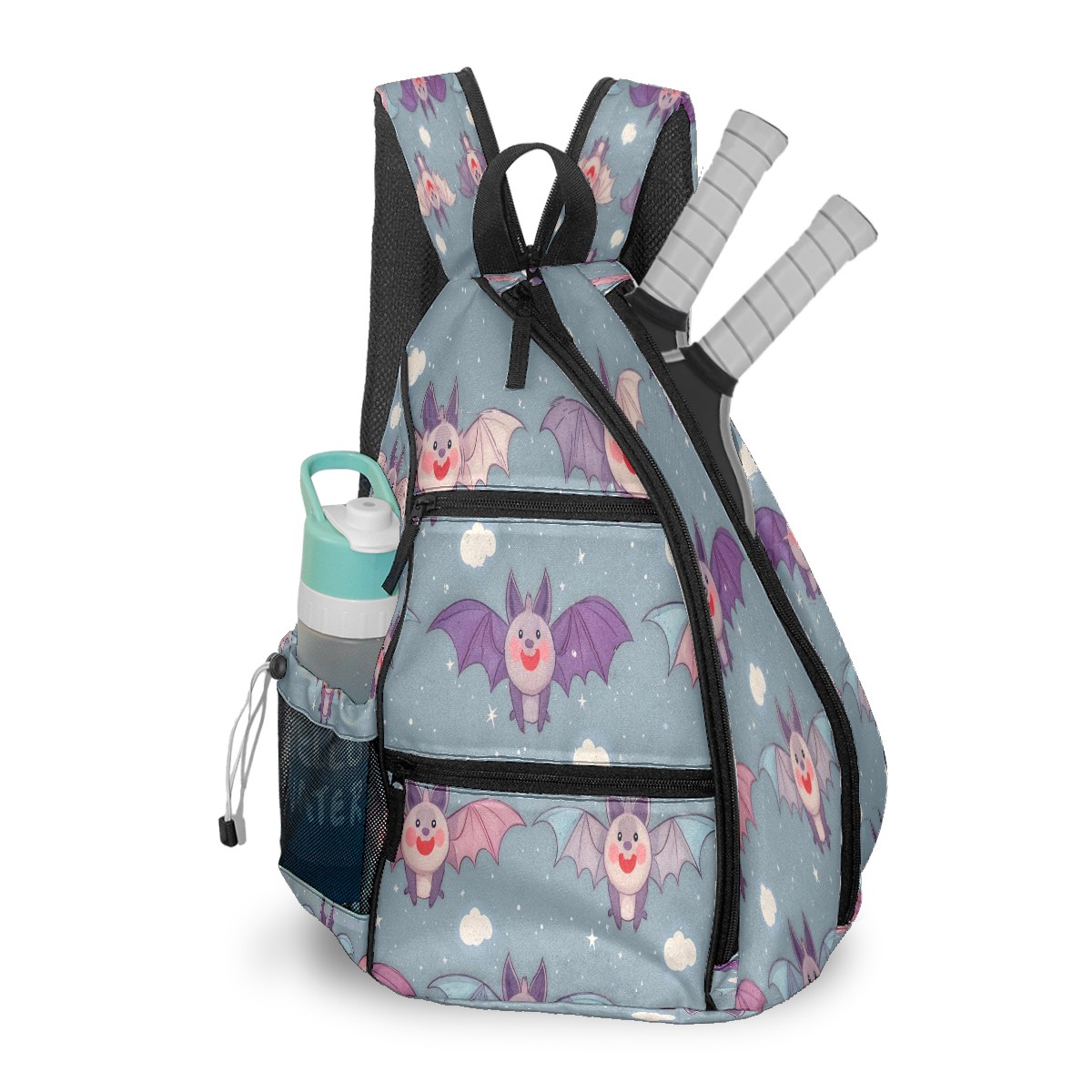 Counullo Pickleball Bag for Women & Men – Lightweight Sports Backpack with Paddle Compartments, Dual Carry Modes, Detachable Zippered Strap, Light Blue Bats, Perfect Gift for Players