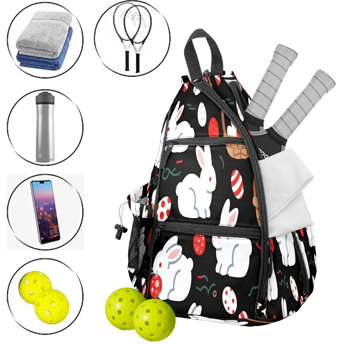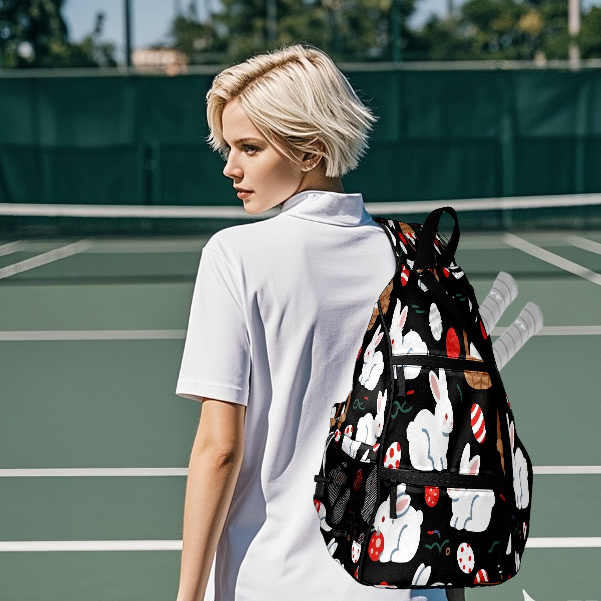 Counullo Pickleball Bag for Women & Men – Lightweight Sports Backpack with Paddle Compartments, Dual Carry Modes, Detachable Zippered Strap, Rabbit Egg Black, Perfect Gift for Players