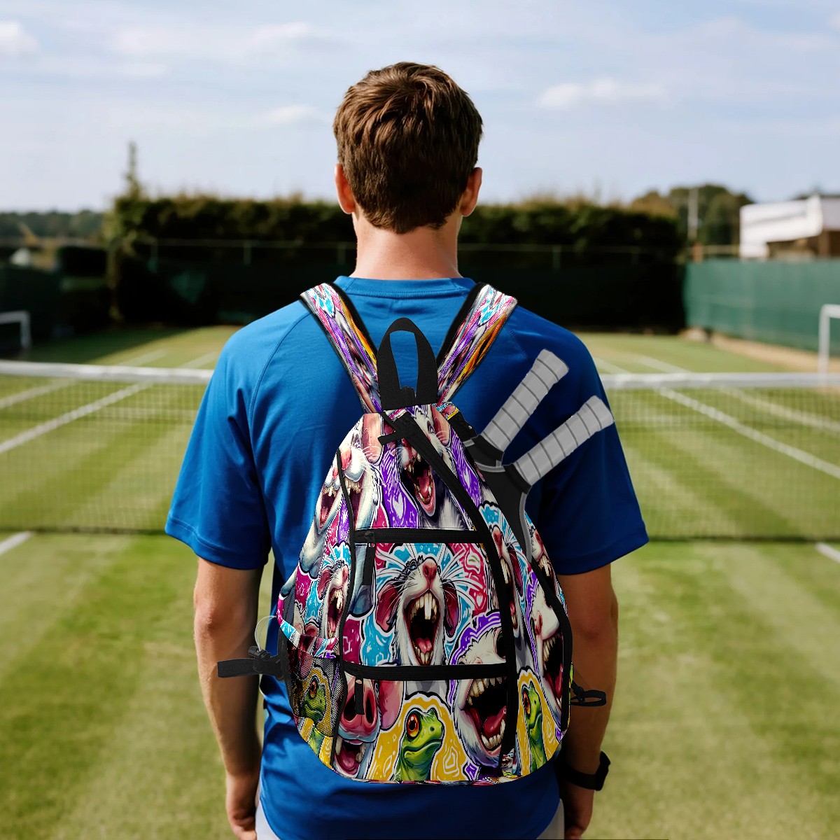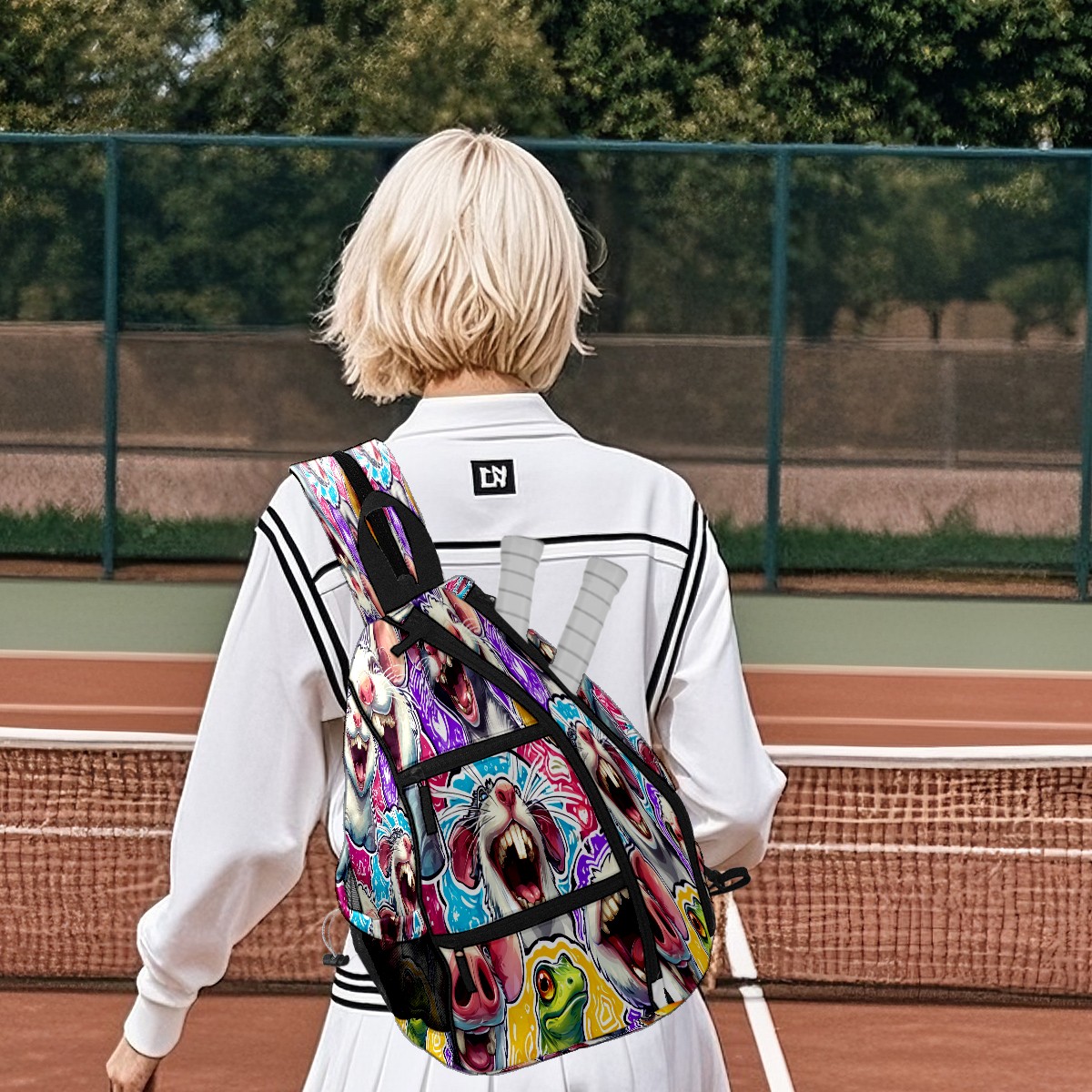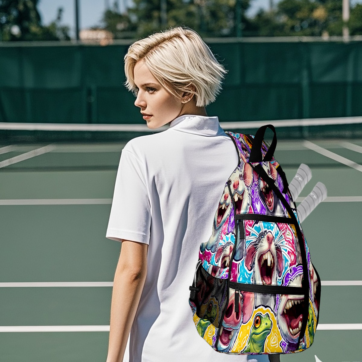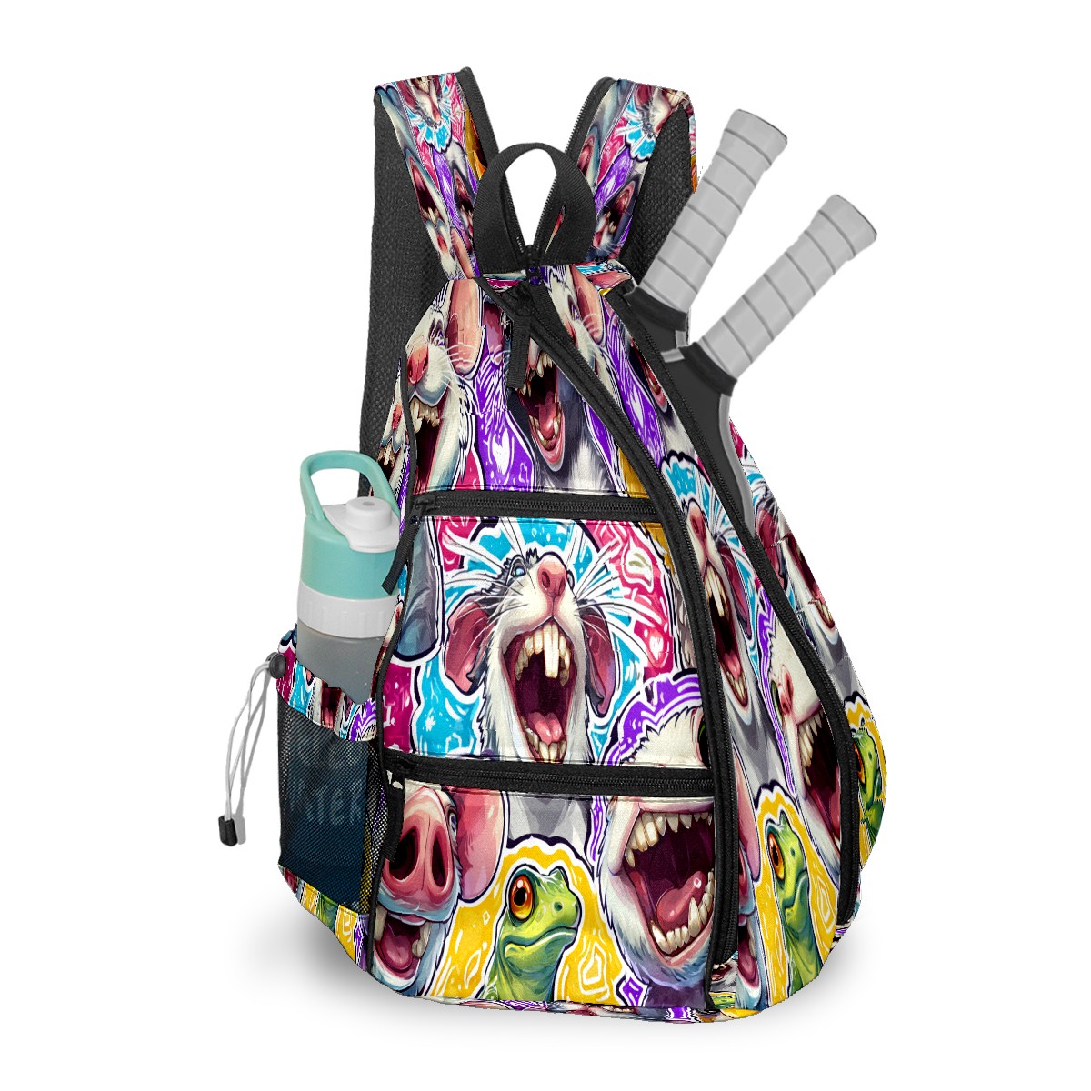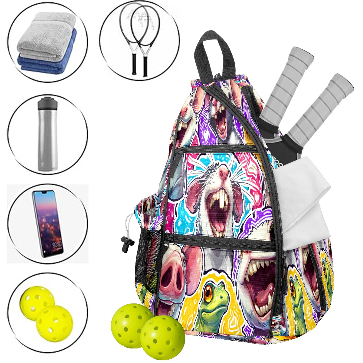 Counullo Pickleball Bag for Women & Men – Lightweight Sports Backpack with Paddle Compartments, Dual Carry Modes, Detachable Zippered Strap, Funny Animal Colorful, Perfect Gift for Players