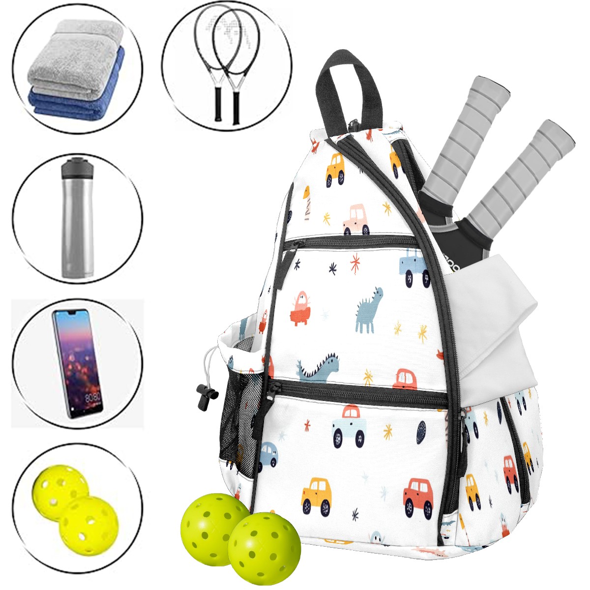 Counullo Pickleball Bag for Women & Men – Lightweight Sports Backpack with Paddle Compartments, Dual Carry Modes, Detachable Zippered Strap, Cartoon White, Perfect Gift for Players