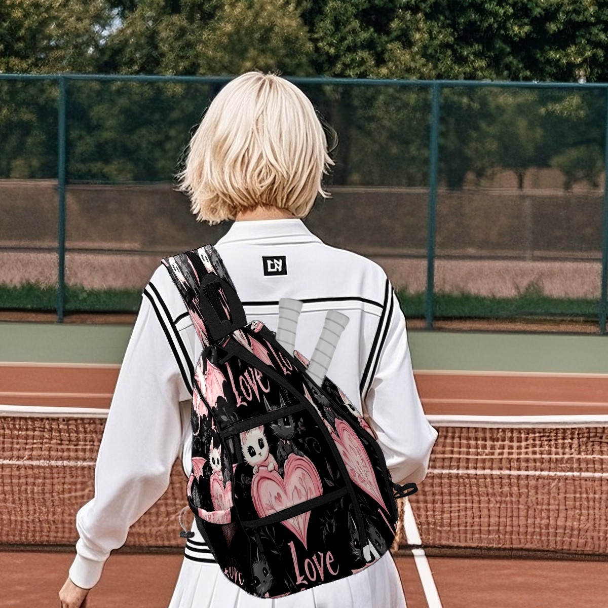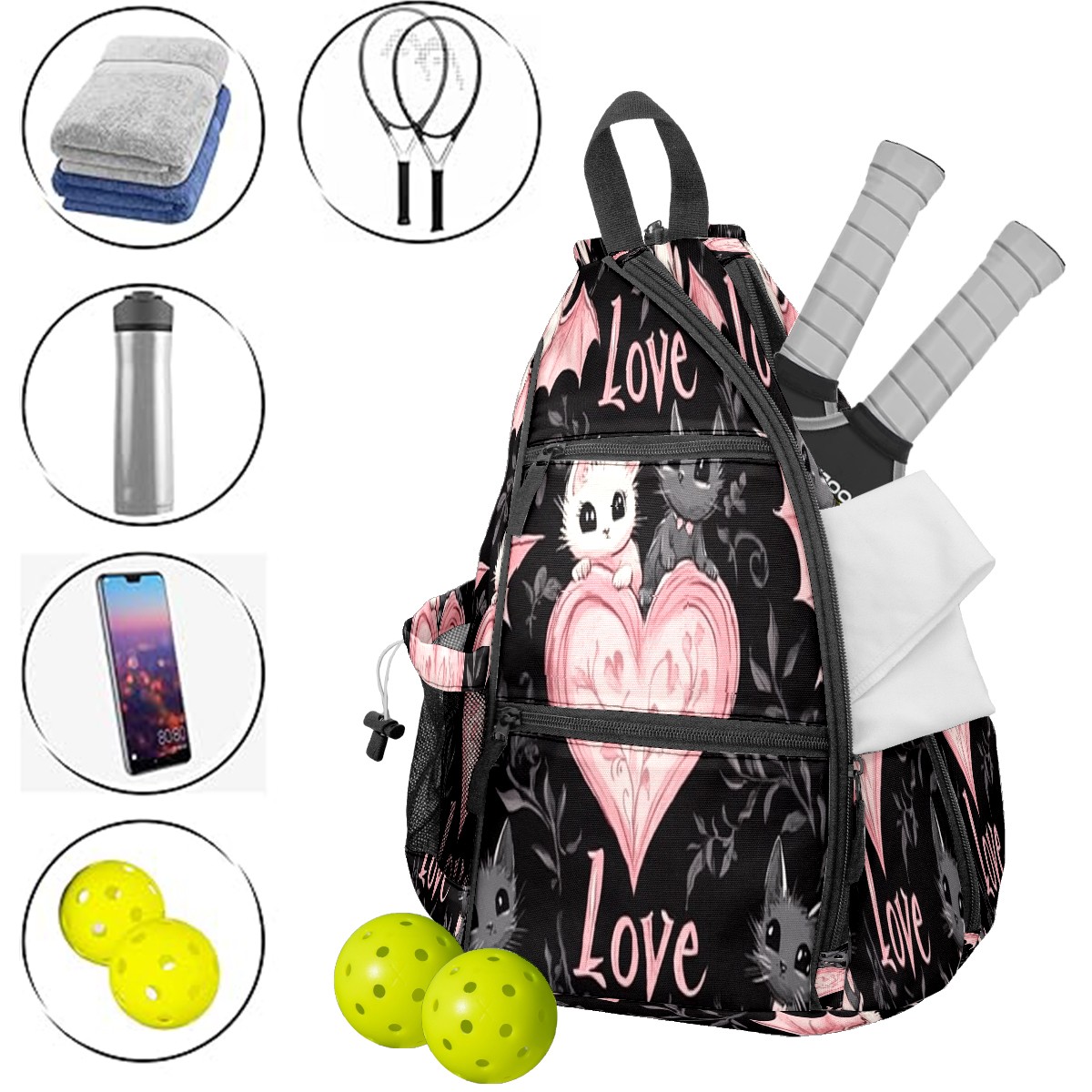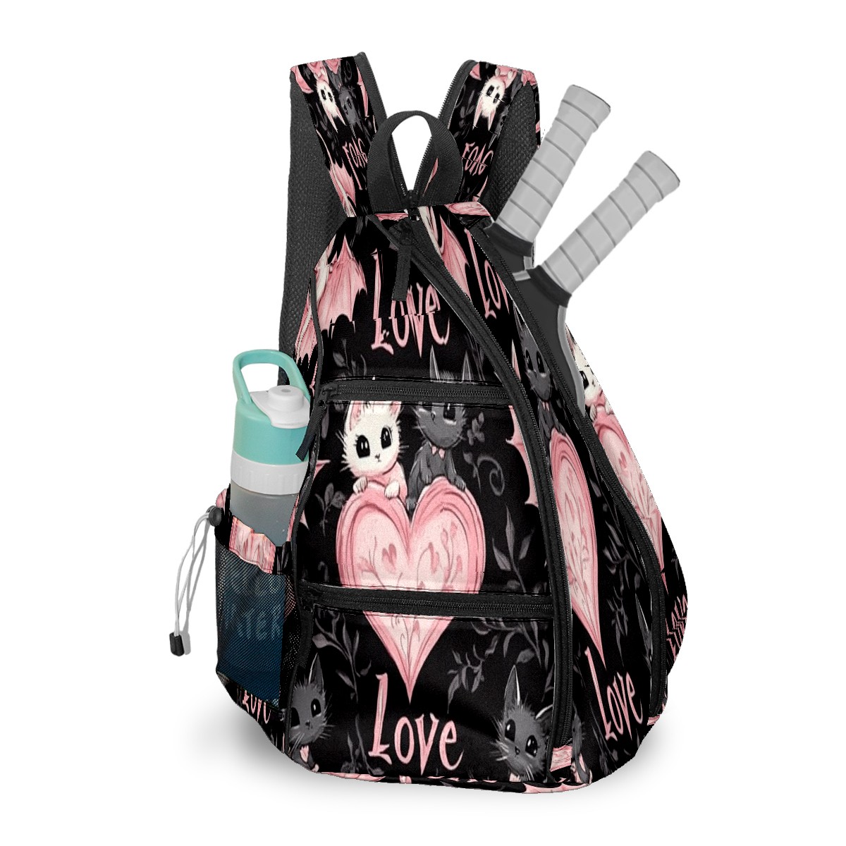 Counullo Pickleball Bag for Women & Men – Lightweight Sports Backpack with Paddle Compartments, Dual Carry Modes, Detachable Zippered Strap, Heart Bat PinkBlack, Perfect Gift for Players
