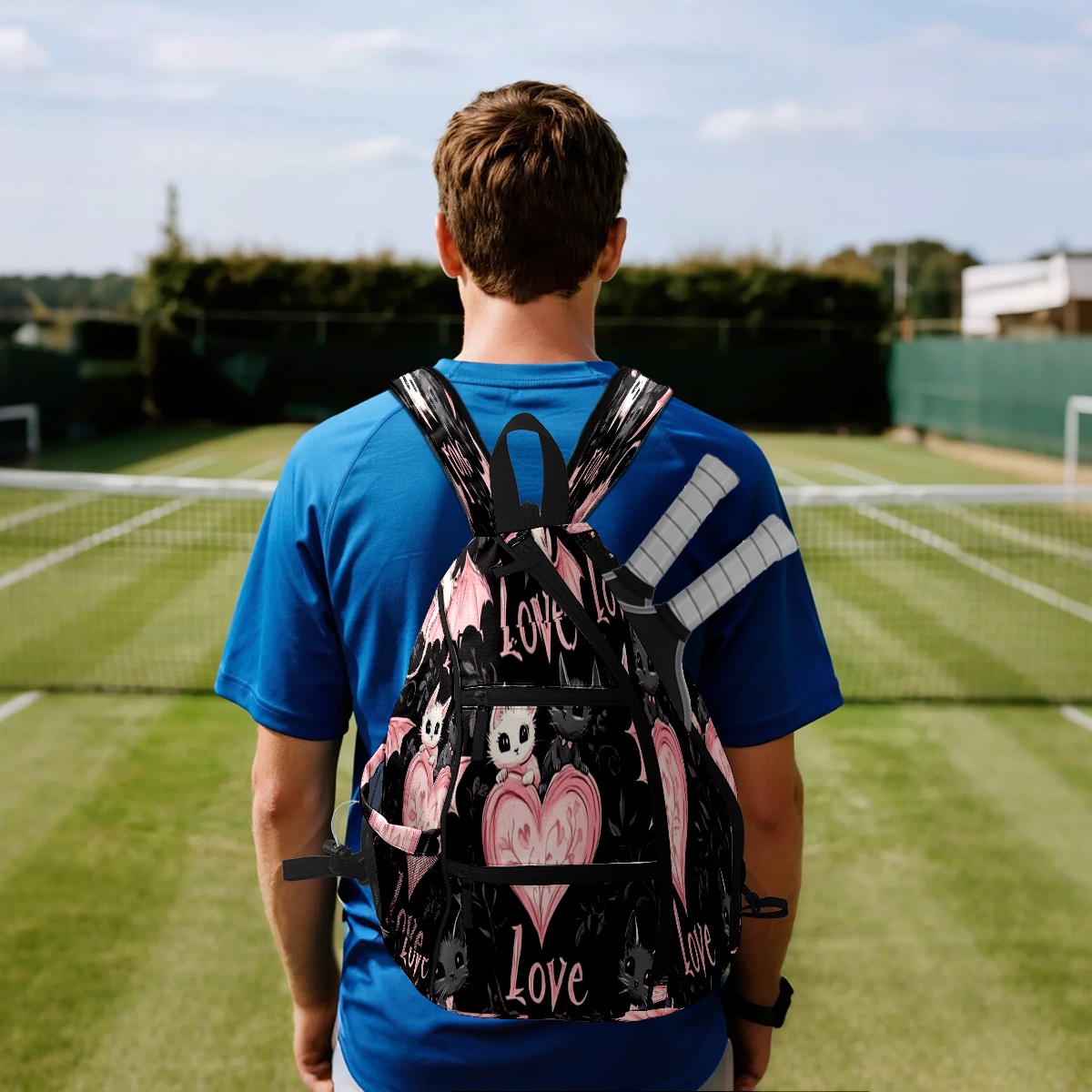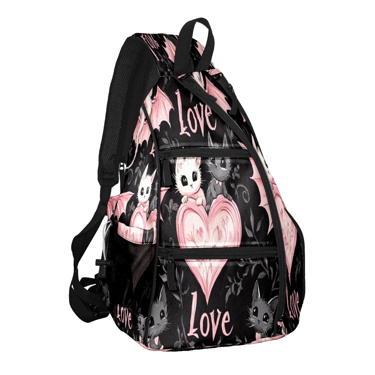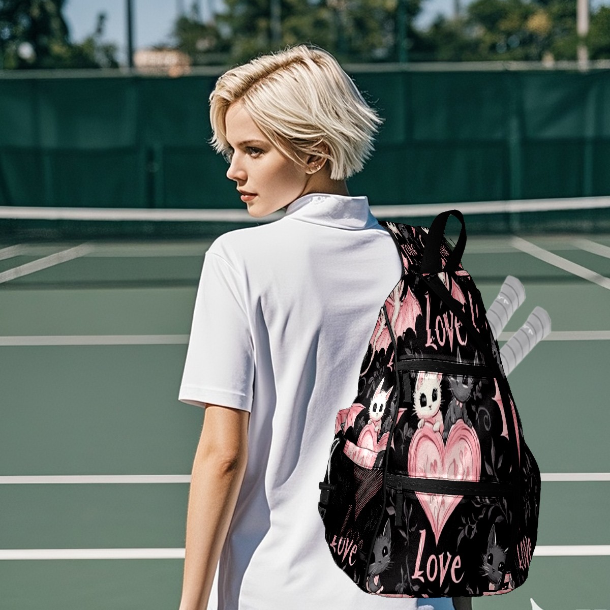 Counullo Pickleball Bag for Women & Men – Lightweight Sports Backpack with Paddle Compartments, Dual Carry Modes, Detachable Zippered Strap, Heart Bat PinkBlack, Perfect Gift for Players