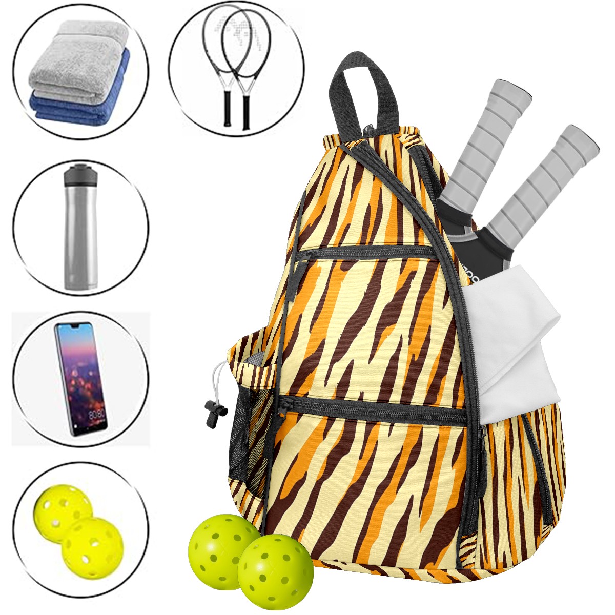 Counullo Pickleball Bag for Women & Men – Lightweight Sports Backpack with Paddle Compartments, Dual Carry Modes, Detachable Zippered Strap, Tiger Brown, Perfect Gift for Players