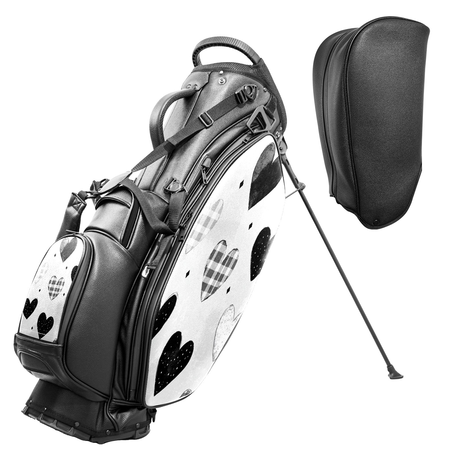 Lightweight Golf Stand Bag - 5-Way Top Divider, Golf Club Carry Bag with Adjustable Double Shoulder Straps, Zipper Storage Pockets + Rain Cover, Ideal for Golfers Black Heart Pattern