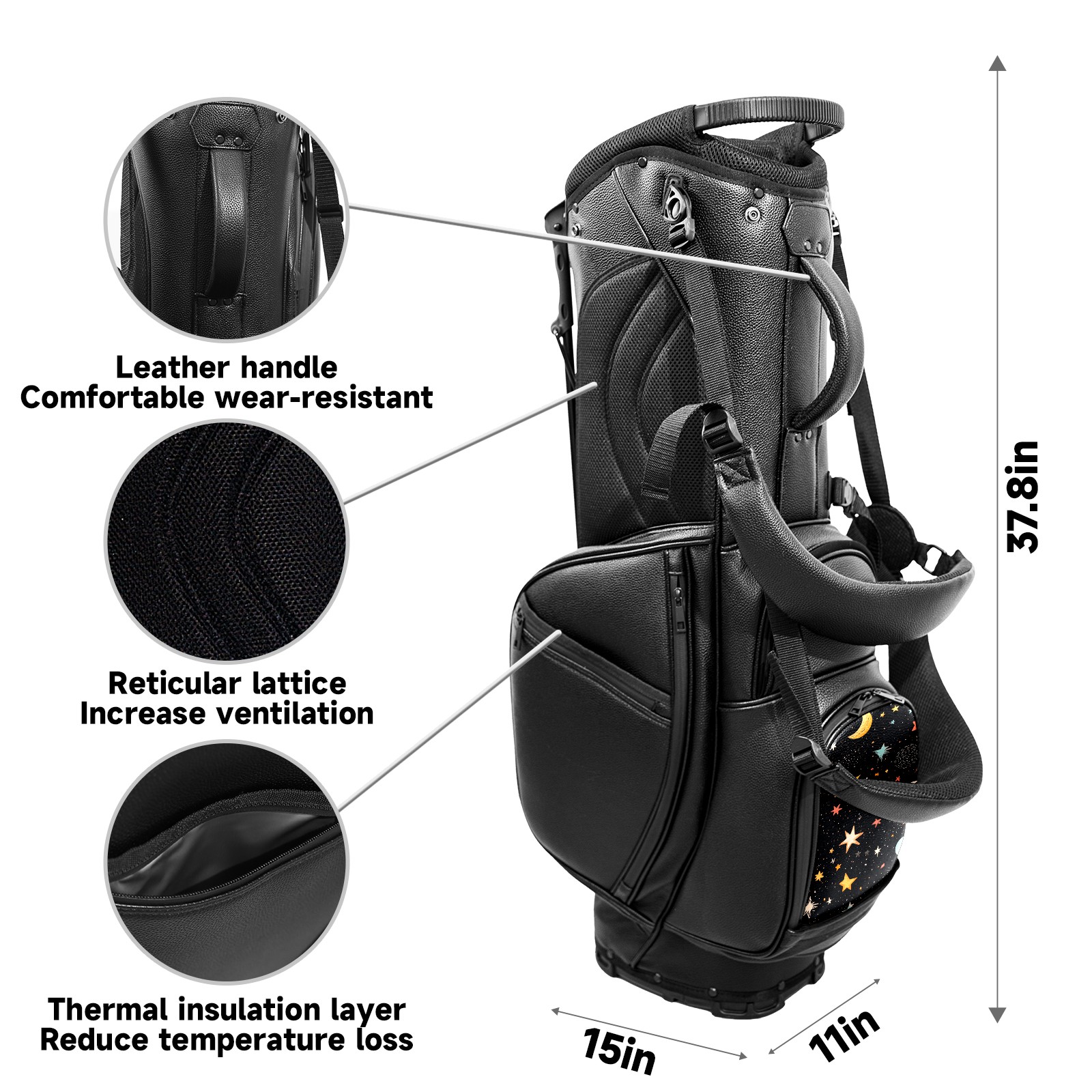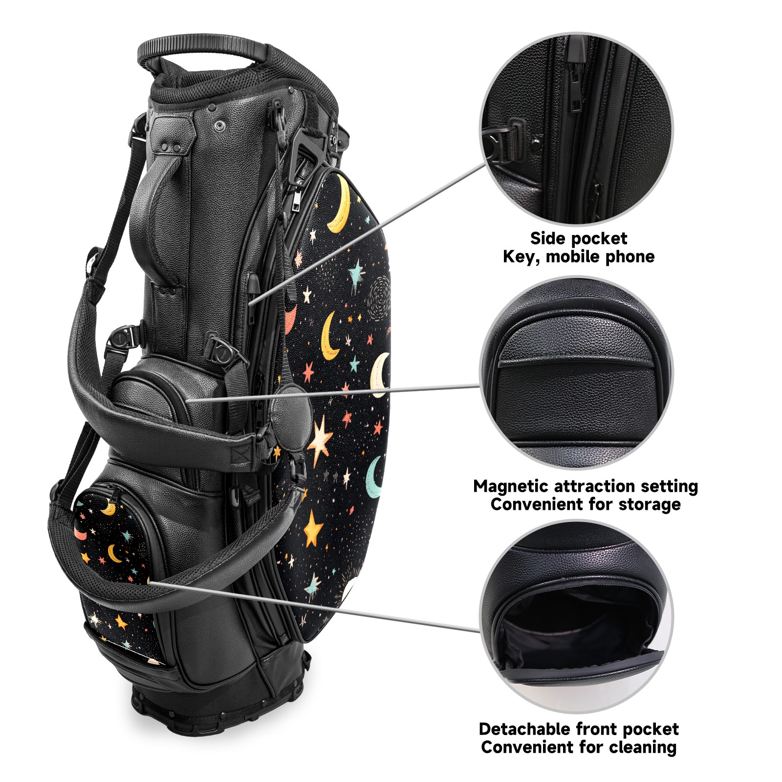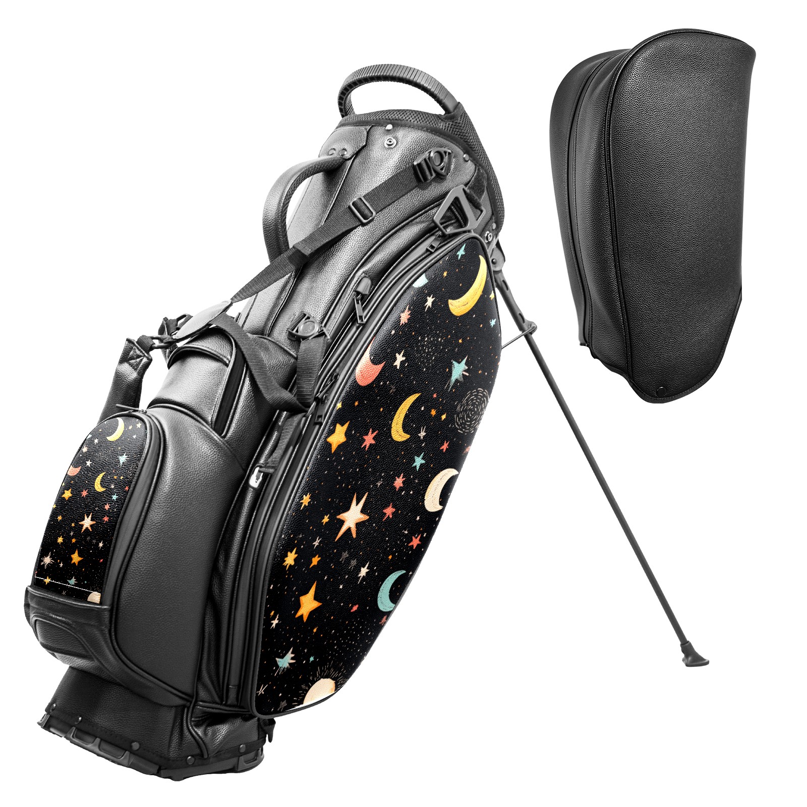 Lightweight Golf Stand Bag - 5-Way Top Divider, Golf Club Carry Bag with Adjustable Double Shoulder Straps, Zipper Storage Pockets + Rain Cover, Ideal for Golfers Star Moon Pattern