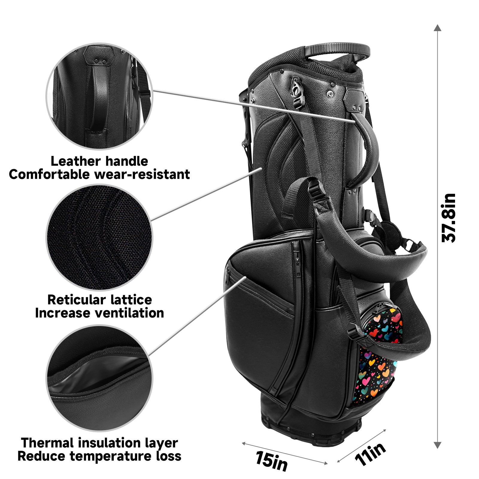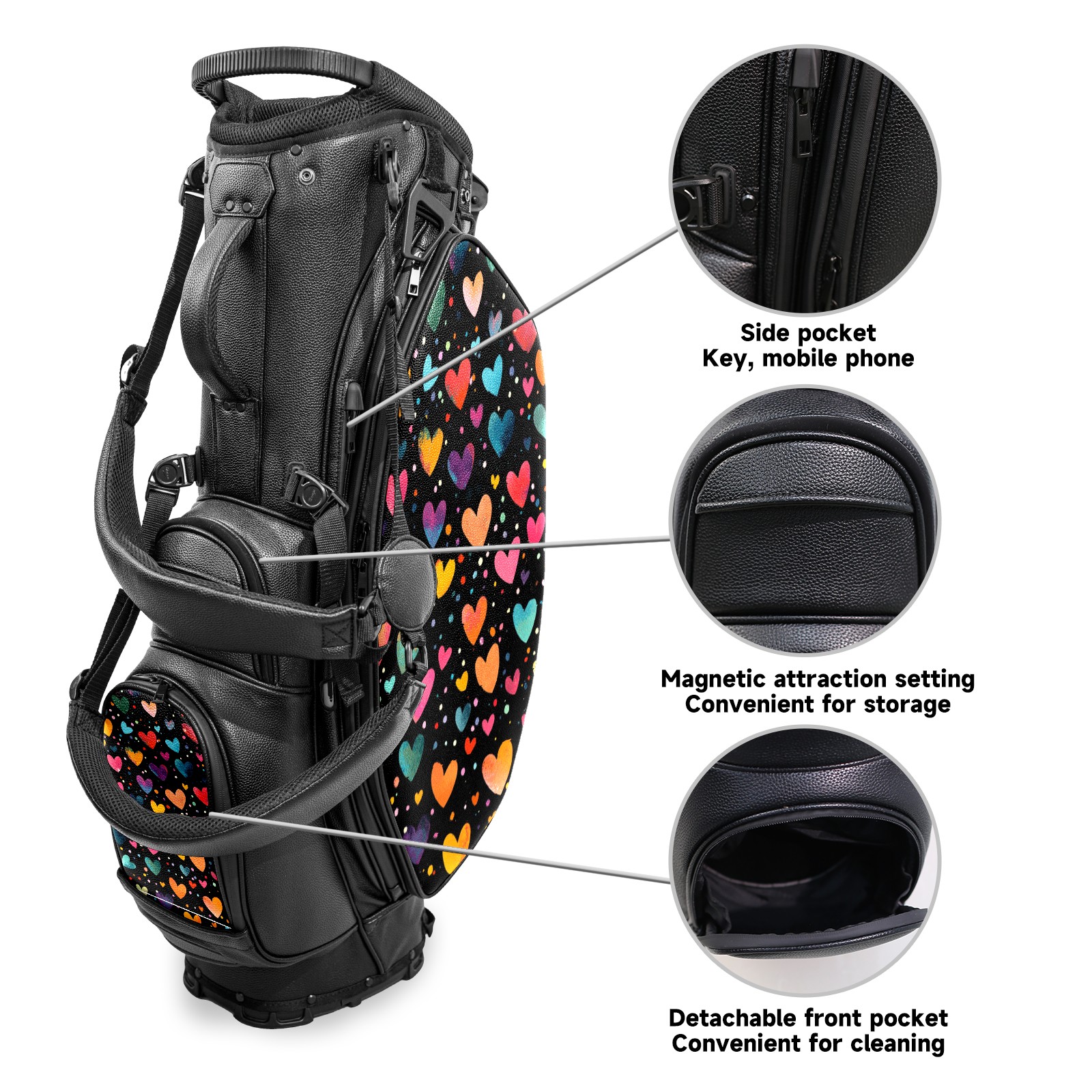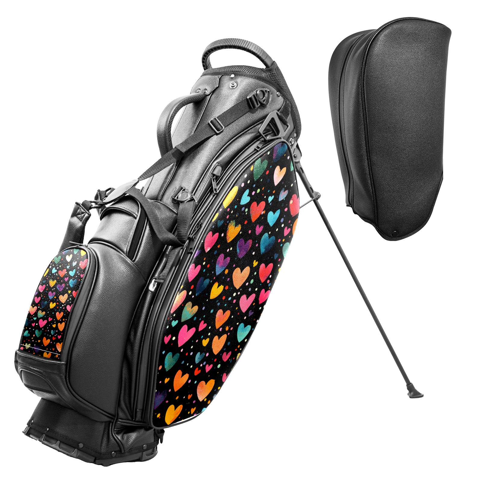 Lightweight Golf Stand Bag - 5-Way Top Divider, Golf Club Carry Bag with Adjustable Double Shoulder Straps, Zipper Storage Pockets + Rain Cover, Ideal for Golfers Colorful Heart Pattern