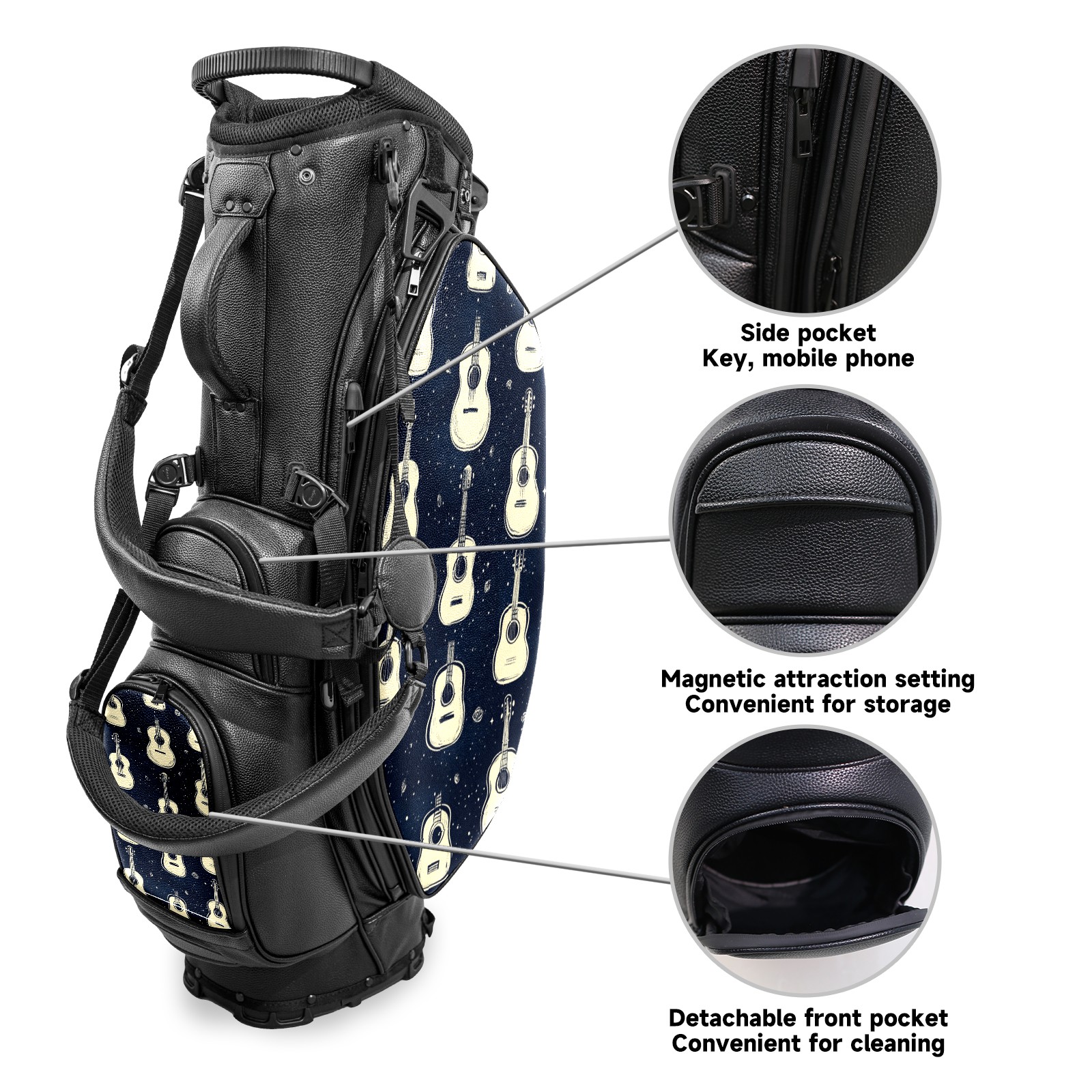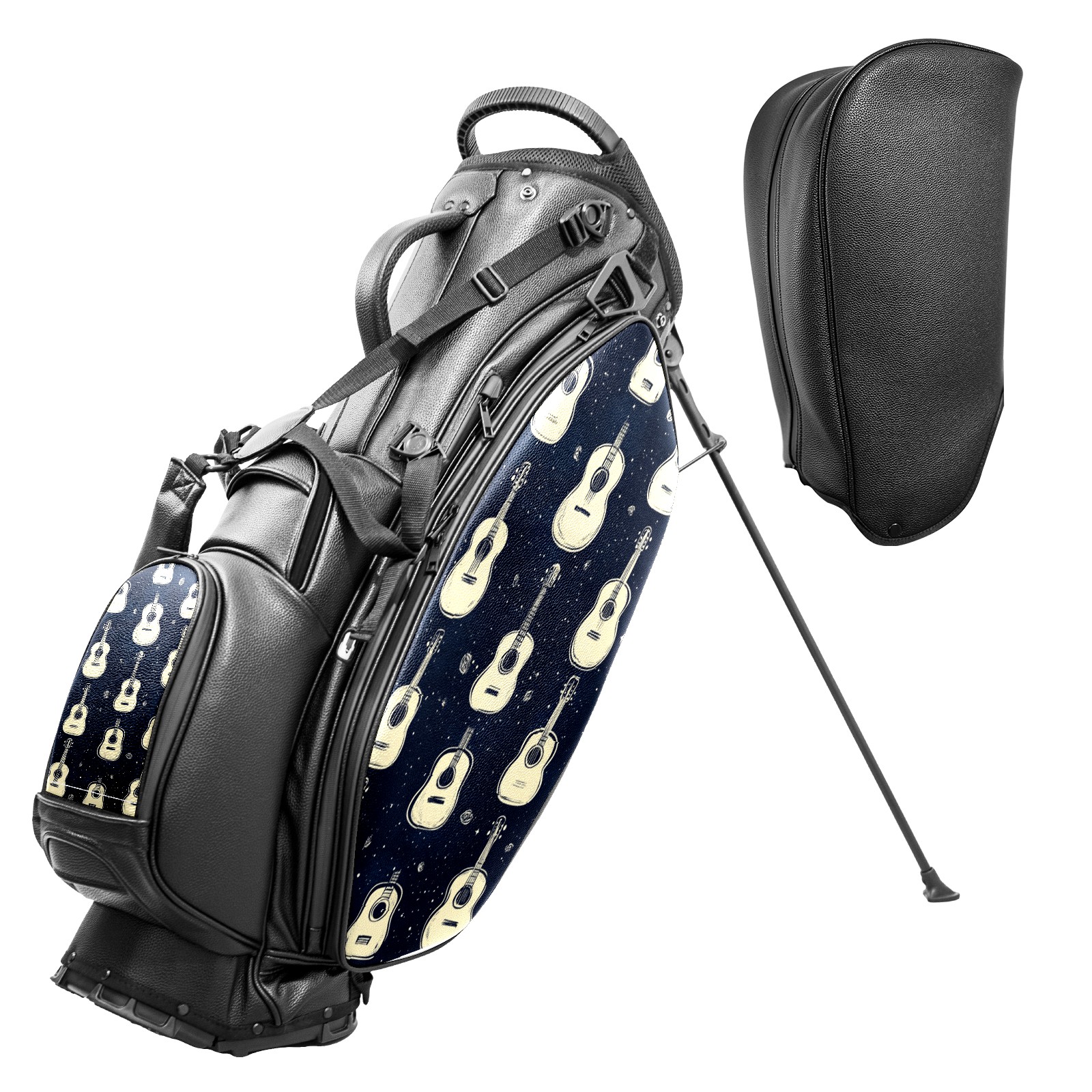 Lightweight Golf Stand Bag - 5-Way Top Divider, Golf Club Carry Bag with Adjustable Double Shoulder Straps, Zipper Storage Pockets + Rain Cover, Ideal for Golfers Guitar Pattern