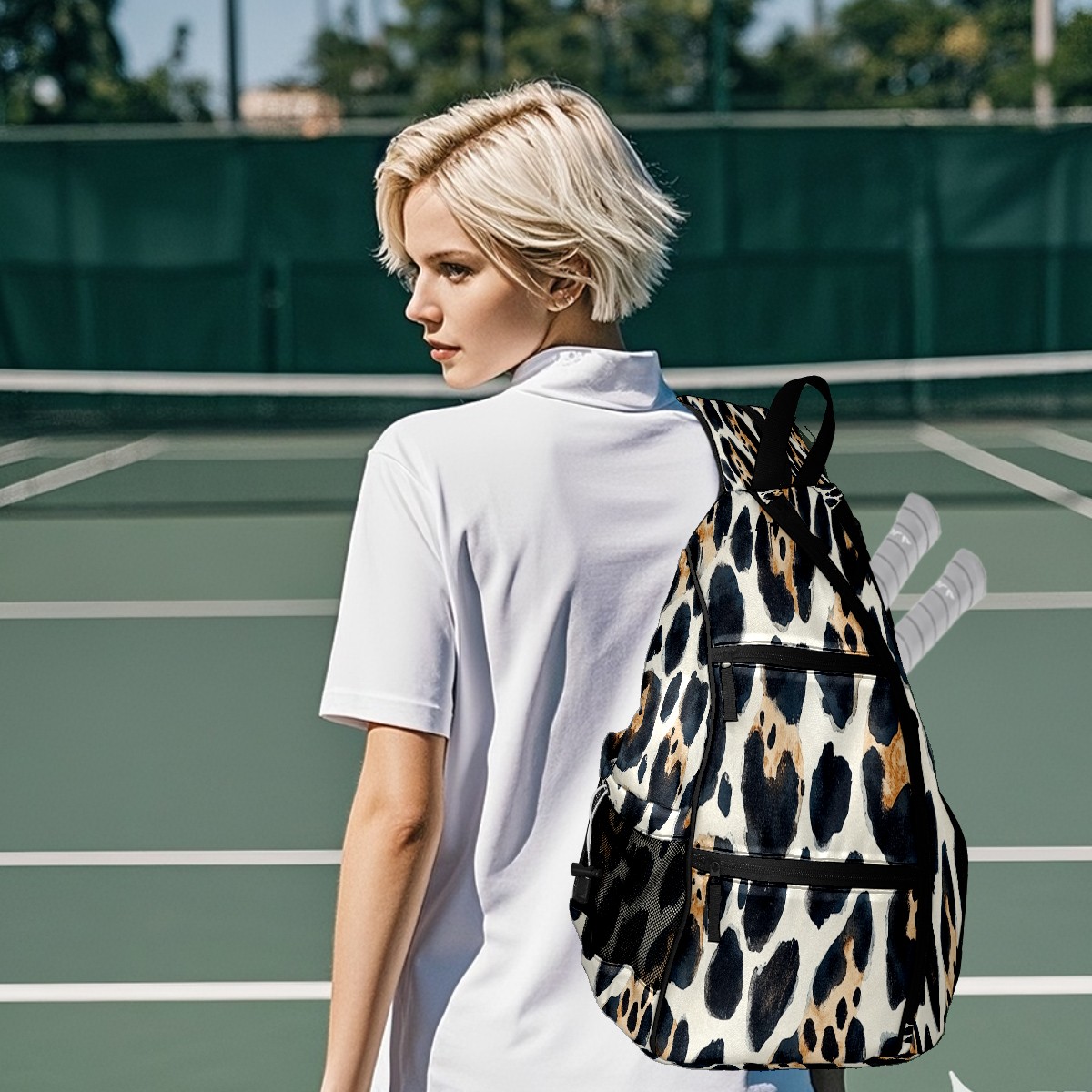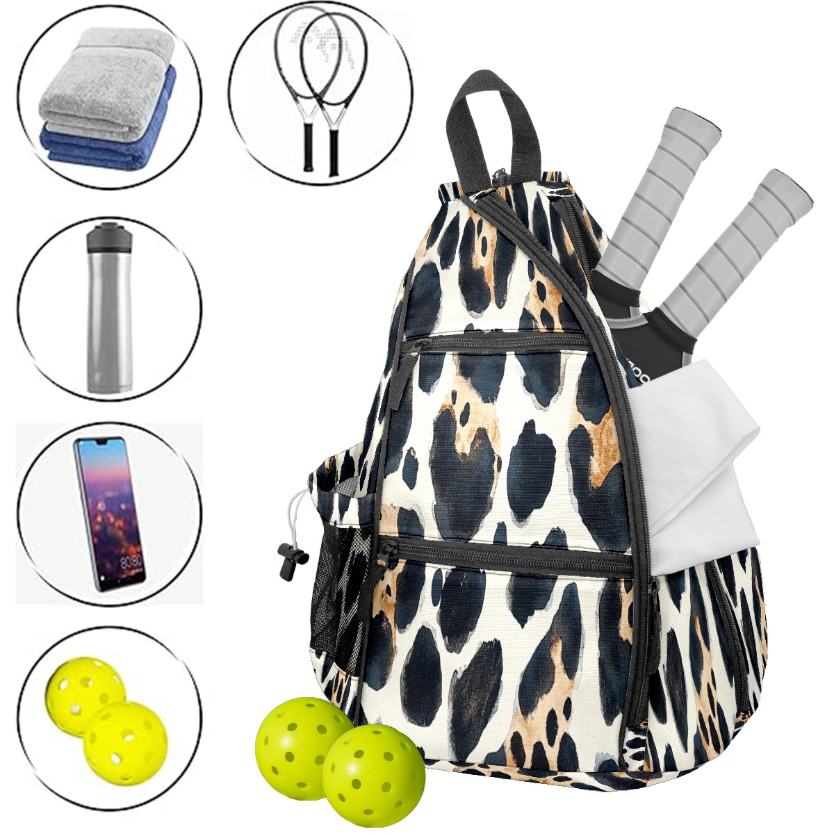 Counullo Pickleball Bag for Women & Men – Lightweight Sports Backpack with Paddle Compartments, Dual Carry Modes, Detachable Zippered Strap, Leopard Light, Perfect Gift for Players