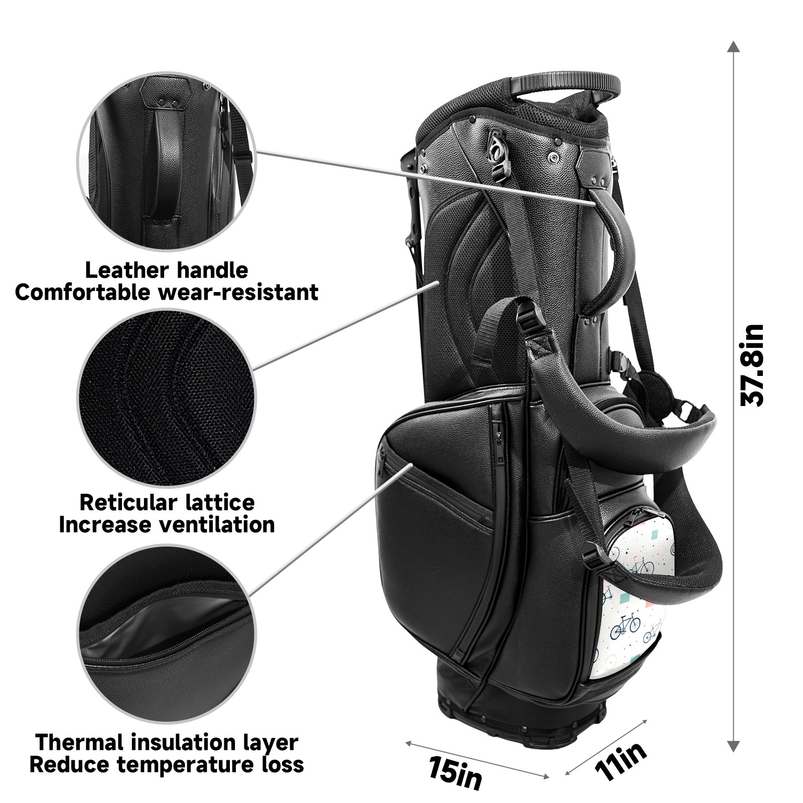 Lightweight Golf Stand Bag - 5-Way Top Divider, Golf Club Carry Bag with Adjustable Double Shoulder Straps, Zipper Storage Pockets + Rain Cover, Ideal for Golfers Bike Pattern
