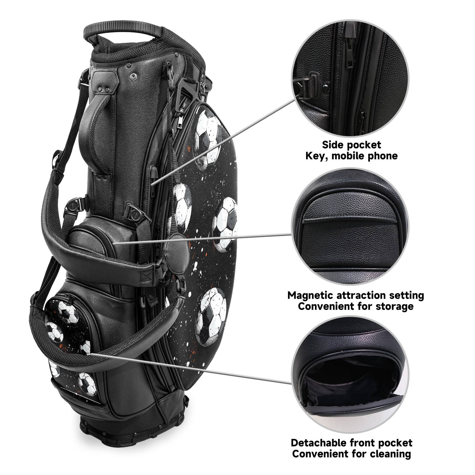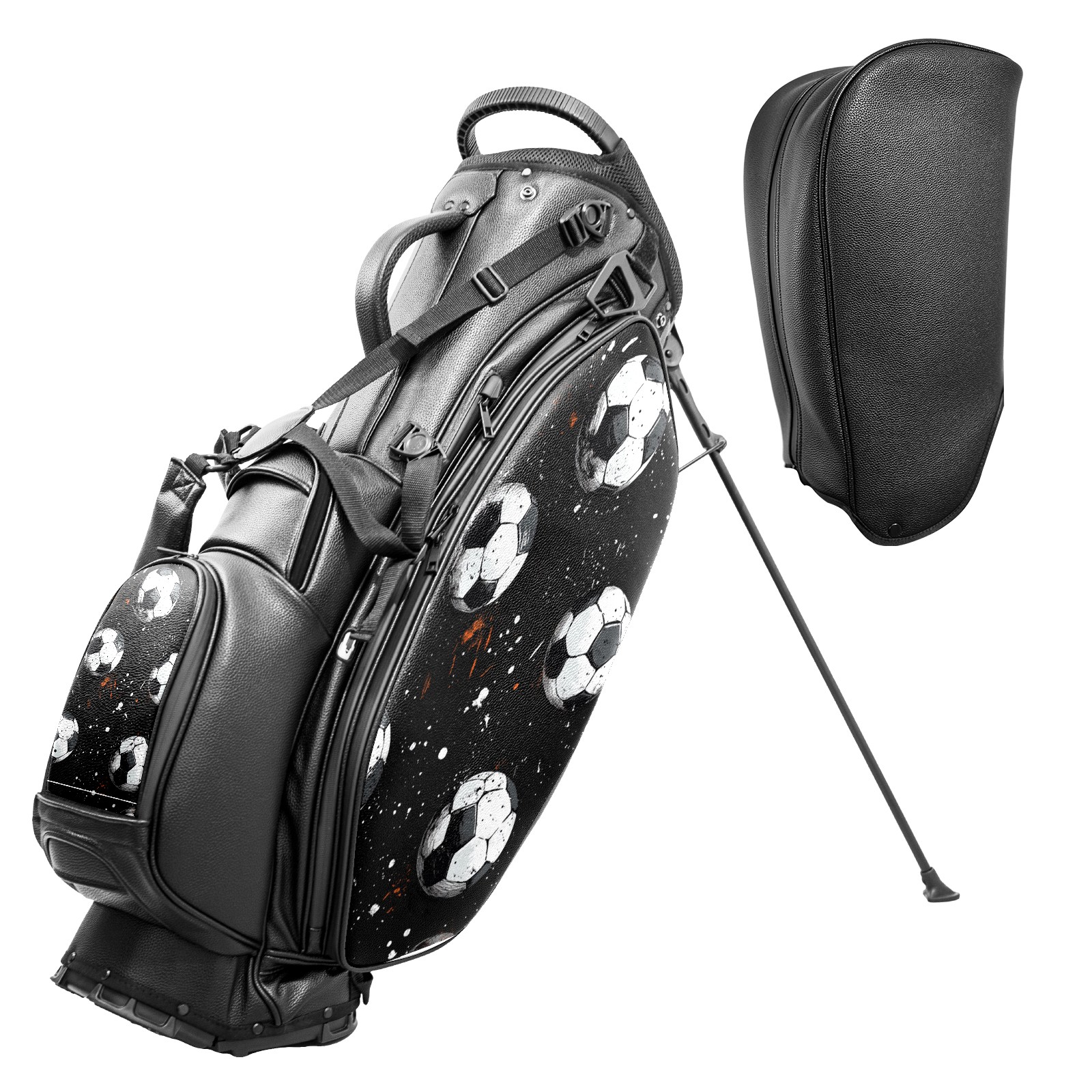 Lightweight Golf Stand Bag - 5-Way Top Divider, Golf Club Carry Bag with Adjustable Double Shoulder Straps, Zipper Storage Pockets + Rain Cover, Ideal for Golfers Football Pattern